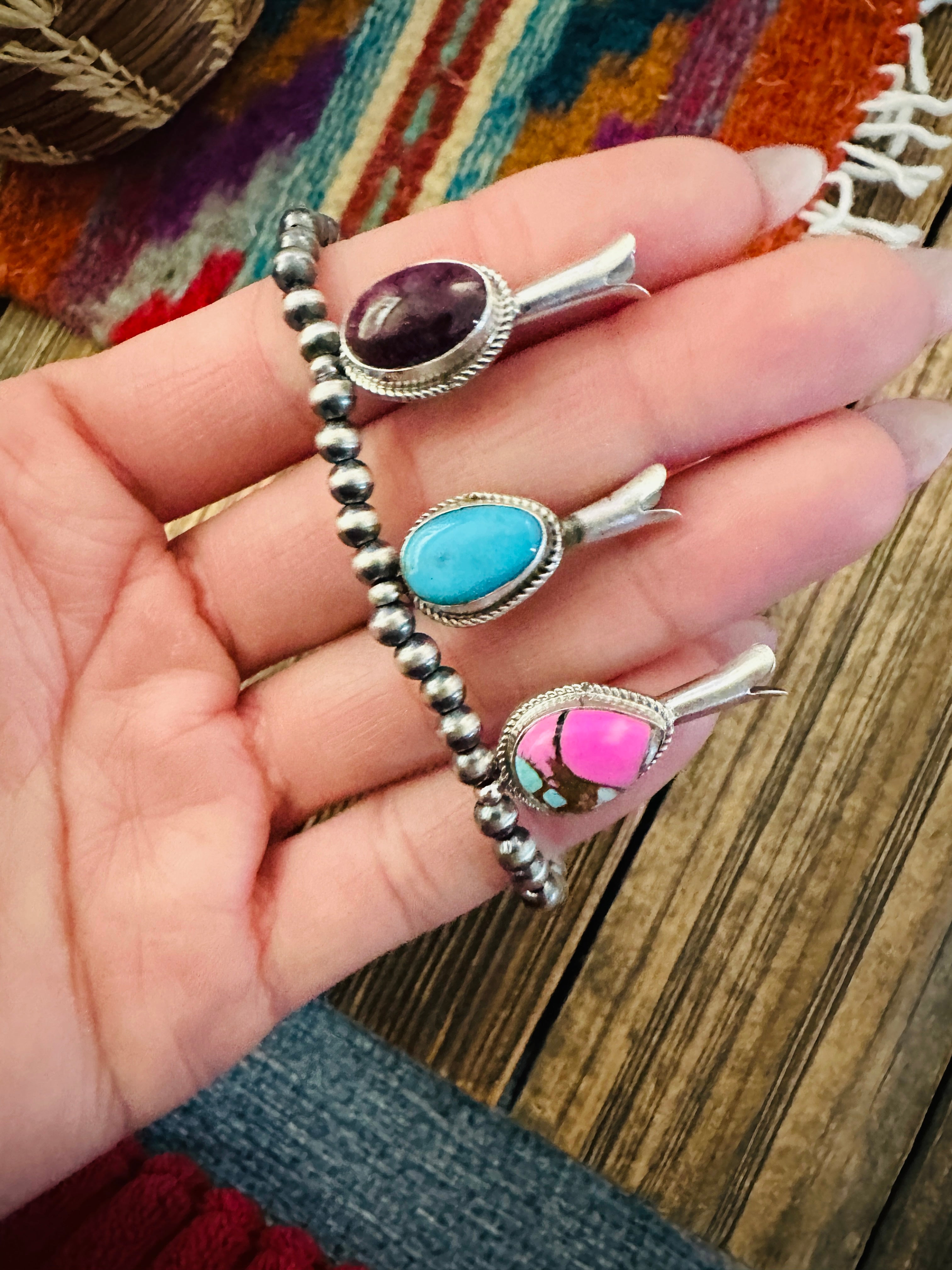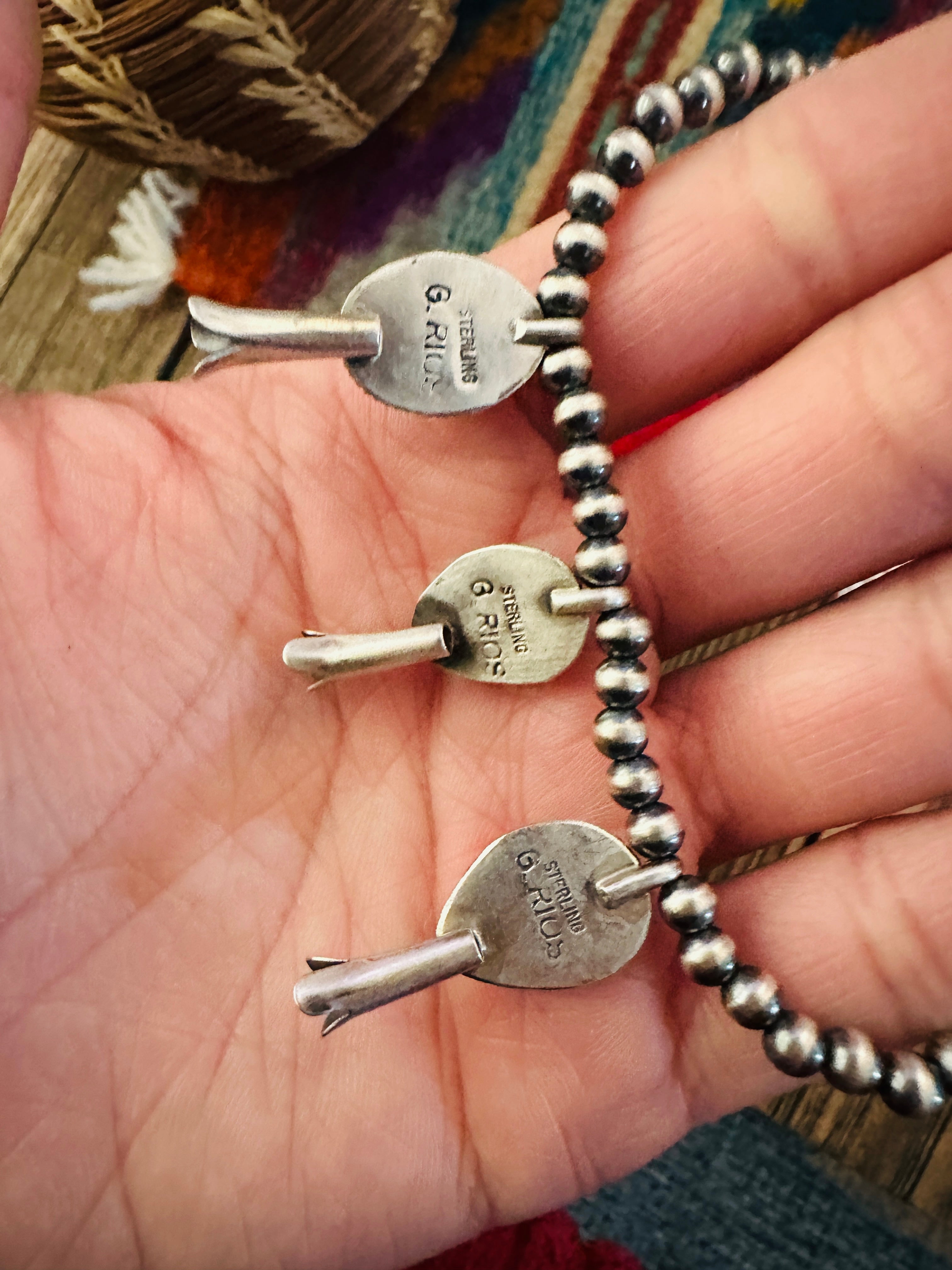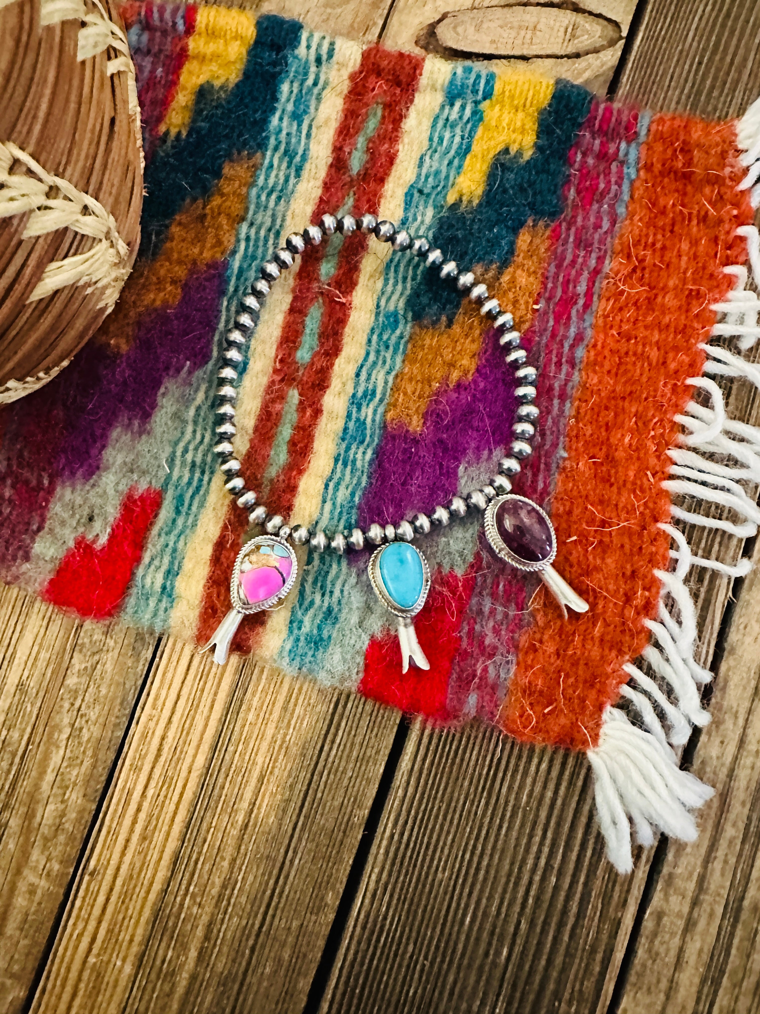 Beautiful handcrafted 3mm Sterling Silver Pearl and Multi Stone Blossom Beaded Stretch Bracelet. Blossoms measure just over 1 inch long. Perfect for stacking! Stretchy to fit most wrist sizes. Signed by the artist and stamped Sterling.