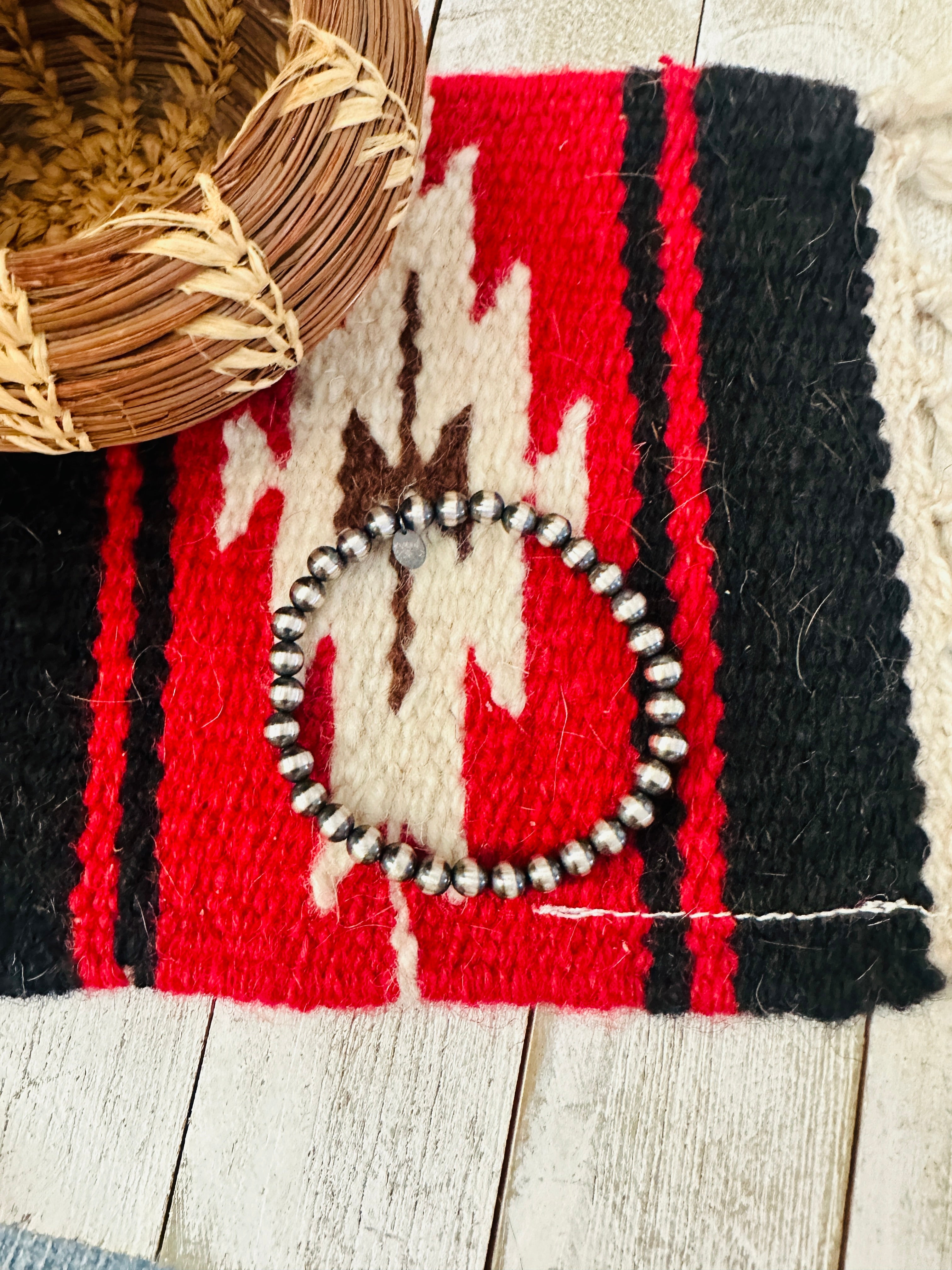 Handcrafted 6mm Sterling Silver Beaded Stretch Bracelet