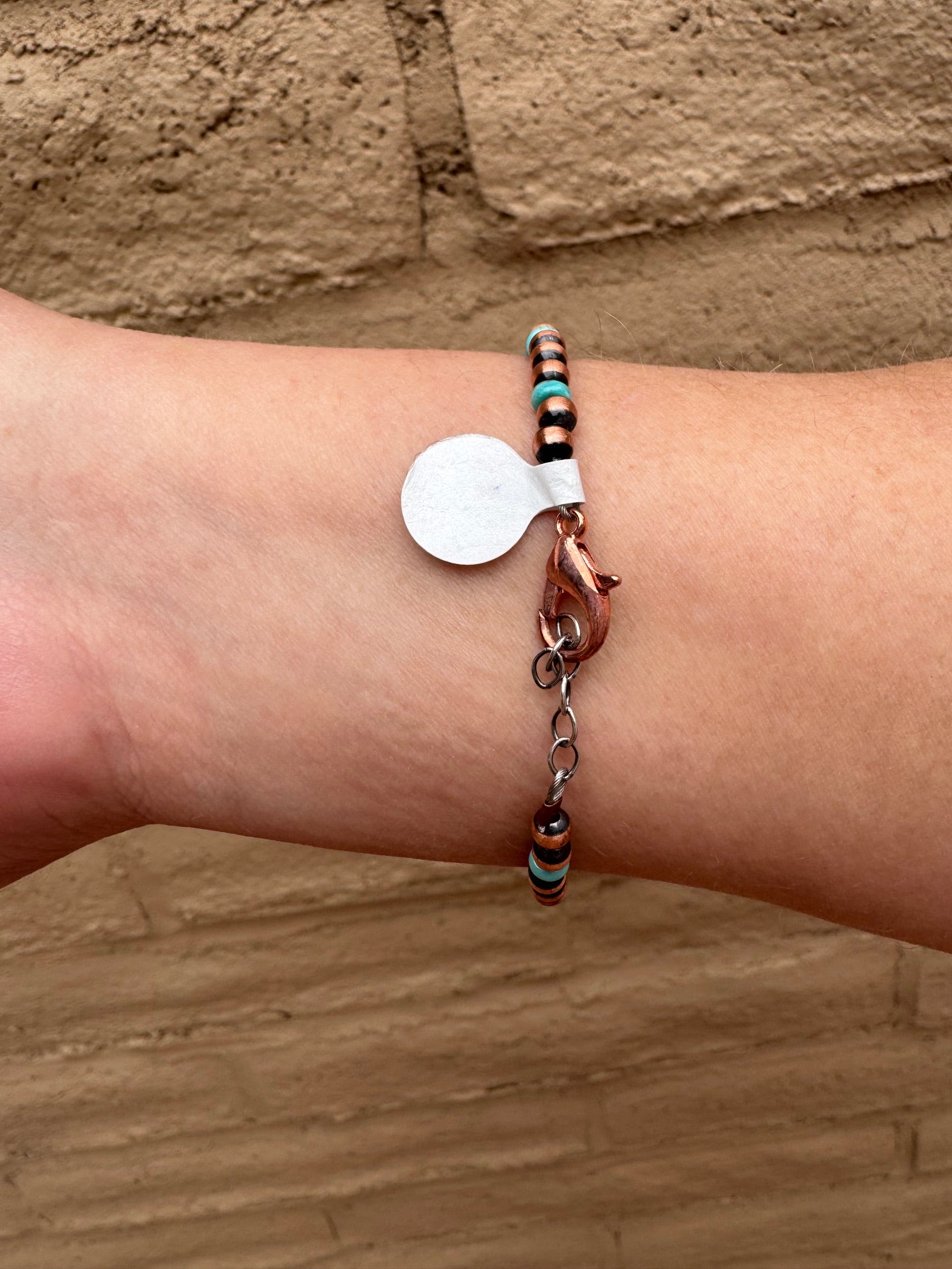 Handcrafted Copper & Turquoise 4mm Beaded Bracelet 7"