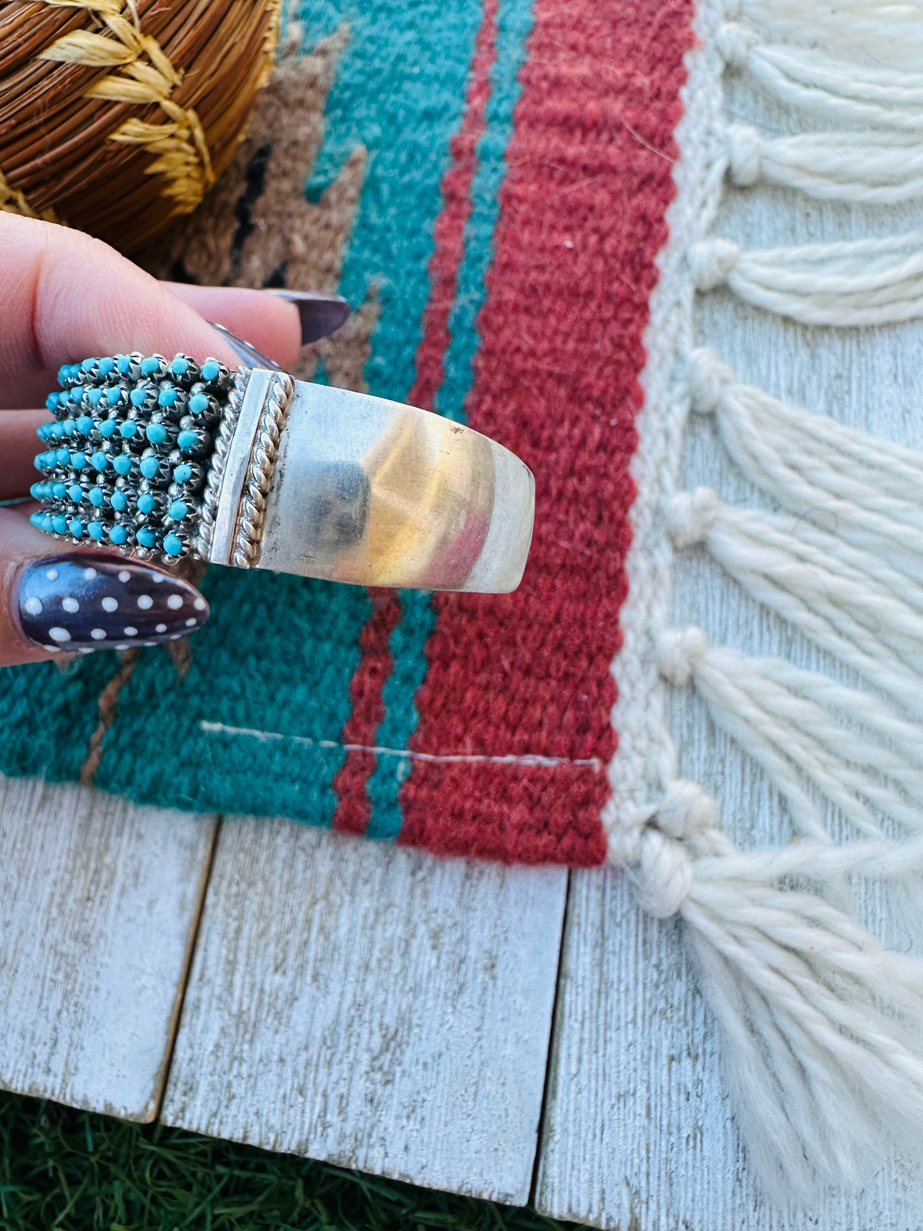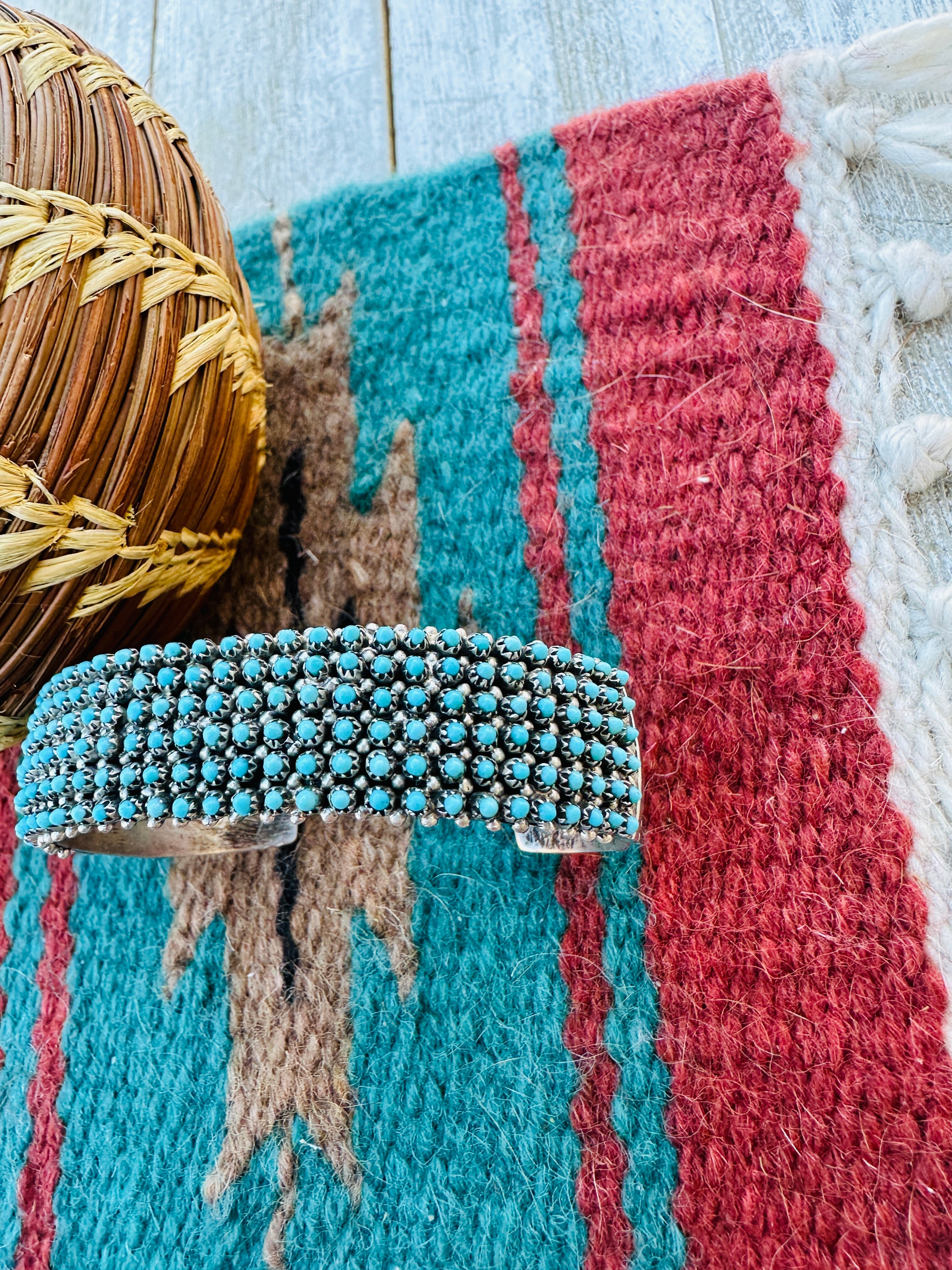 Handcrafted Old Pawn Sterling Silver & Kingman Turquoise Snake Eye Cuff Bracelet by Stephen Haloo