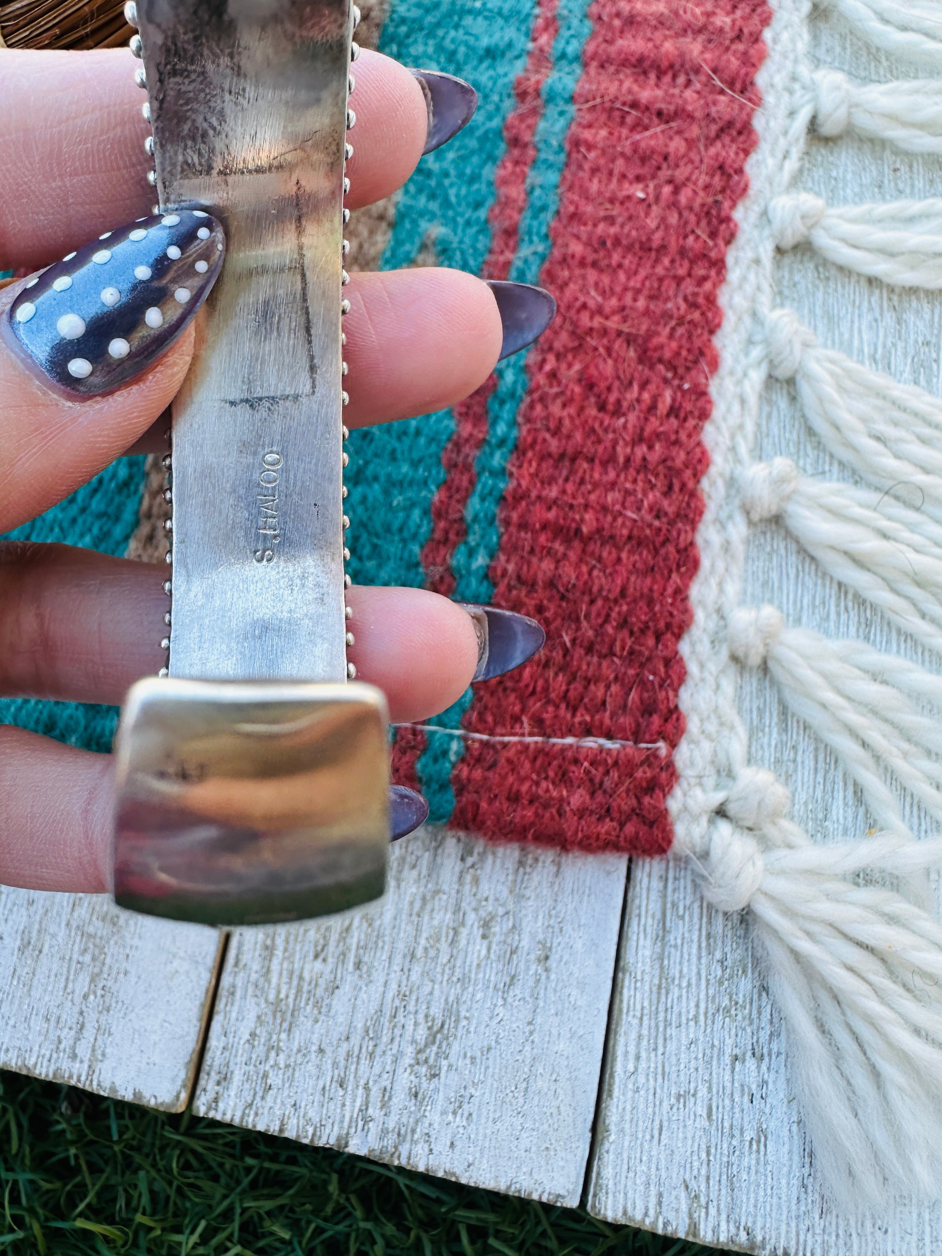 Beautiful Old Pawn Handcrafted Kingman Turquoise and Sterling Silver Snake Eye Cuff Bracelet. Cuff has an inside circumference of 5 1/4 inches with a 1 1/8 inch gap. Width is 5/8 of an inch. Signed by the artist Stephen Haloo. Such a cool piece!