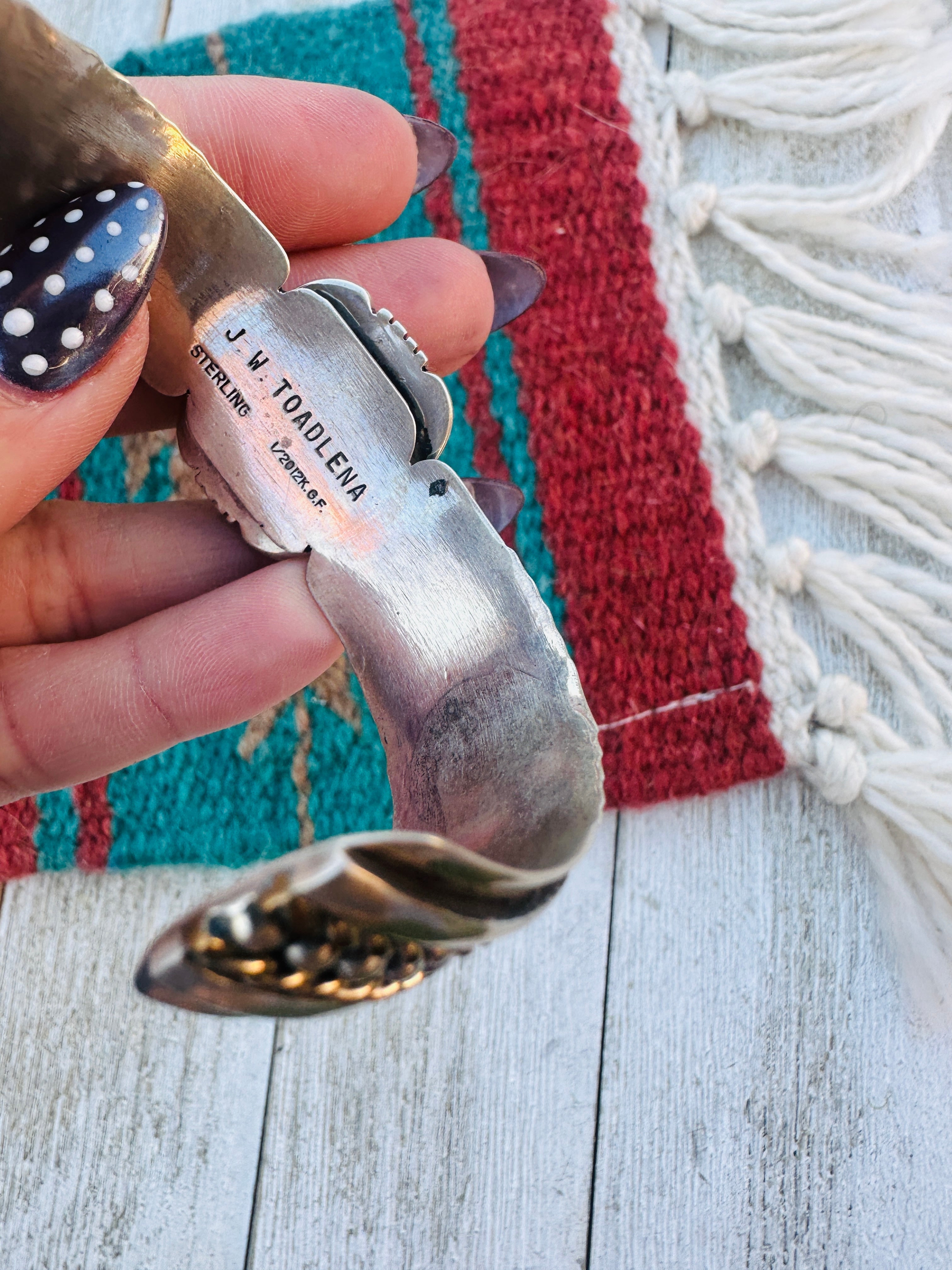Handcrafted Old Pawn Sterling Silver & Lapis Cuff Bracelet by J. W. Toadlena