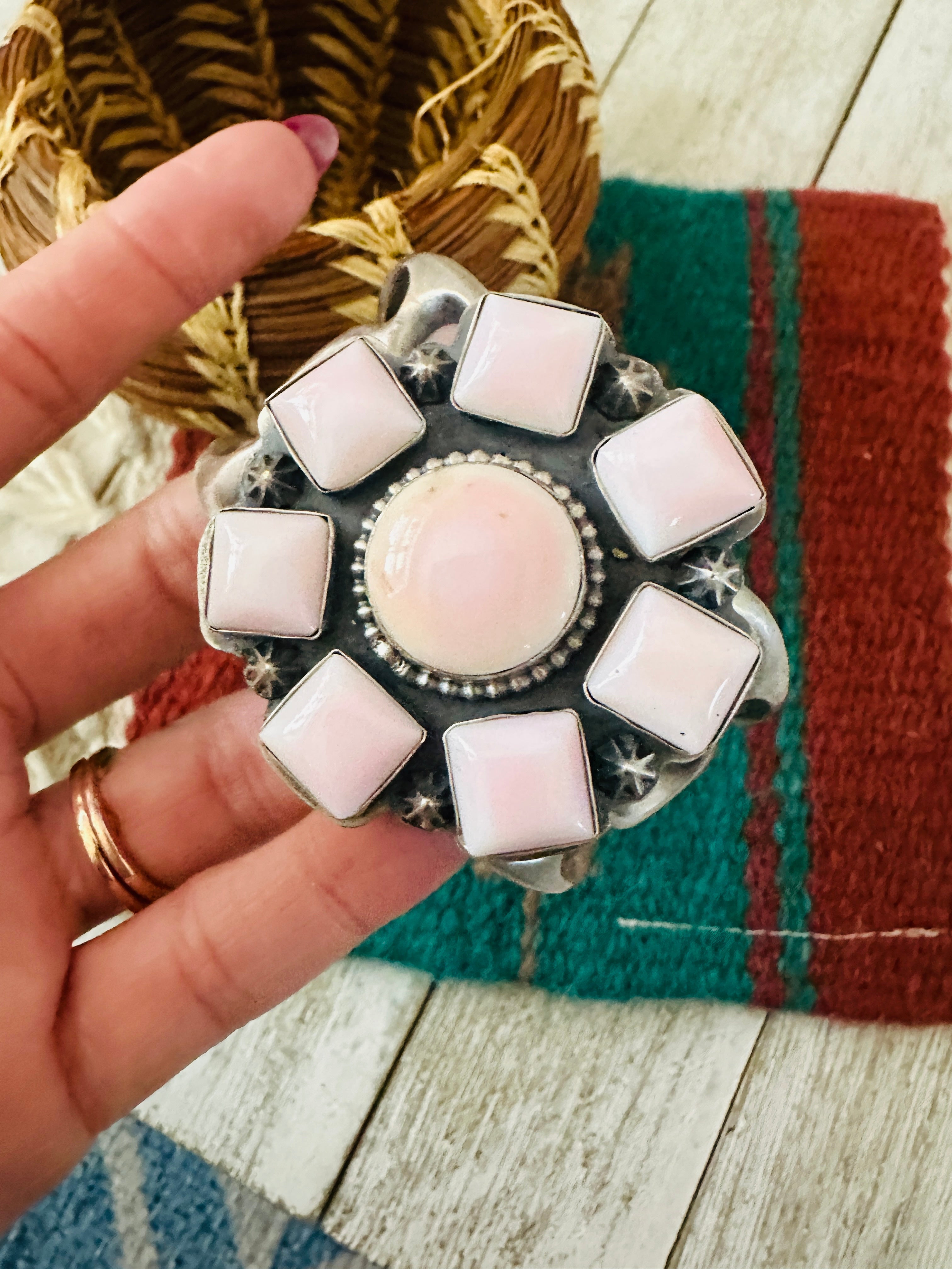 Handcrafted Old Pawn Sterling Silver & Queen Pink Conch Cluster Cuff Bracelet