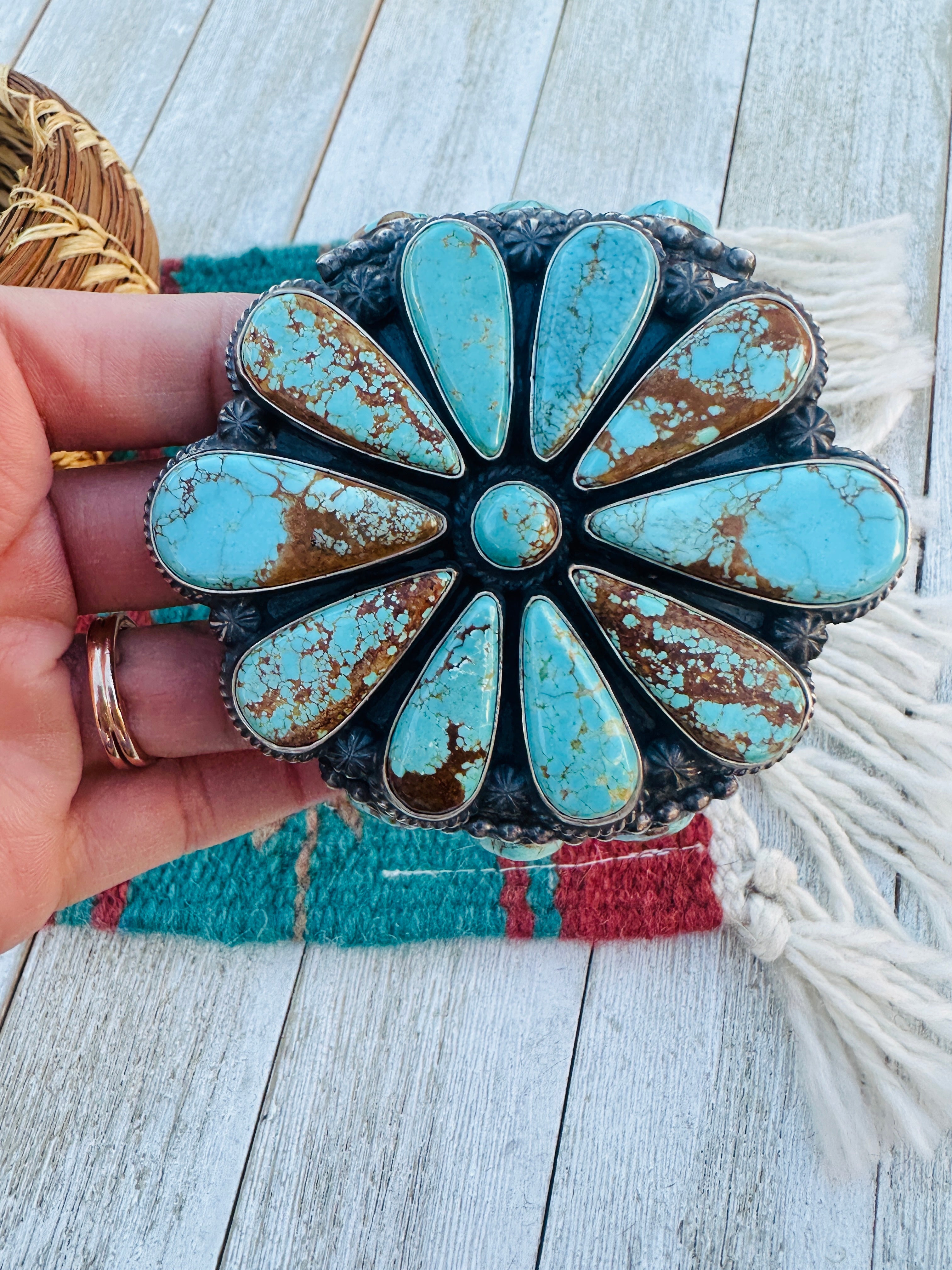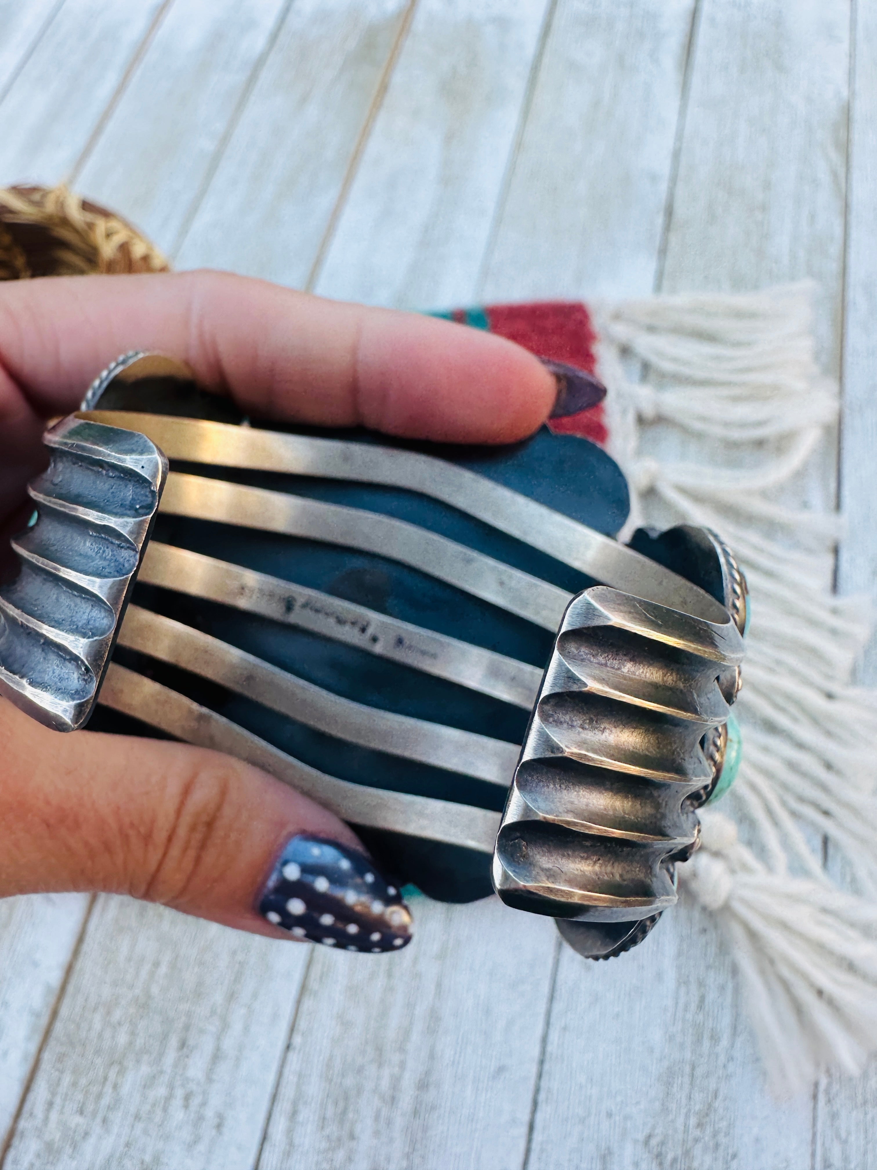 Handcrafted Old Pawn Sterling Silver & Turquoise Cluster Cuff Bracelet by Anthony Skeets