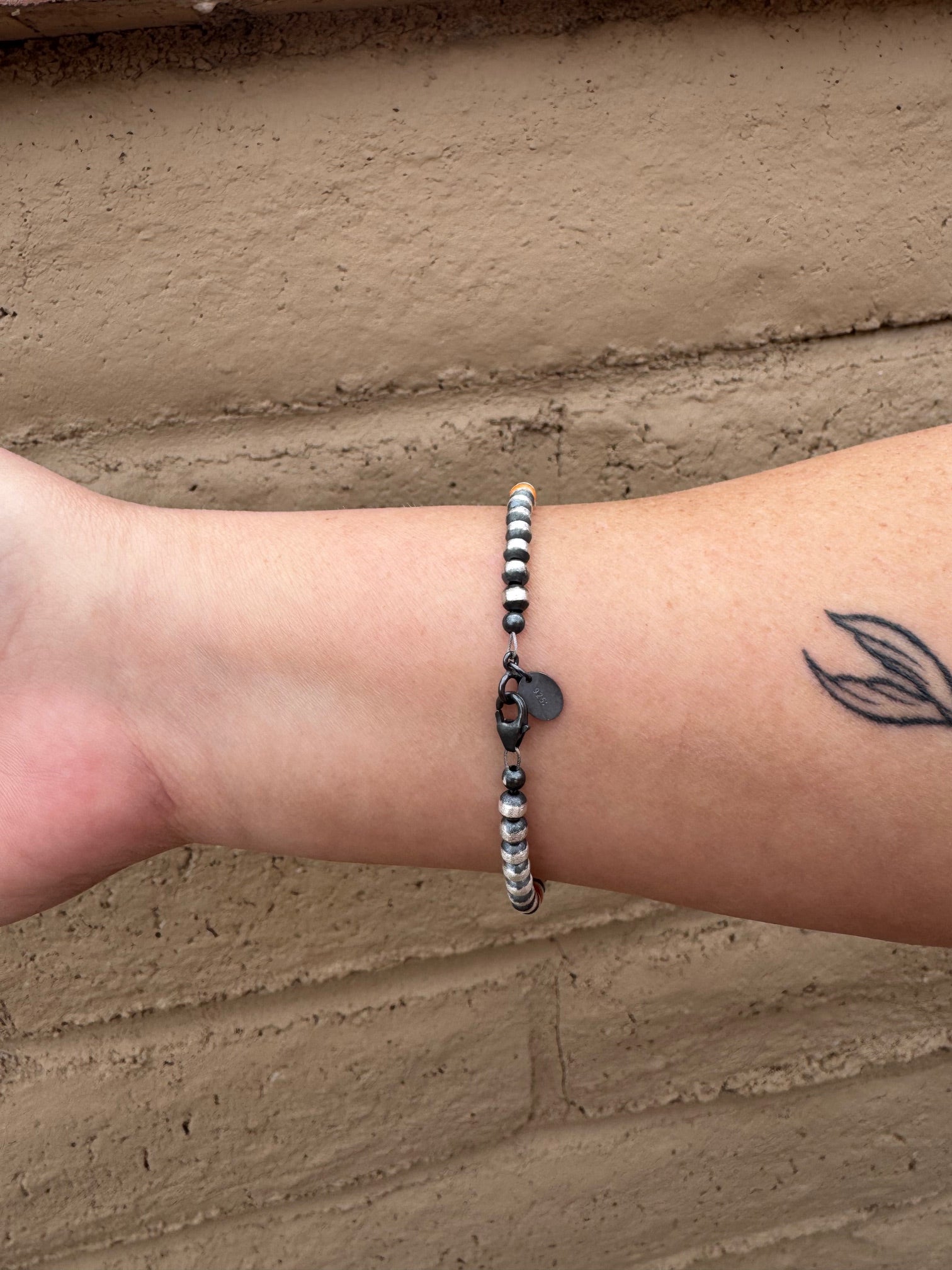 Handcrafted Orange Spiny & Sterling Silver 4mm Beaded Bracelet 7.5"