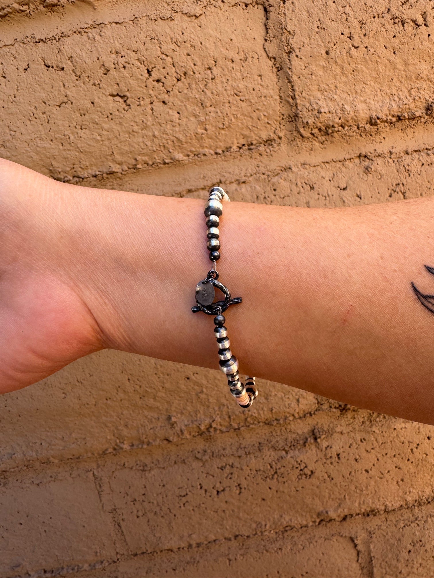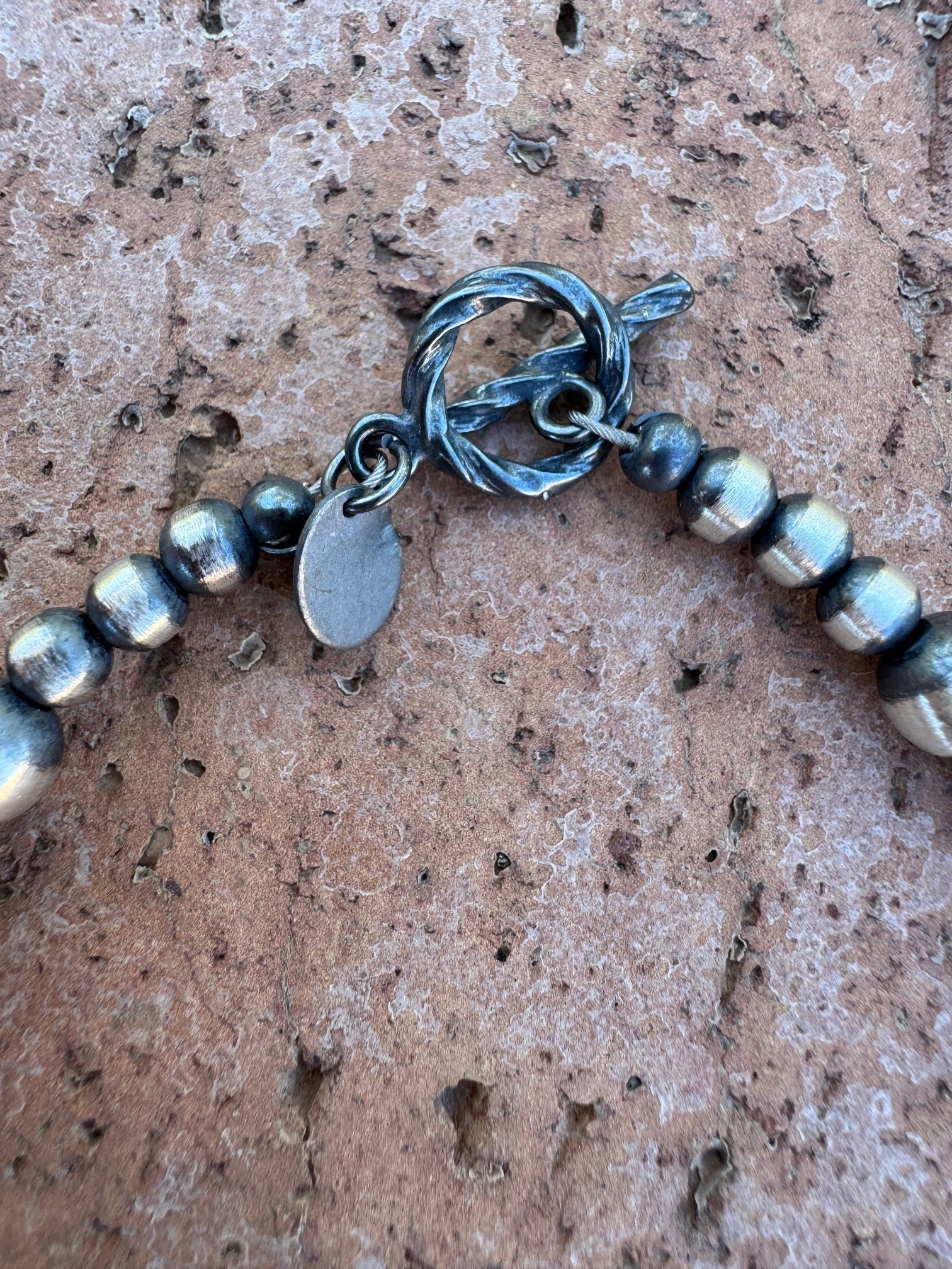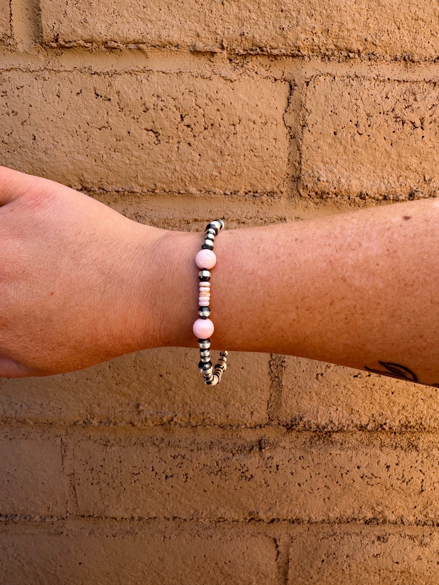 Handcrafted Pink Conch & Sterling Silver 4-6mm Beaded Bracelet 8"
