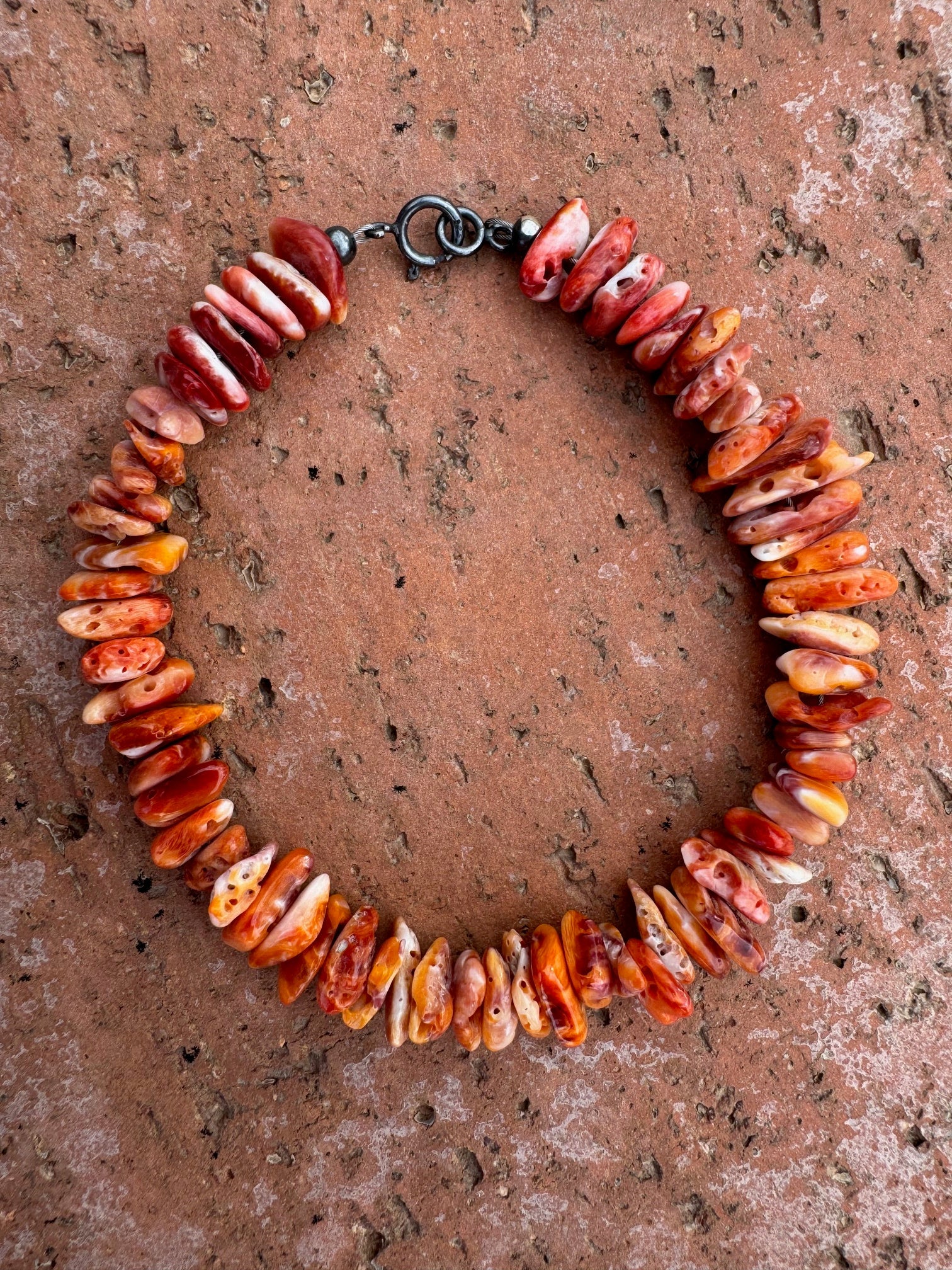 Beautiful Handcrafted Spiny Oyster Shell and Sterling Silver Beaded Bracelet. Measures 7 1/2 inches long. Perfect for any collection. Such a beautiful bracelet!