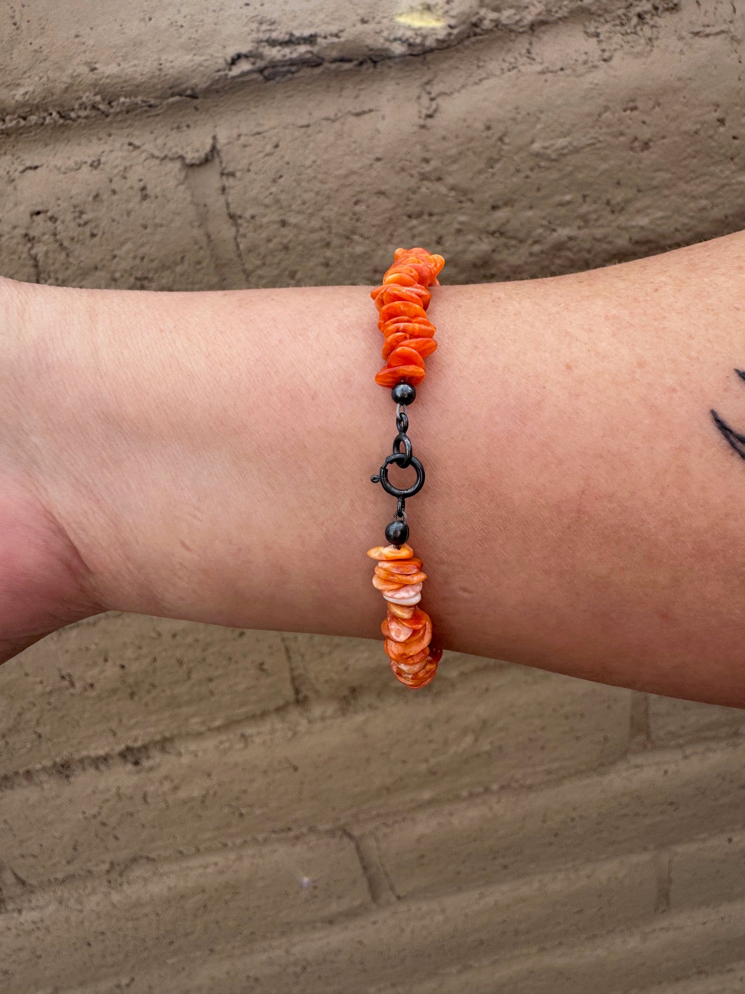 Beautiful Handcrafted Spiny Oyster Shell and Sterling Silver Beaded Bracelet. Measures 7 1/2 inches long. Perfect for any collection. Such a beautiful bracelet!