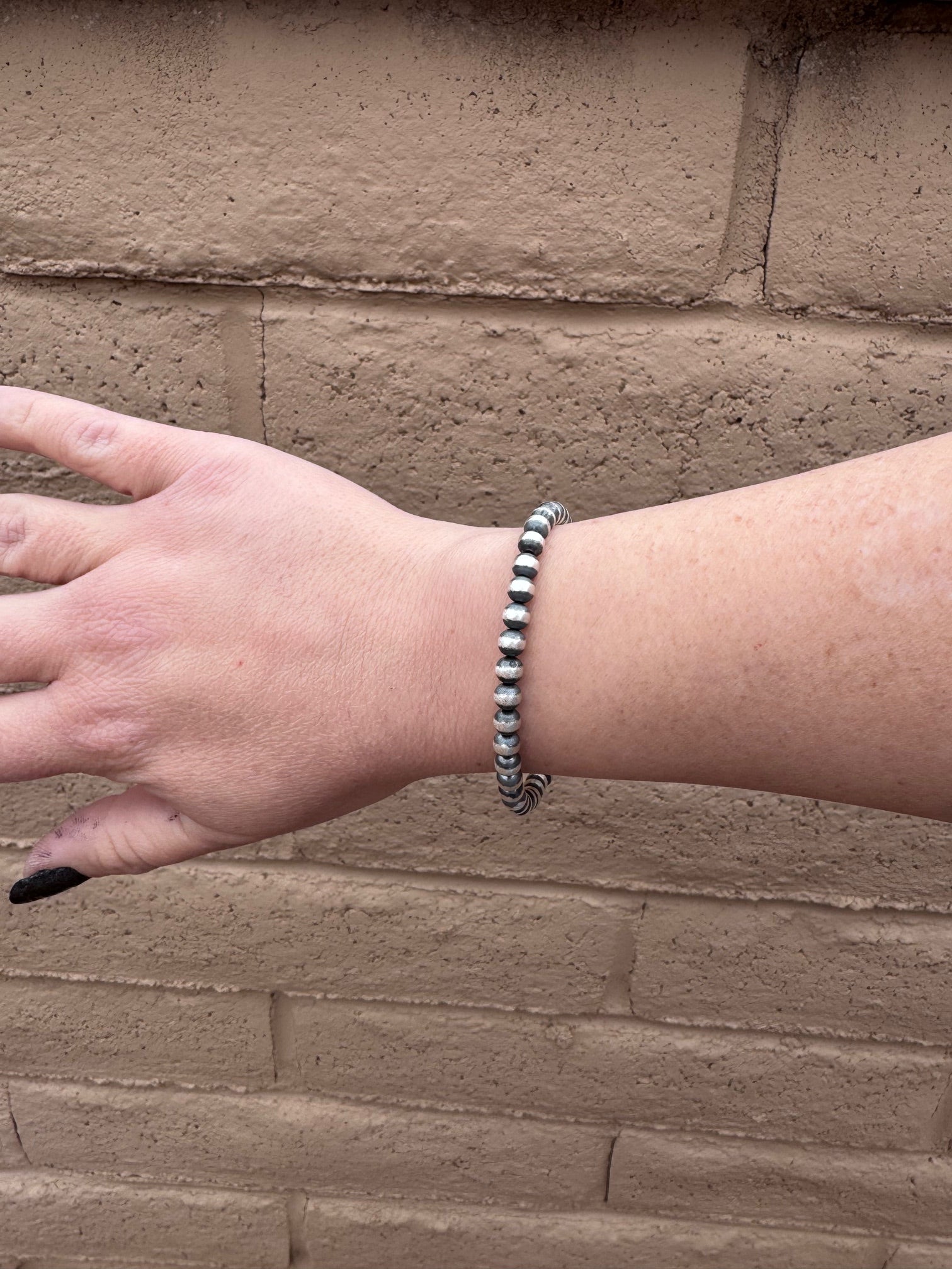 Beautiful Handcrafted Sterling Silver Pearl Beaded Bracelet. Beads measure 5mm, Bracelet measures 7 1/2 inches long. A must have for every collection!
