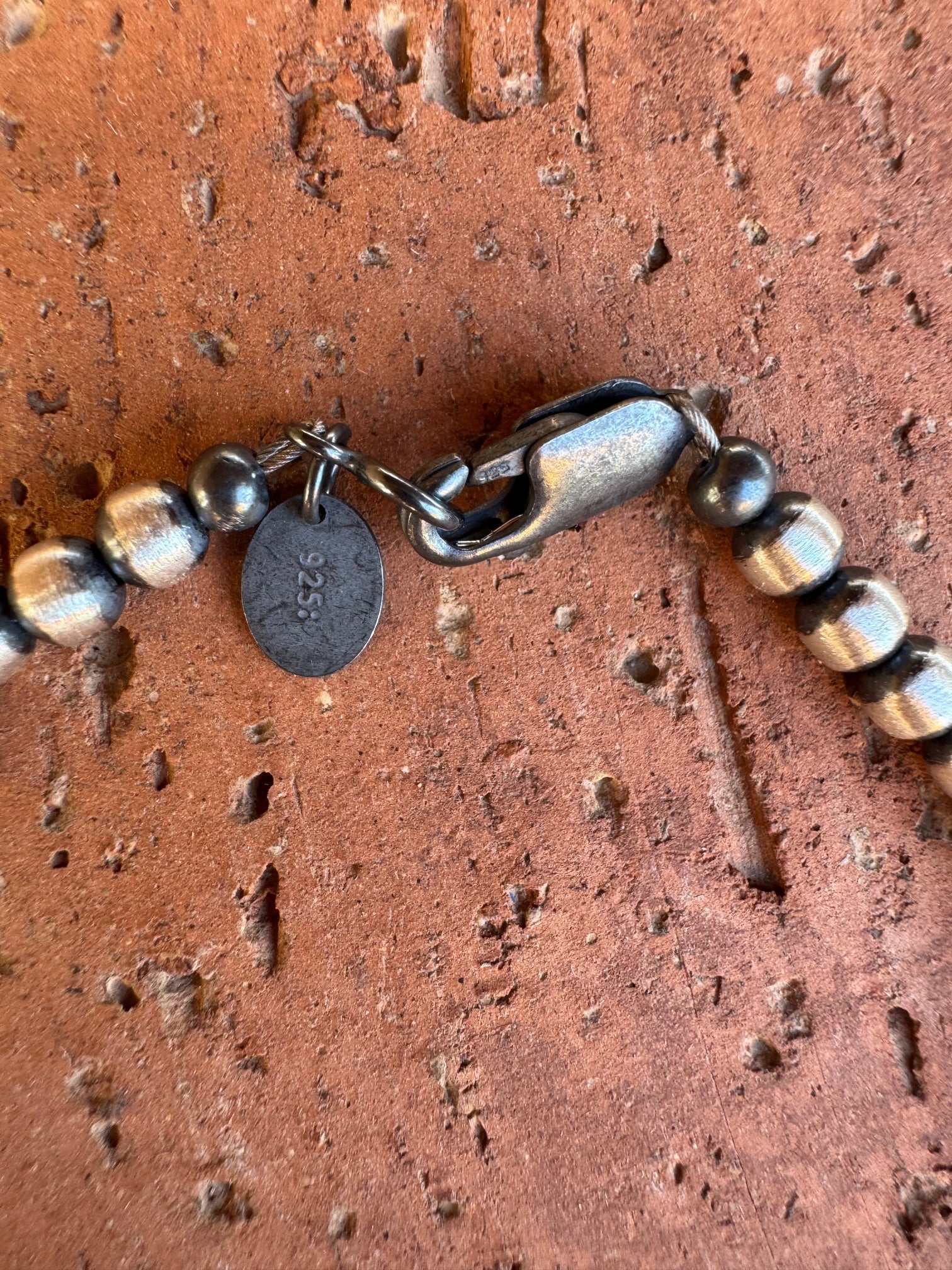 Handcrafted Turquoise & Sterling Silver Pearls 4-5mm Beaded Bracelet 7.5"