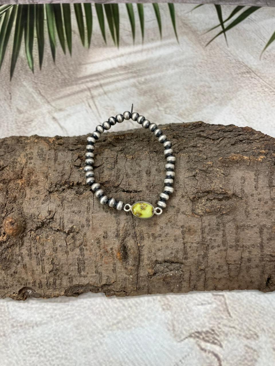 Handmade Sterling Silver Palomino Turquoise Beaded Chain Bracelet with Signed Nizhoni