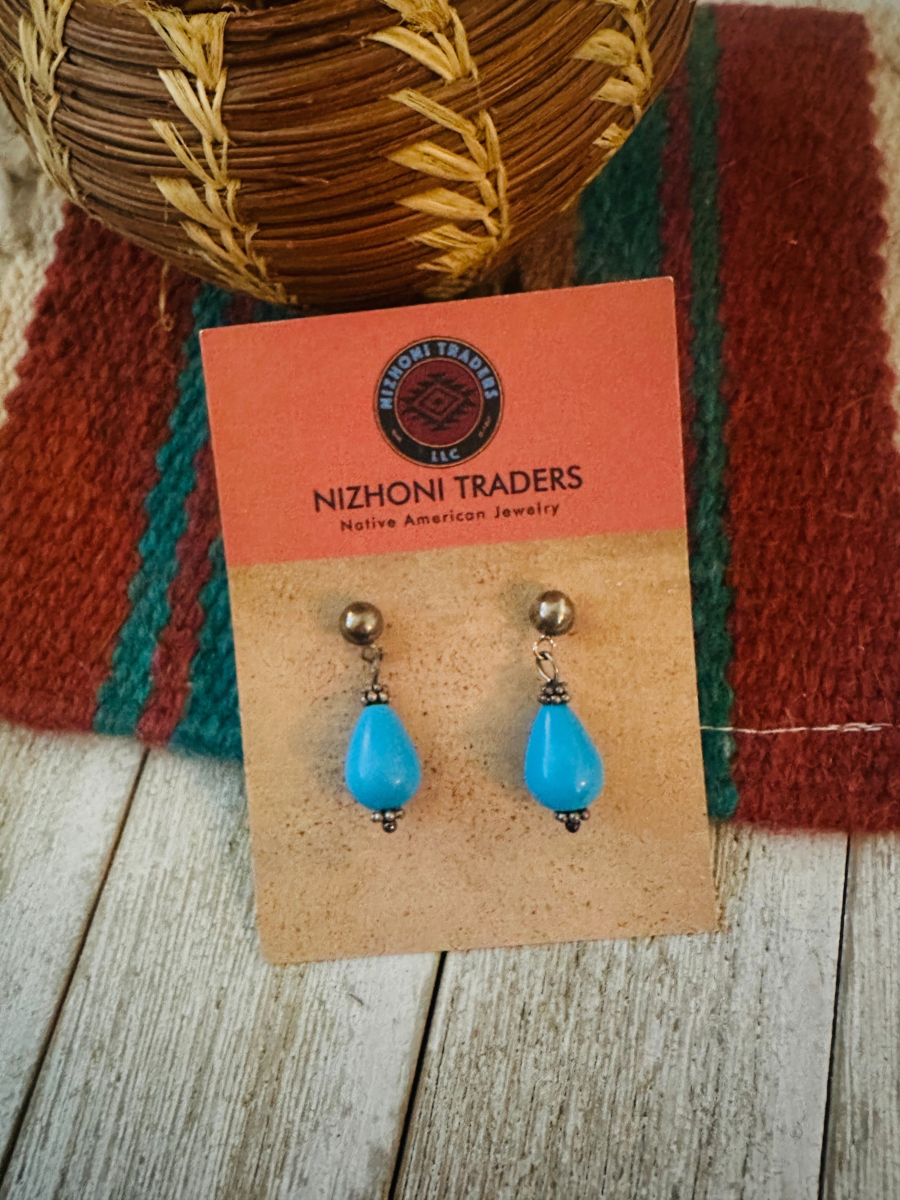 Handcrafted Old Pawn Sterling Silver & Turquoise Beaded Dangle Earrings