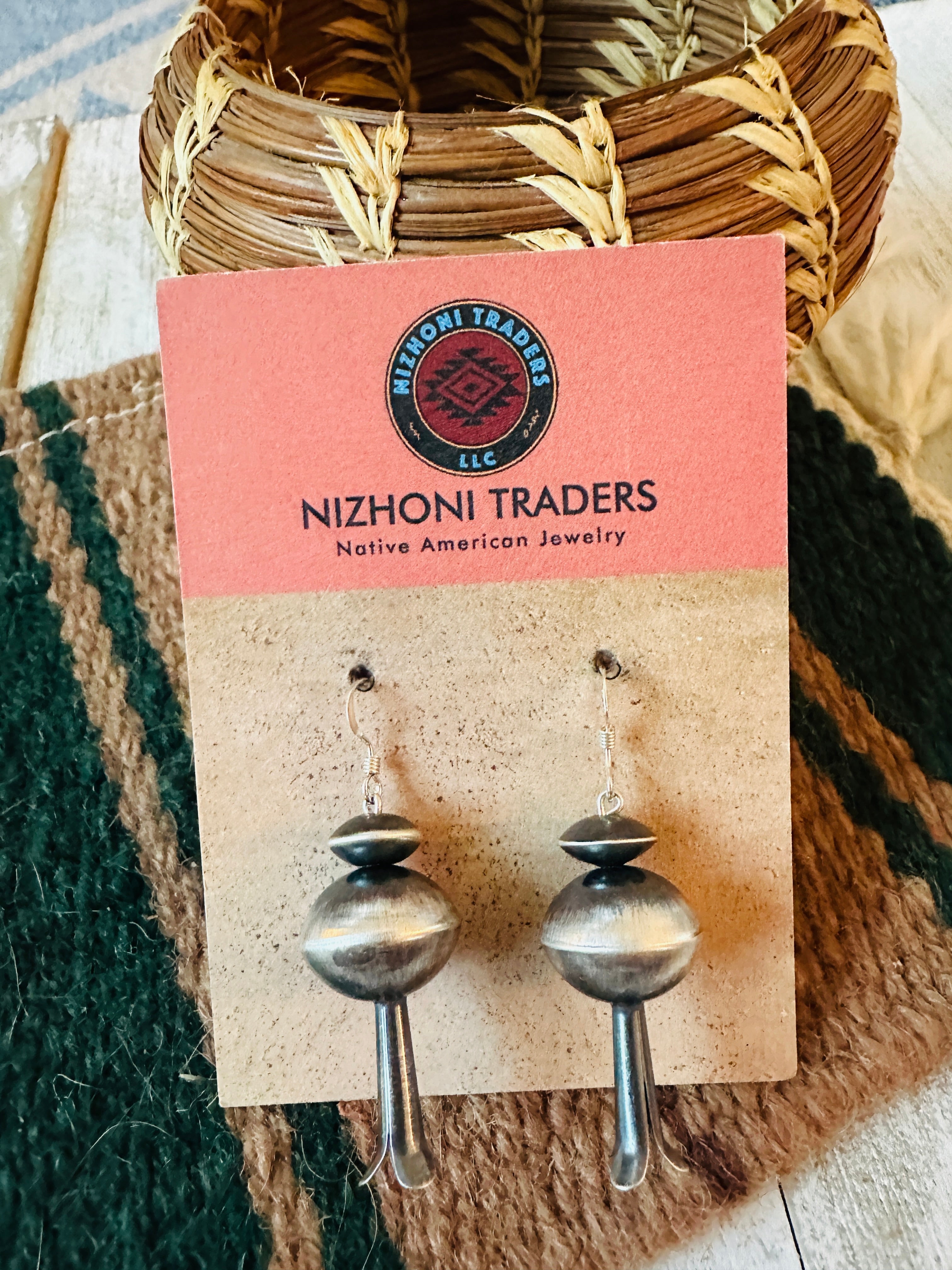 Navajo Sterling Silver Beaded Blossom Dangle Earrings. Such a great pair for any collection! These beauties measure 2 inches long and 5/8 of an inch wide.