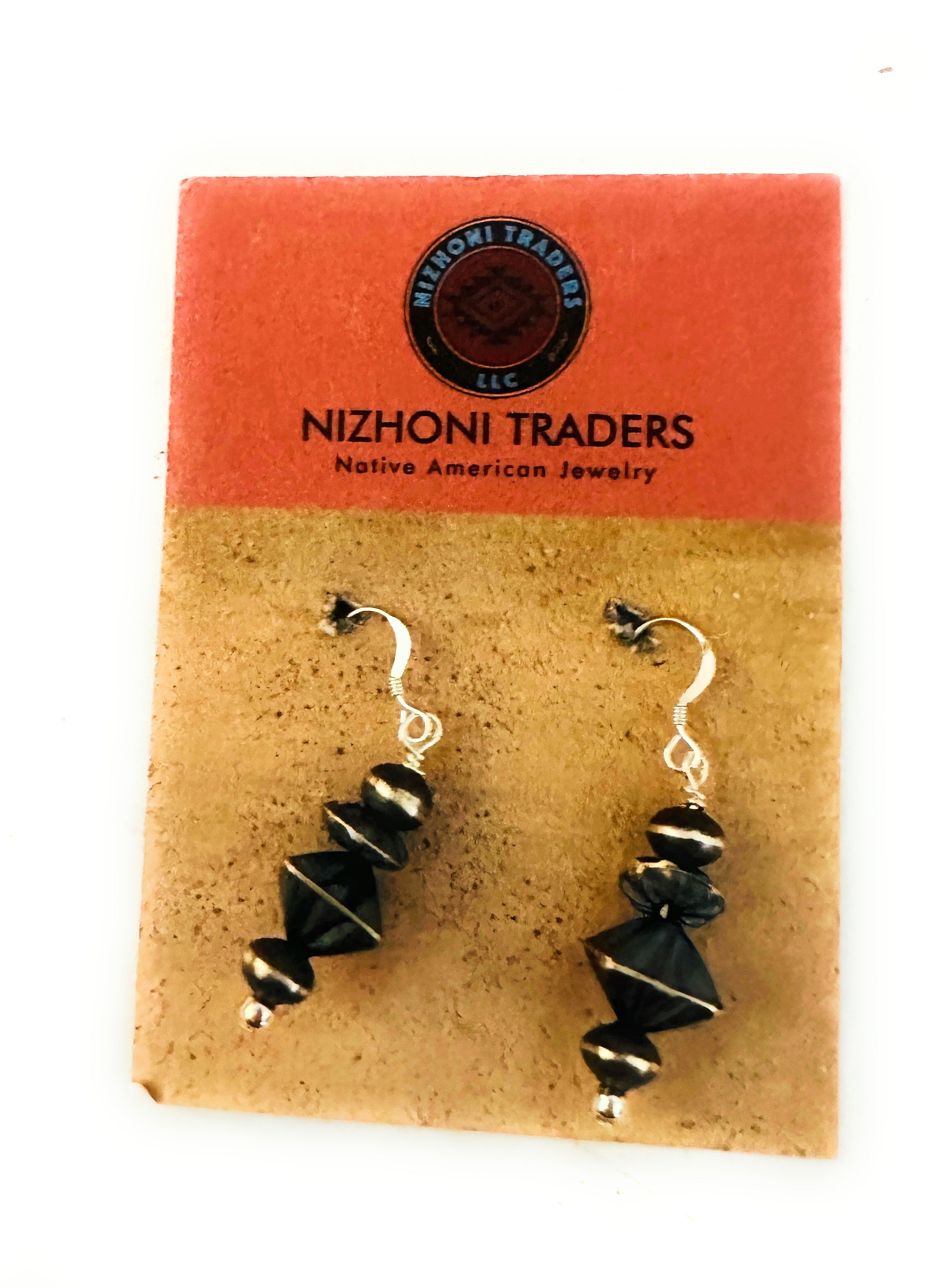 Navajo Sterling Silver Pearl beaded dangle earrings. Such a great pair for any collection! These beauties measure 1 3/4 inches long and 1/2 of an inch wide.