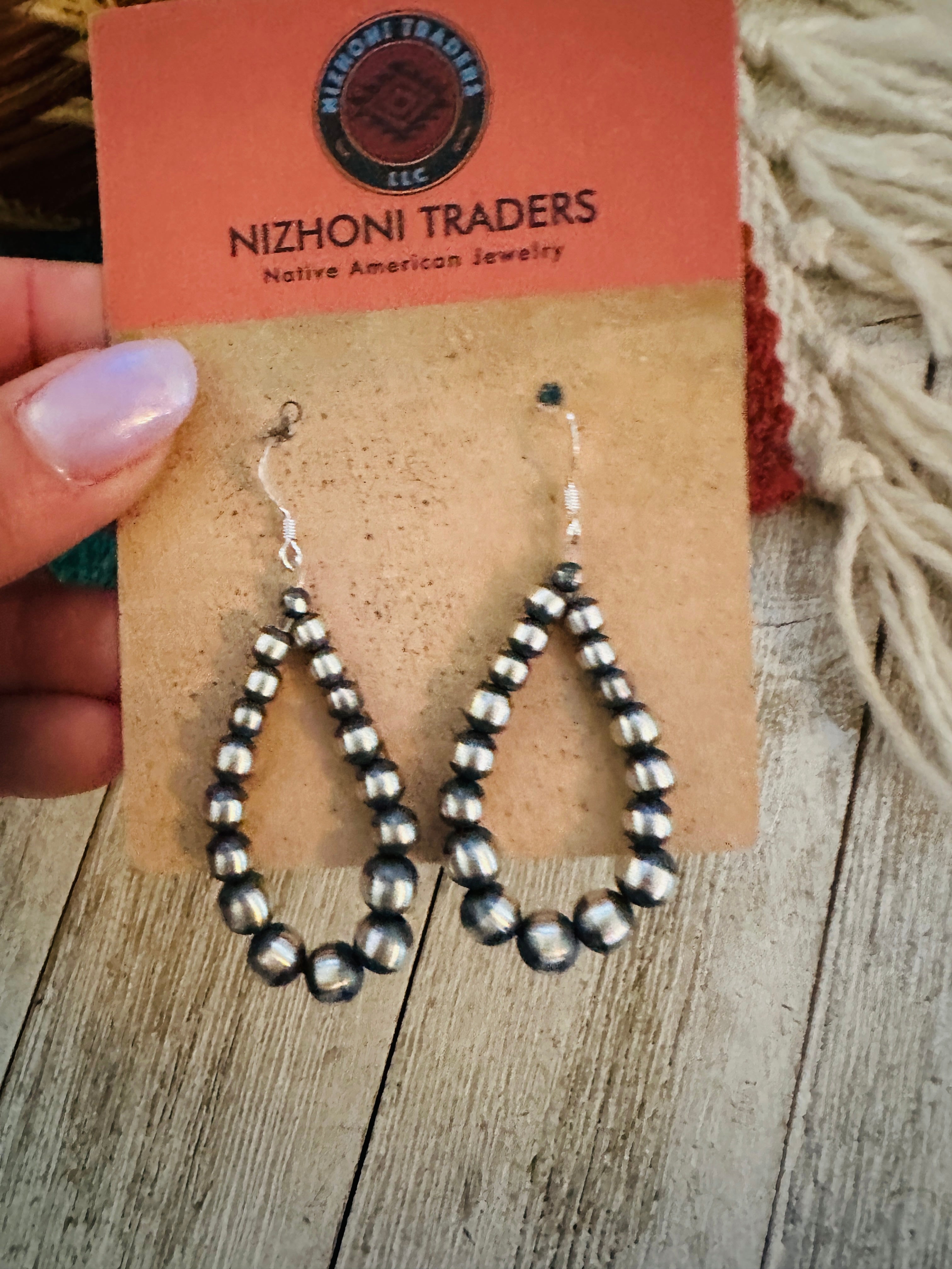 Navajo Sterling Silver Pearl beaded dangle hoop earrings. Such a great pair for any collection! These beauties measure 2 1/8 inches long and 1 inch wide.