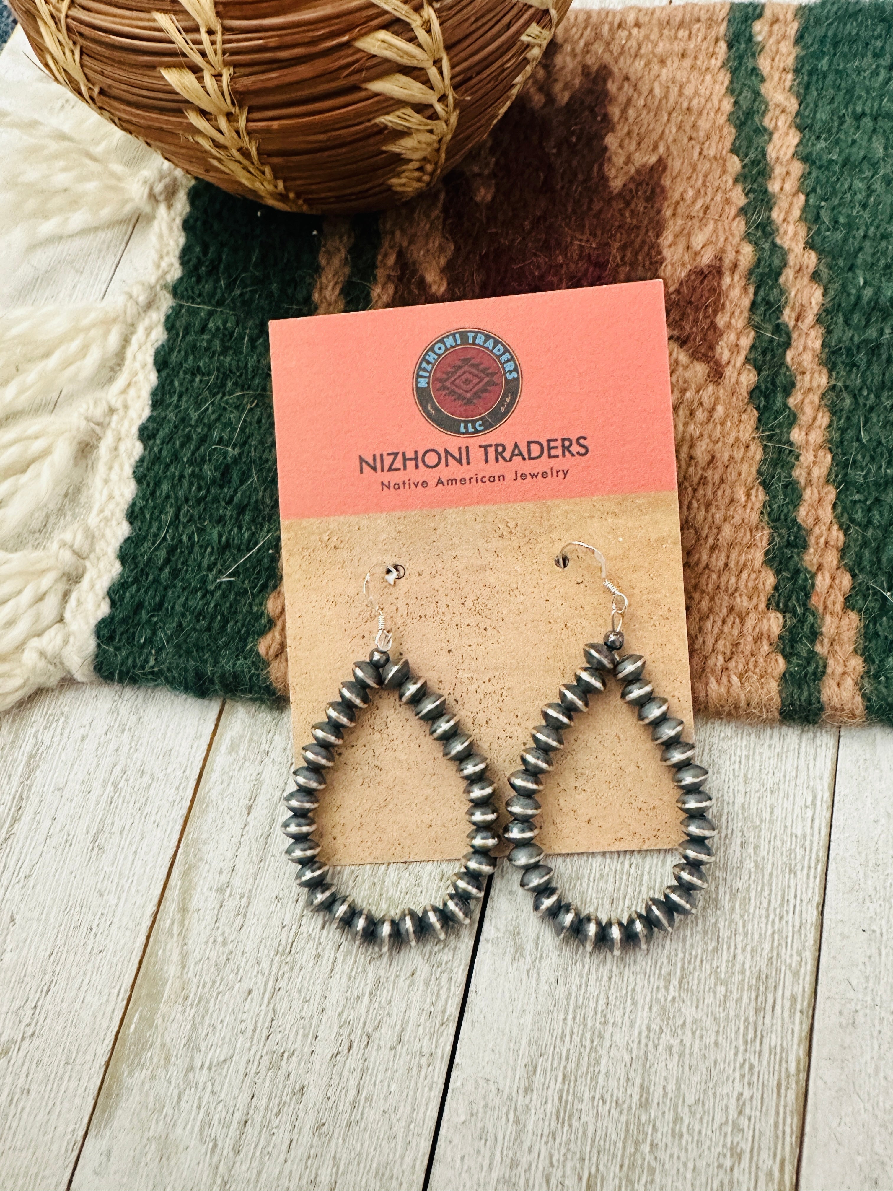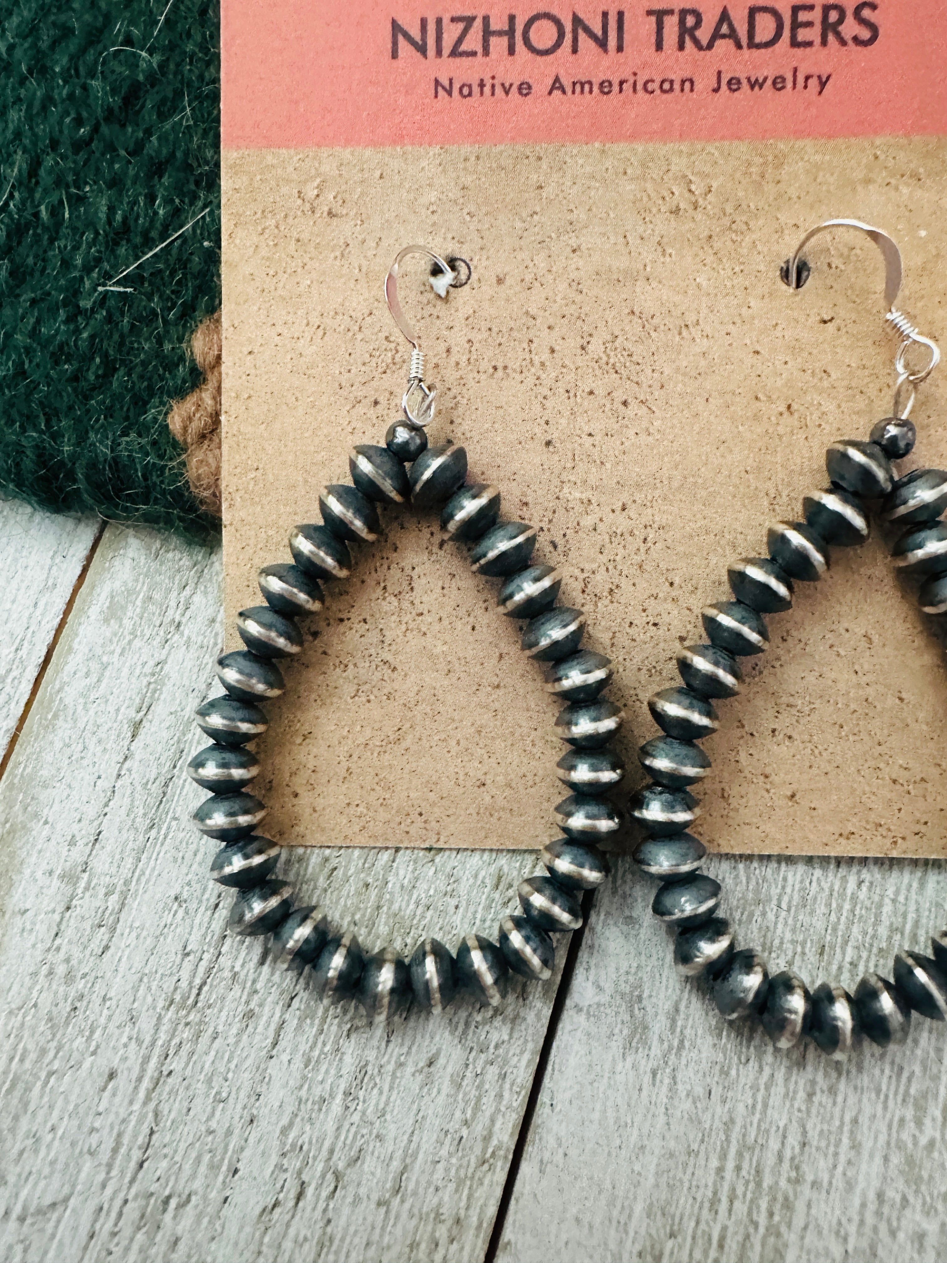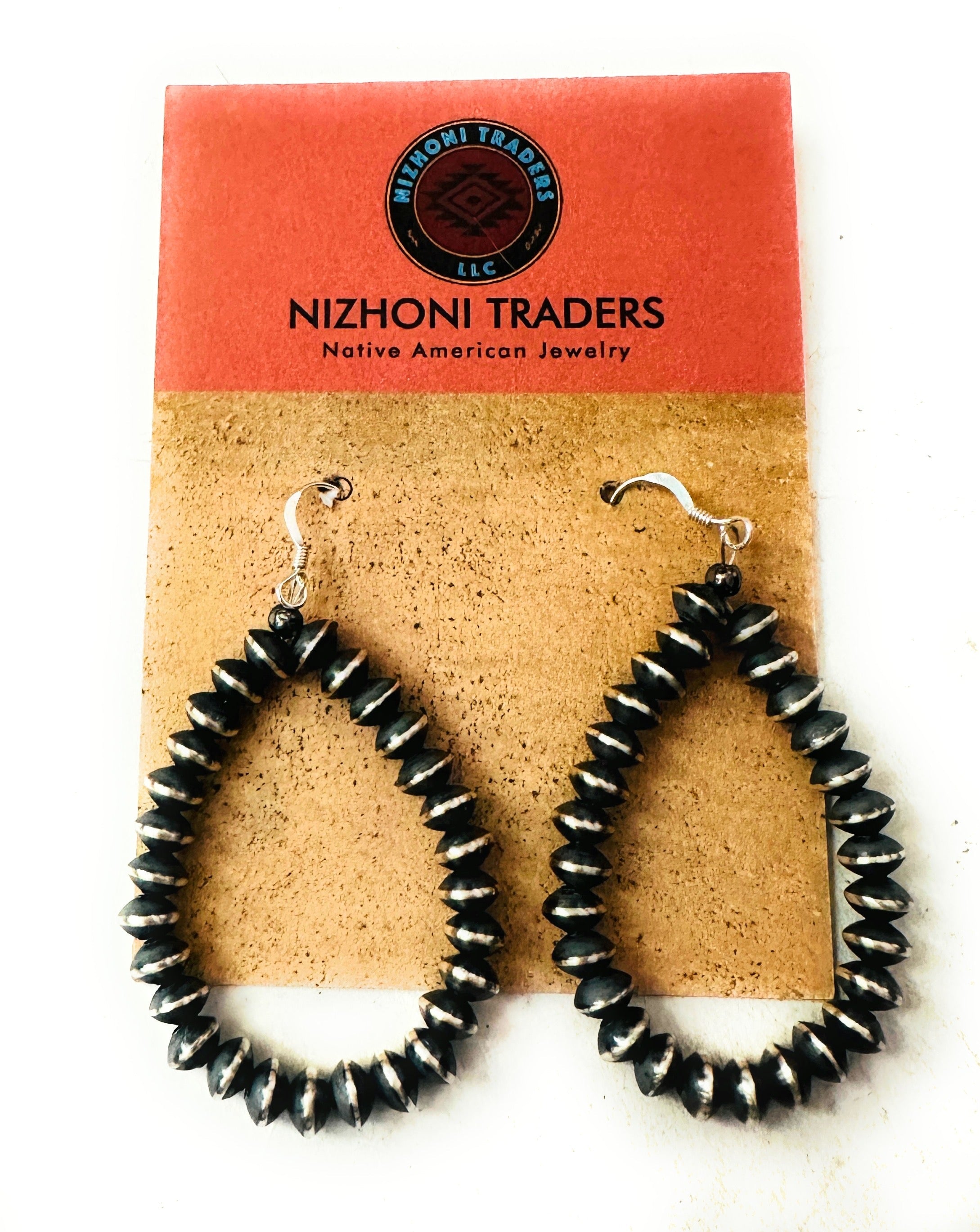 Navajo Sterling Silver Pearl beaded dangle hoop earrings. Such a great pair for any collection! These beauties measure 2 3/8 inches long and 1 inch wide.