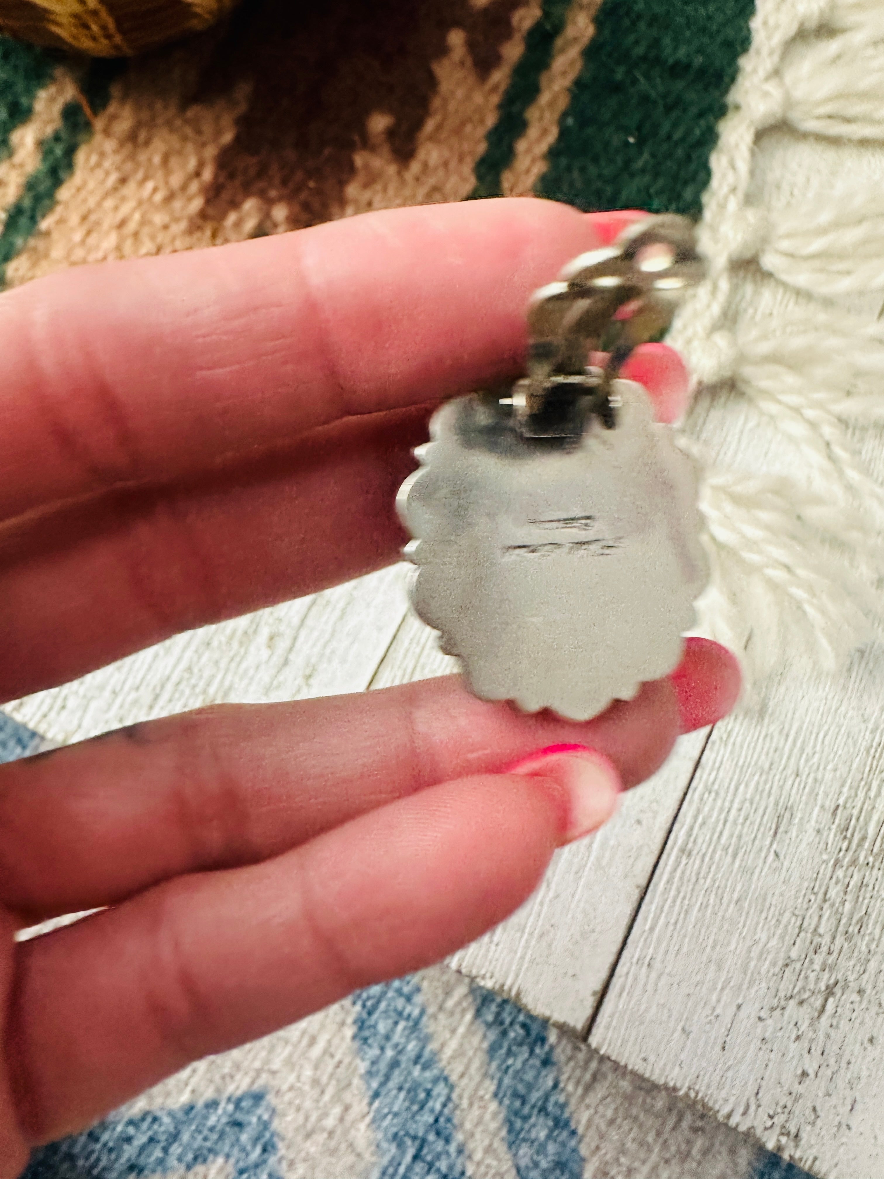 Beautiful Old Pawn Navajo Lapis and Sterling Silver Cluster Clip On Earrings. Measuring 1 1/4 inches long and 1 inch wide. Signed by the artist and stamped Sterling. Really pretty pair!