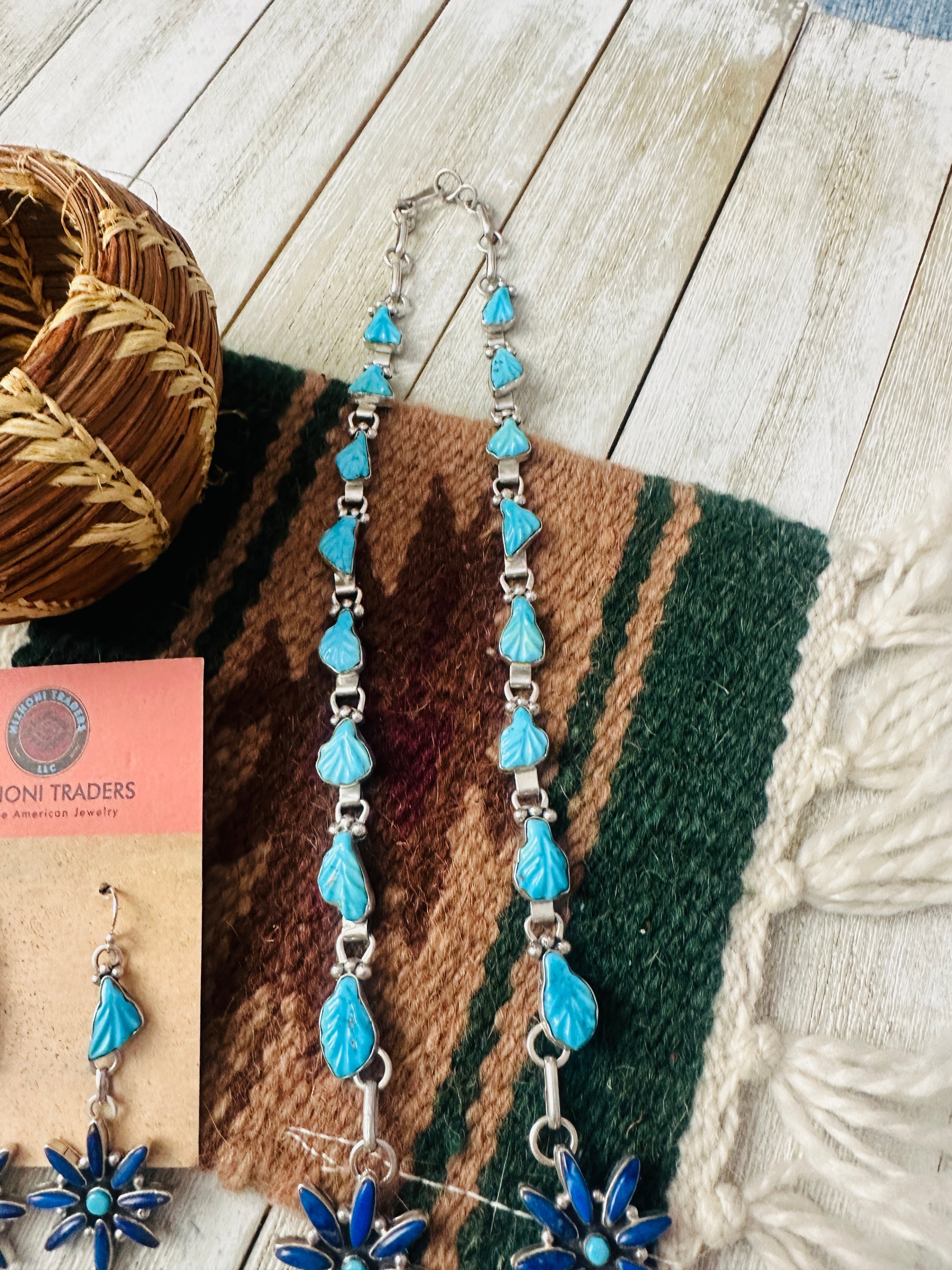 Old Pawn Zuni Sterling Silver, Turquoise & Lapis Flower Necklace and Earring Set