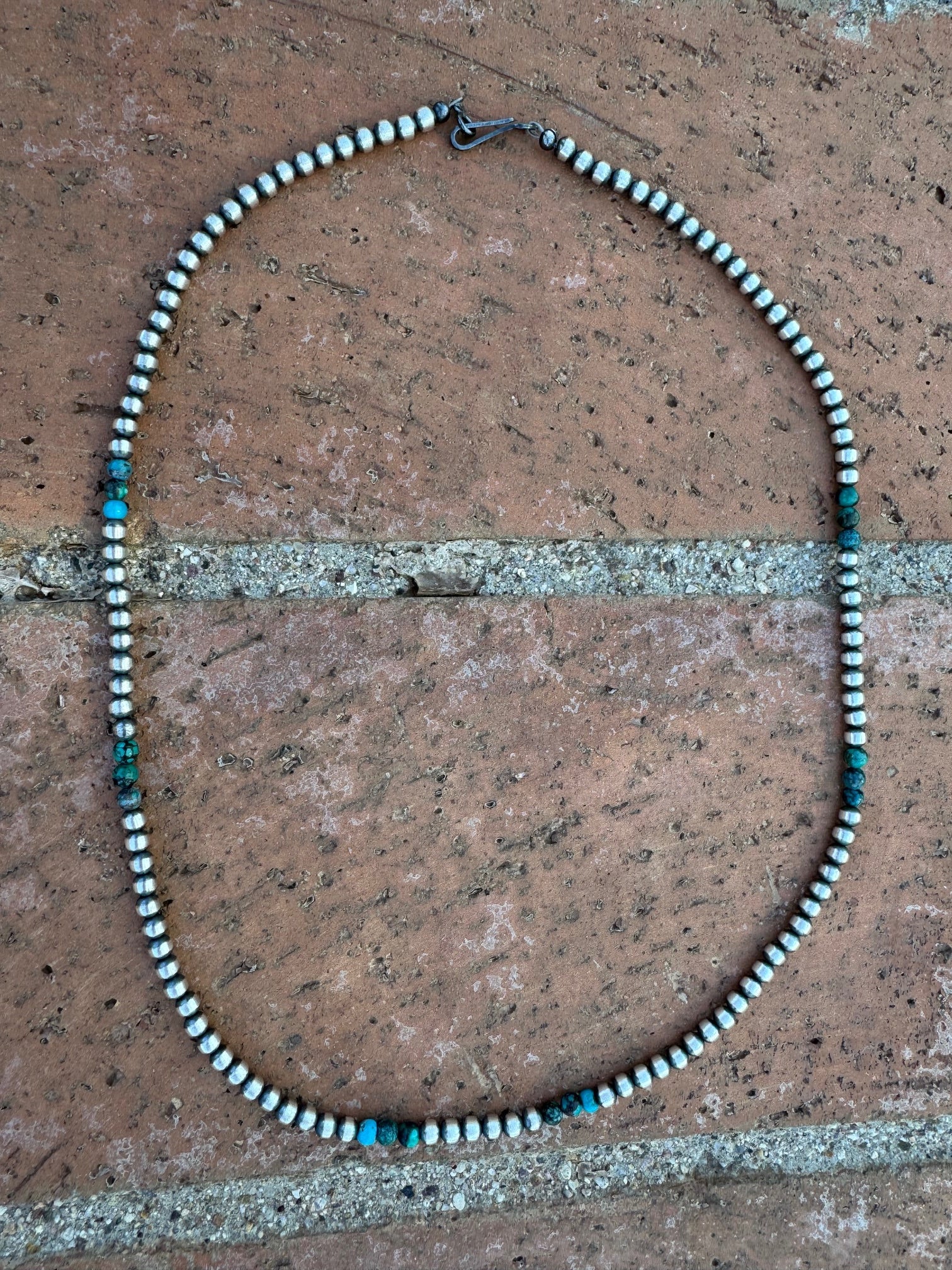 Beautiful Handcrafted Hubei Turquoise & 4mm Sterling Silver Pearl Beaded Necklace. Measures 20 inches long. Such a pretty piece! This listing is for 1 strand only, multiple strands is for photos only.