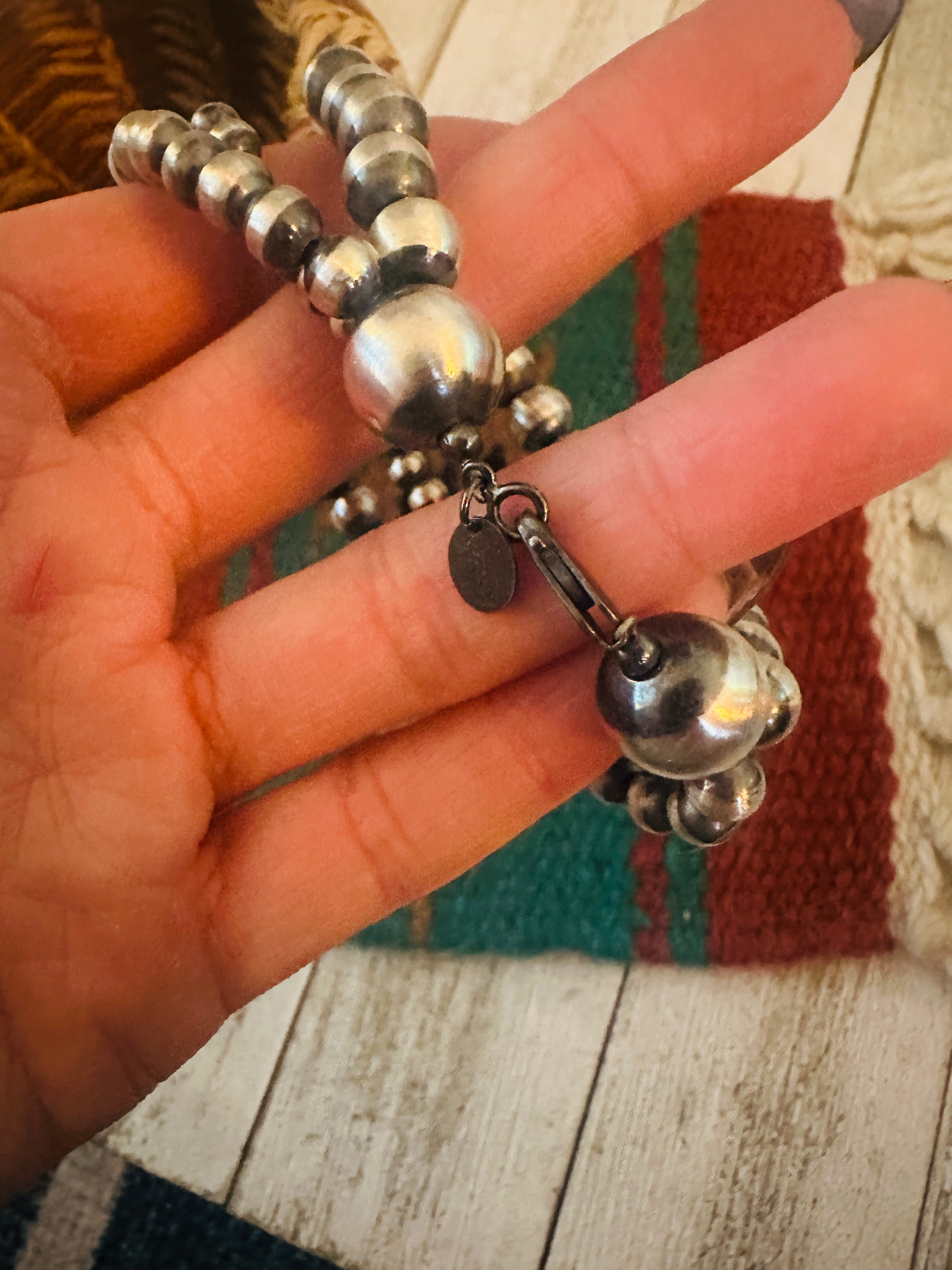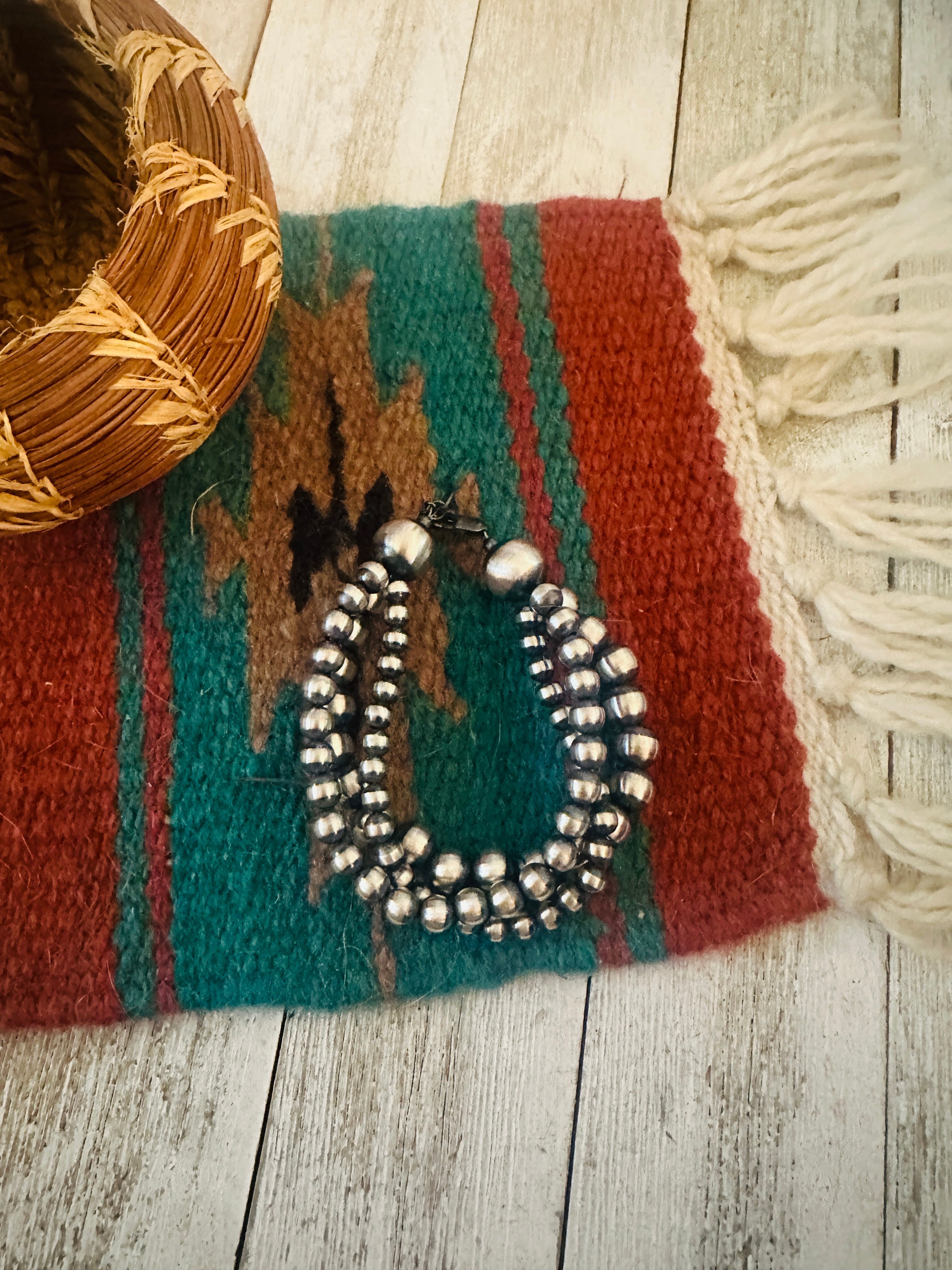 Handcrafted Sterling Silver Pearl Triple Strand Beaded Bracelet 7.5"