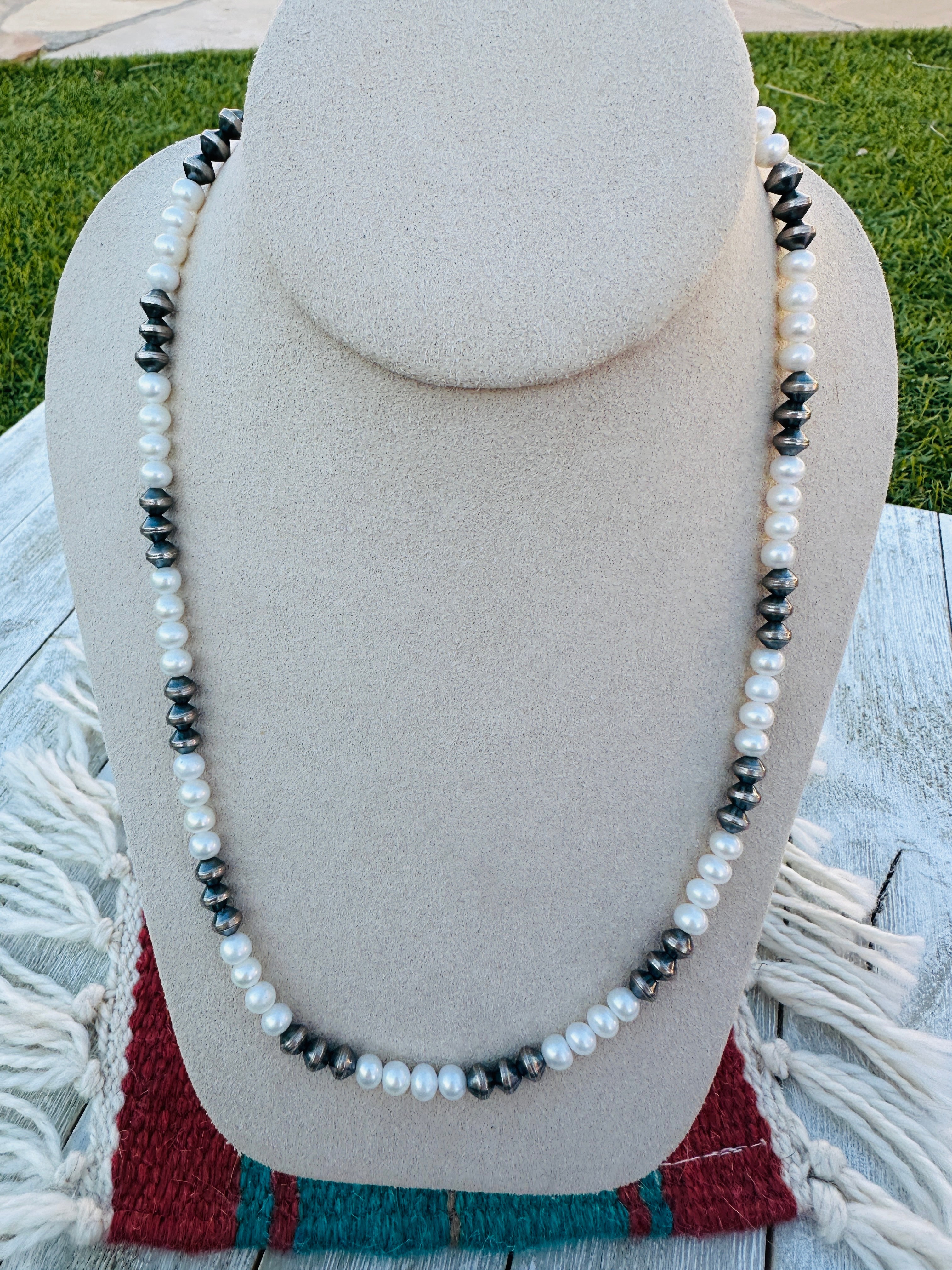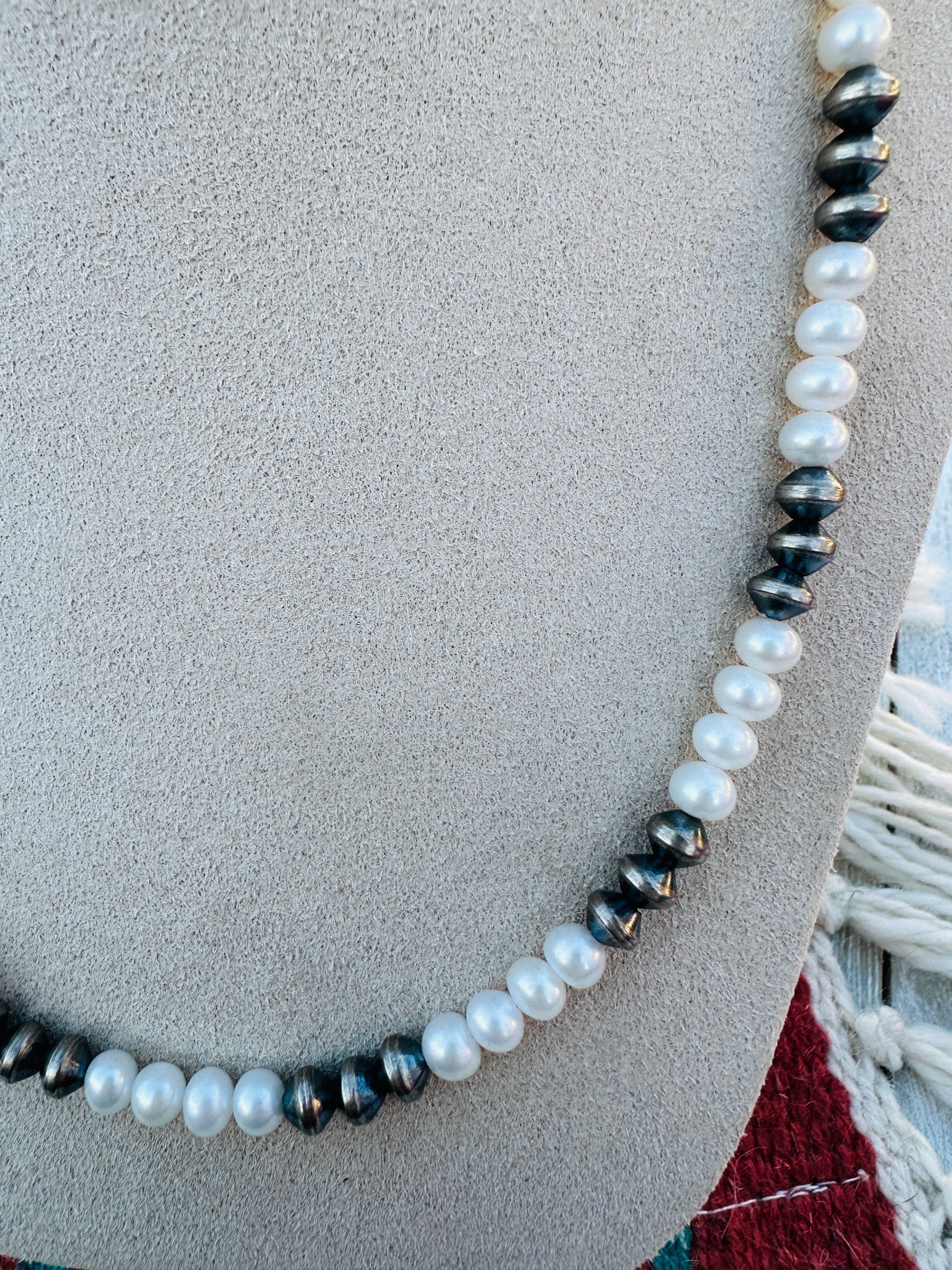 Sterling Silver Pearl & Freshwater Pearl 18” Beaded Necklace
