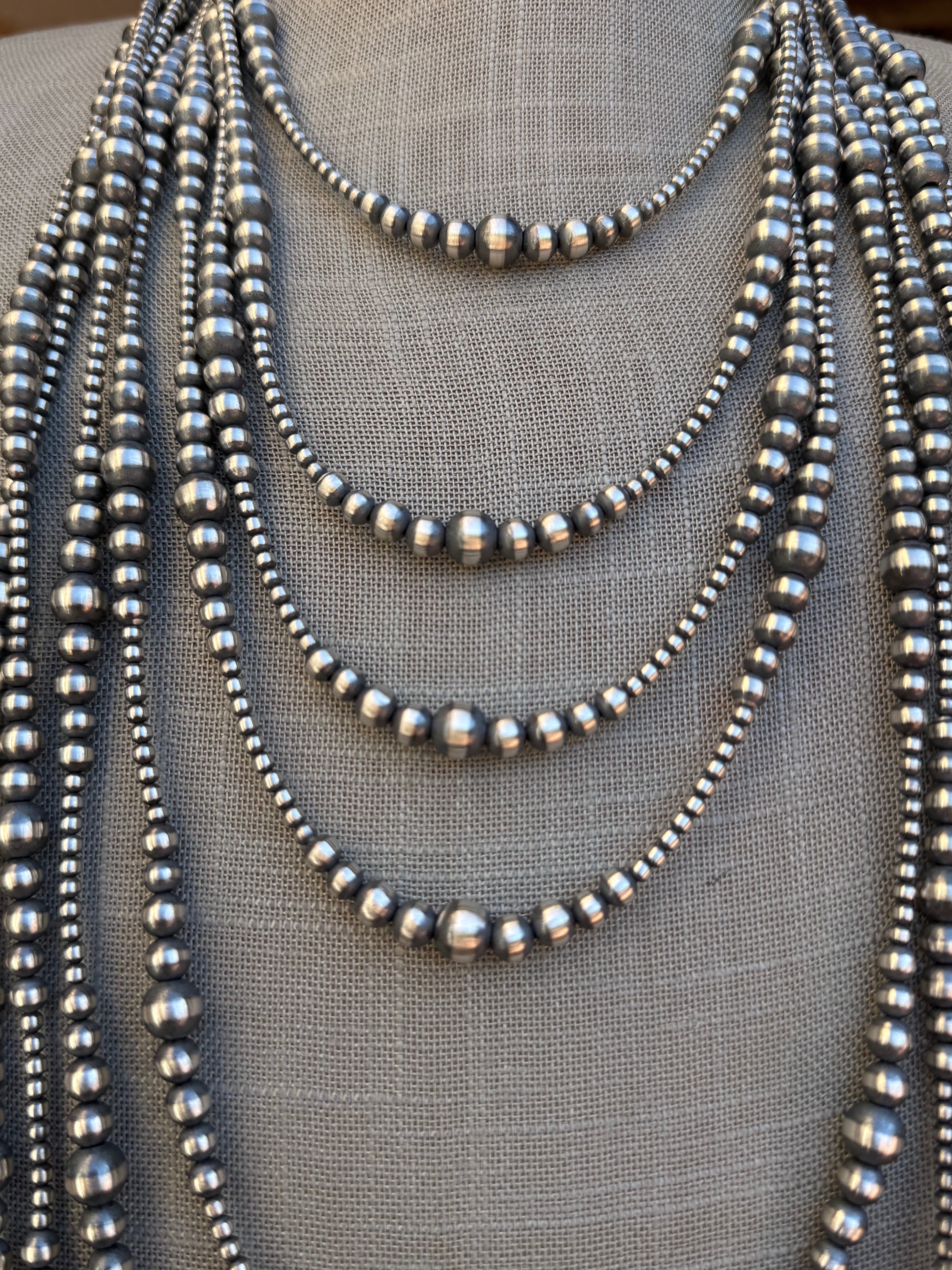 Handcrafted Sterling Silver Pearl Beaded 3-8mm Necklace
