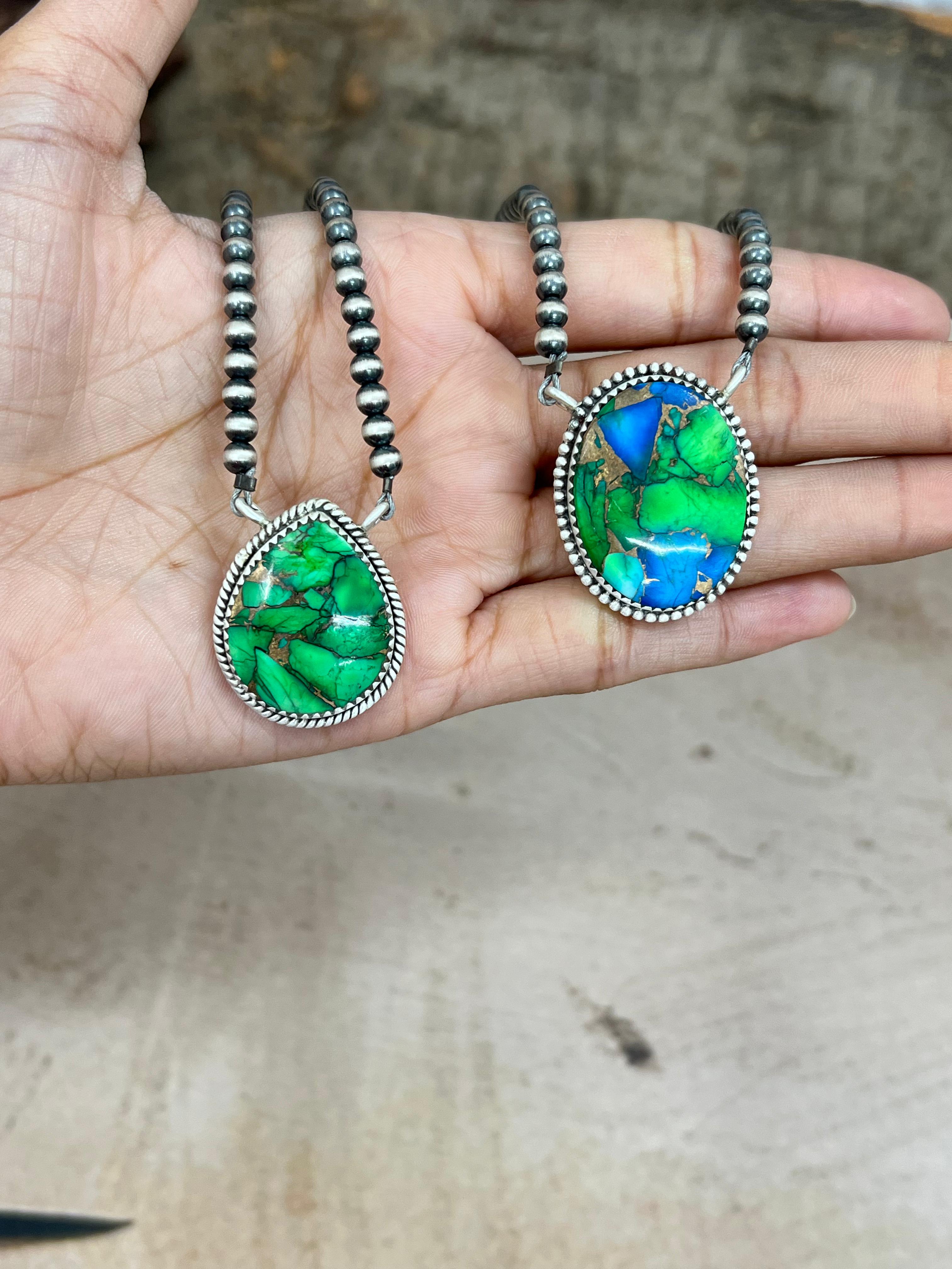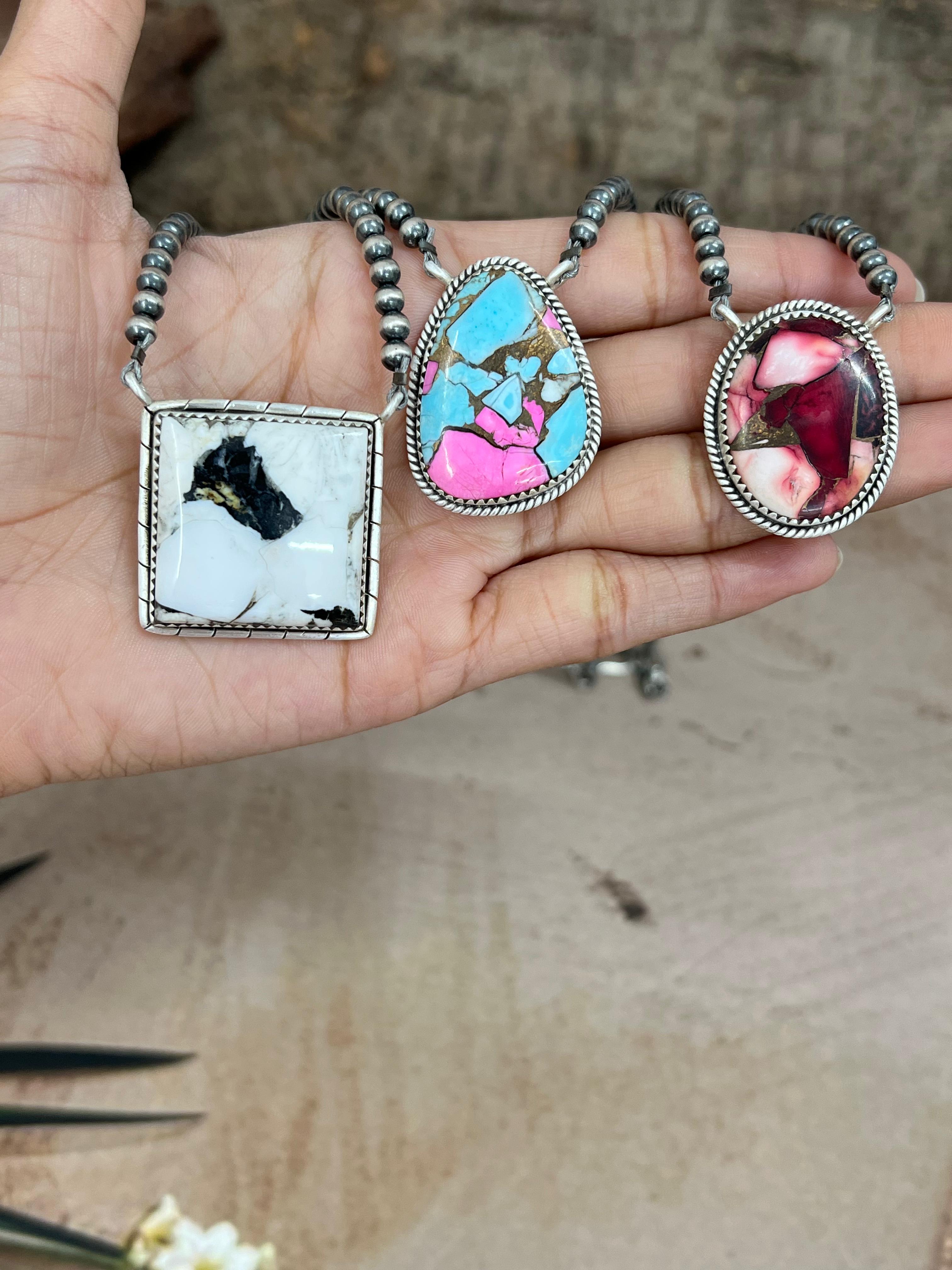 Handmade Sterling Silver Multi Stone Beaded Necklace, Signed Nizhoni