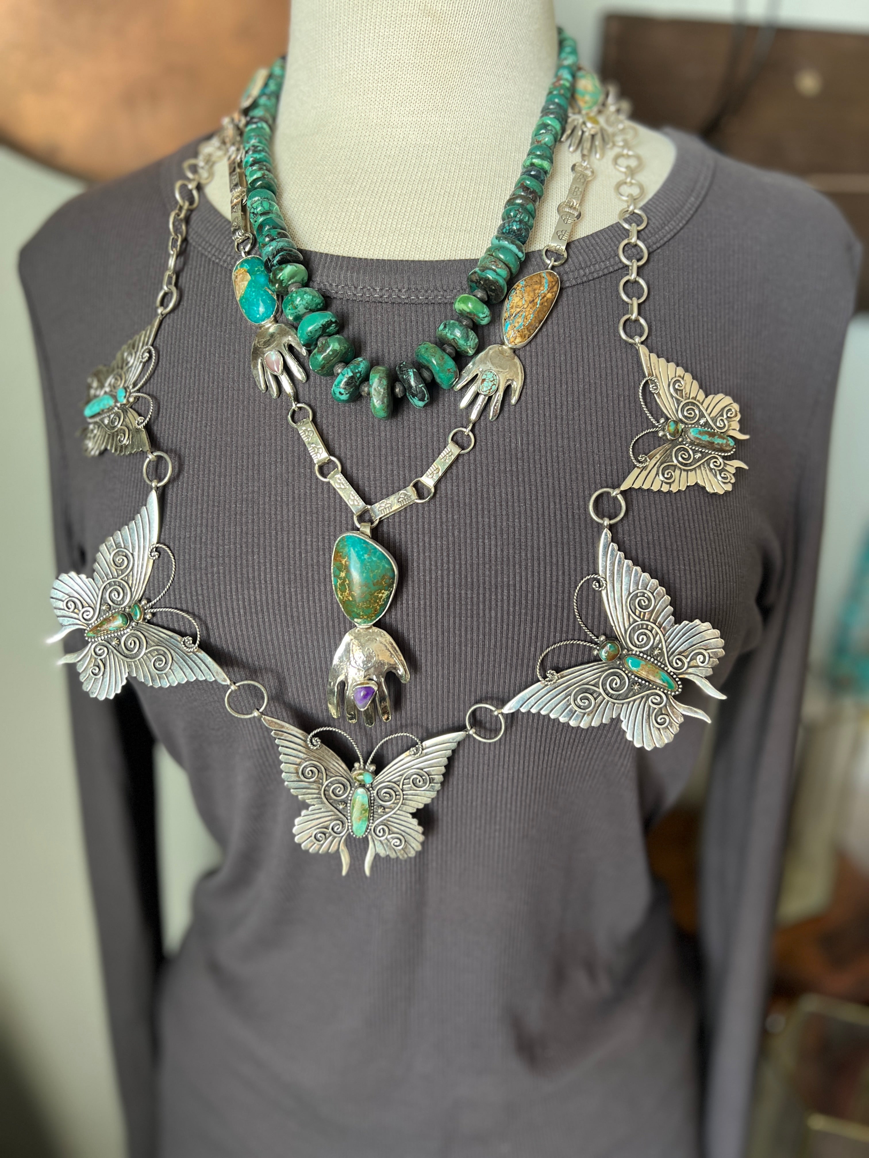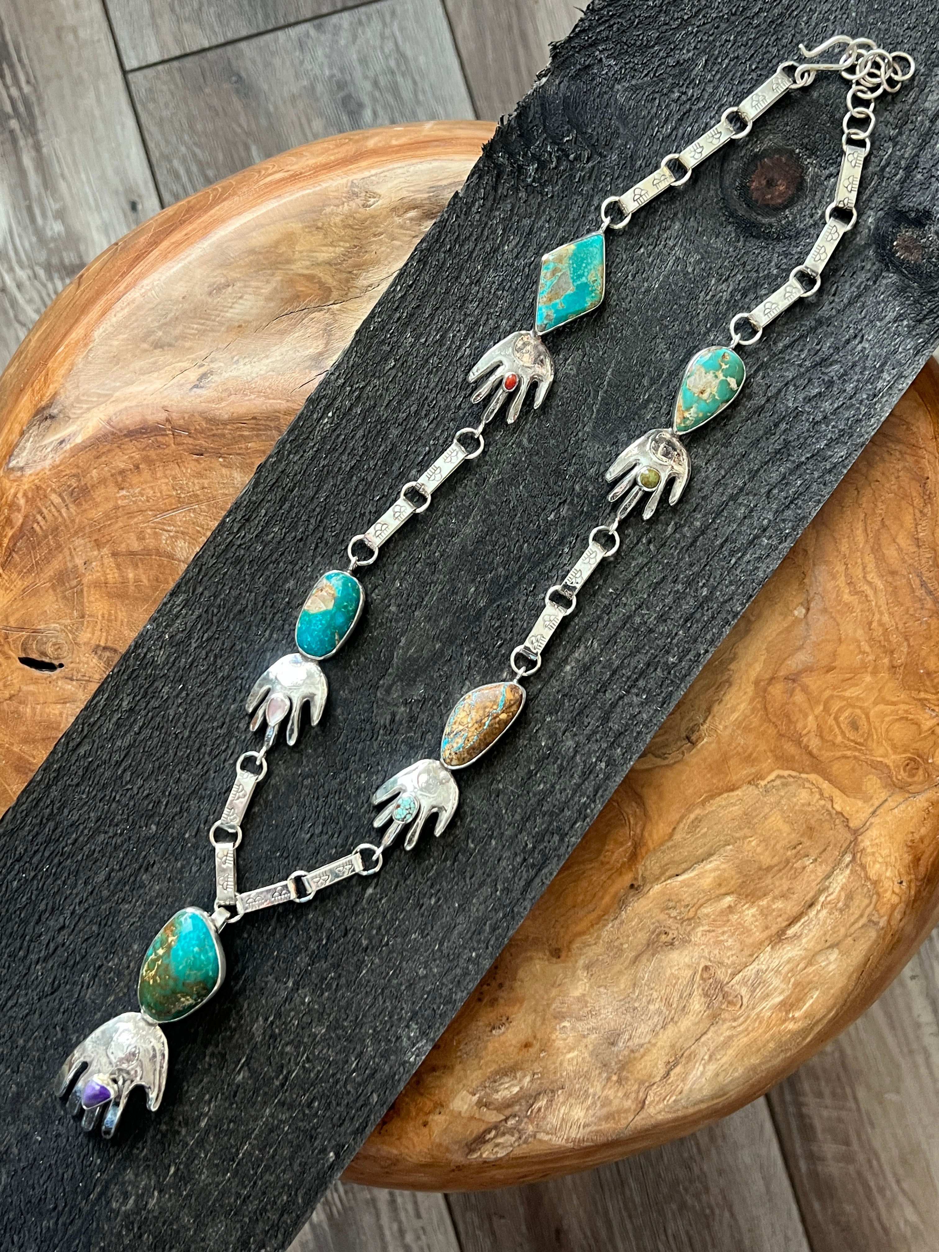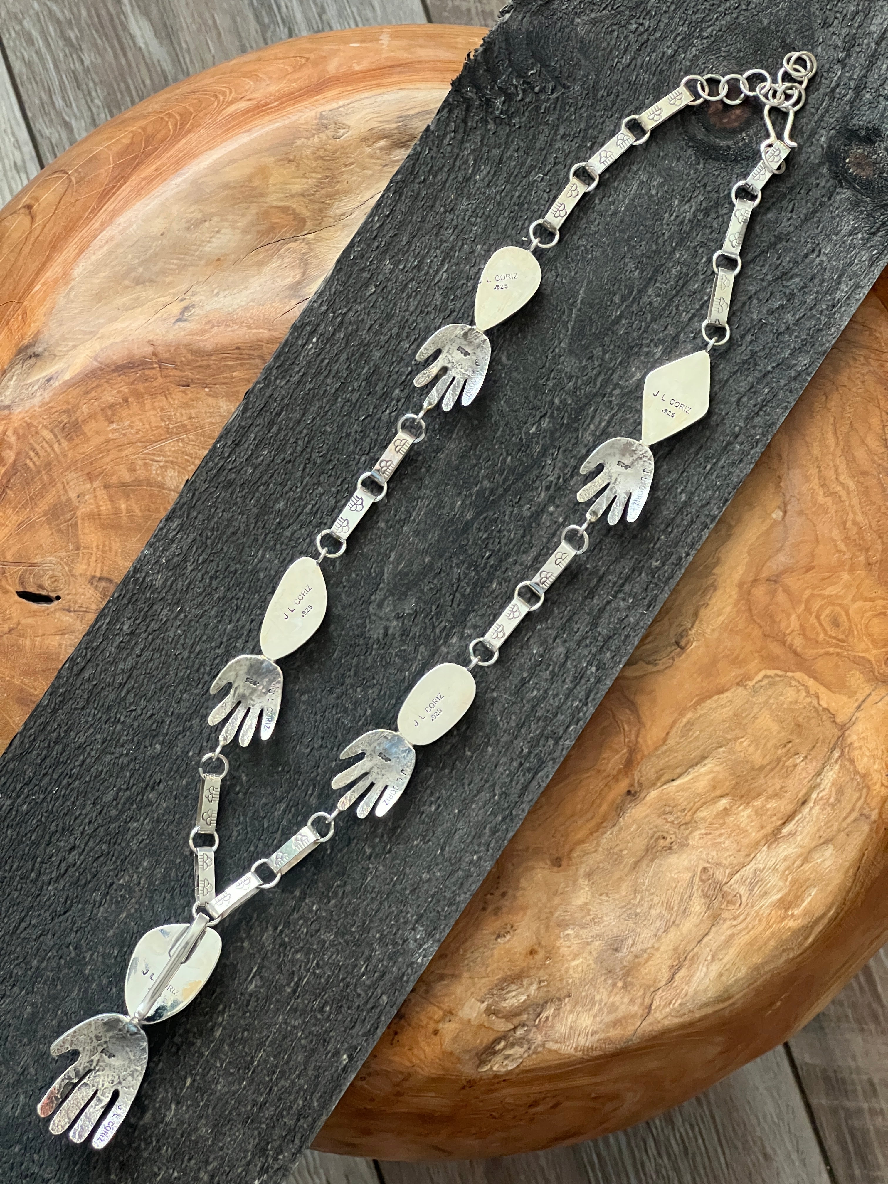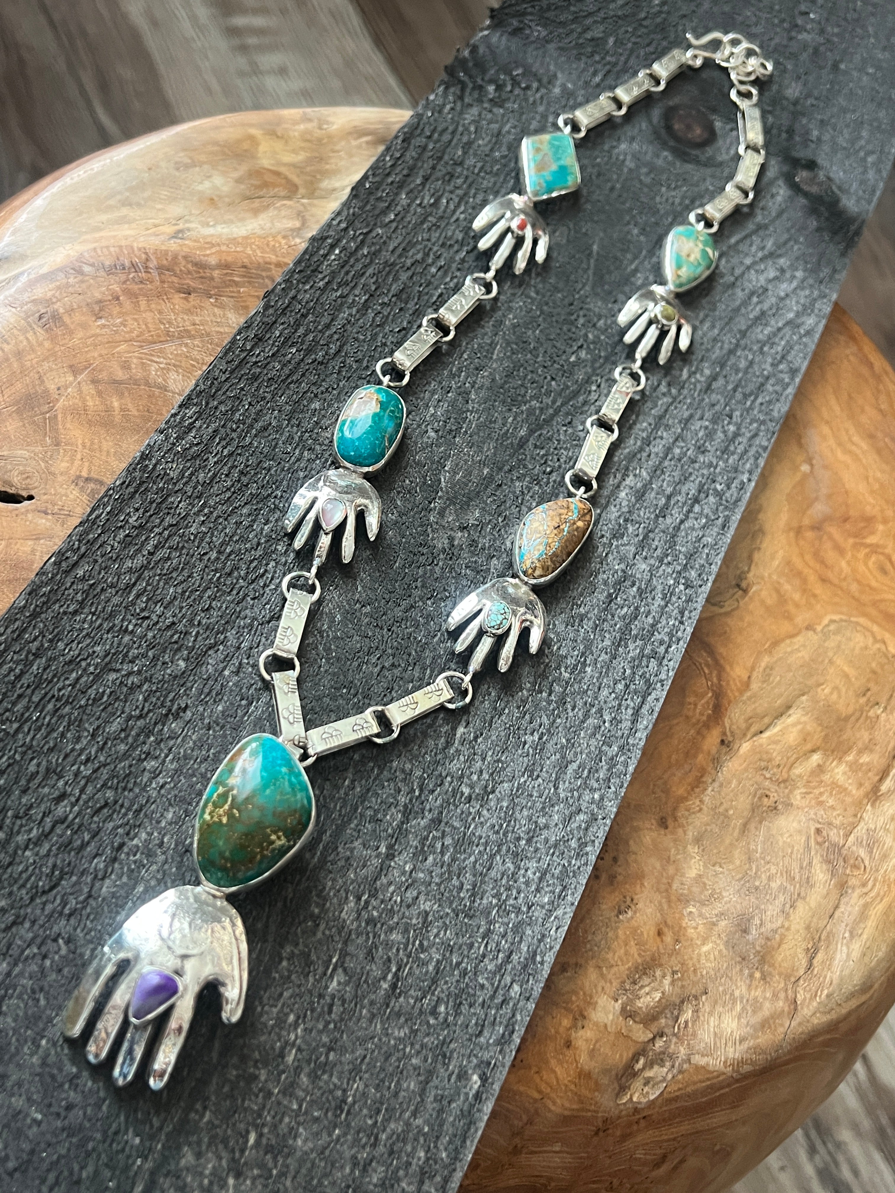 Jay Leon Coriz Handcrafted Sterling Silver and Royston Turquoise Healing Hand Station Necklace