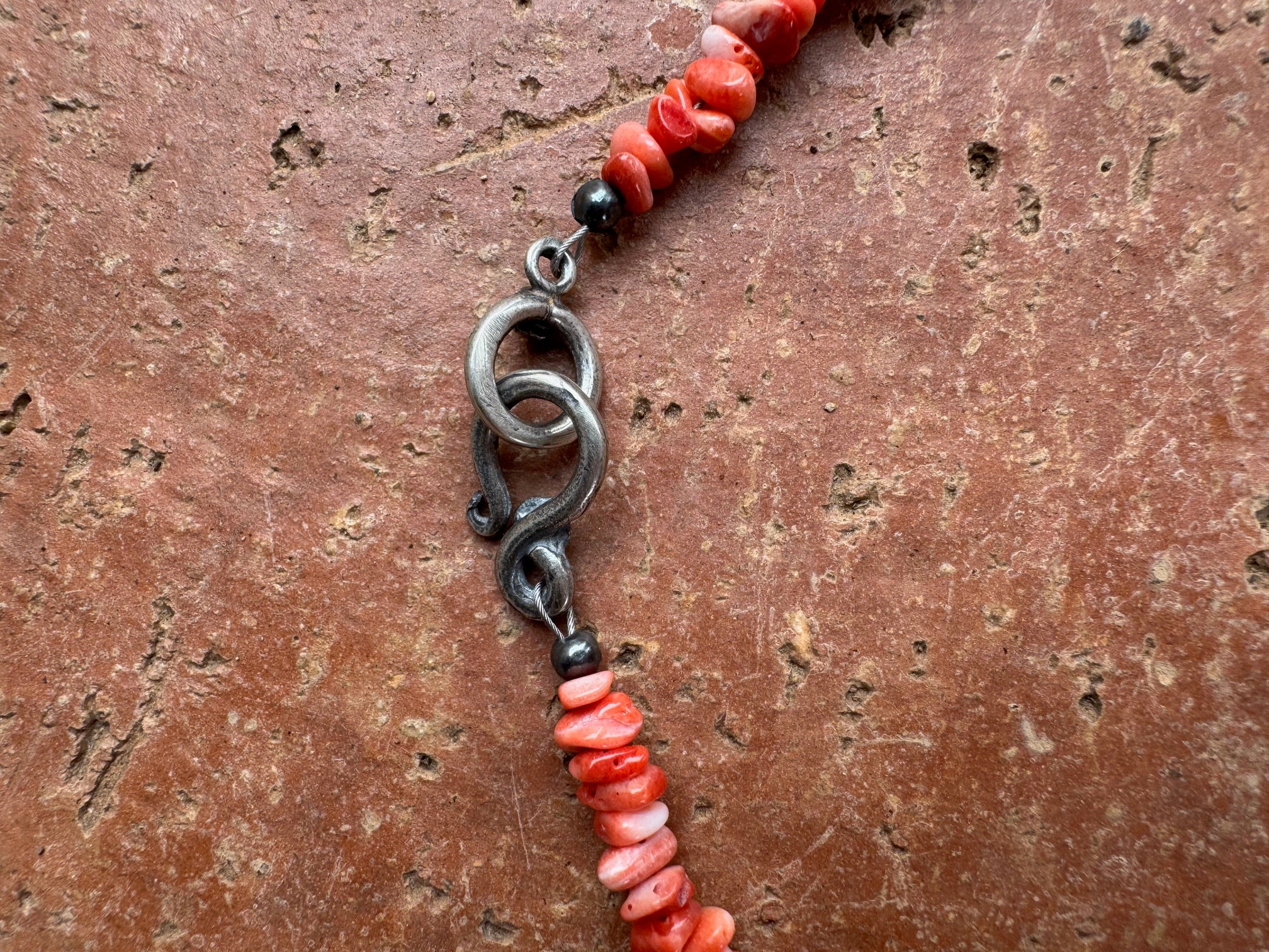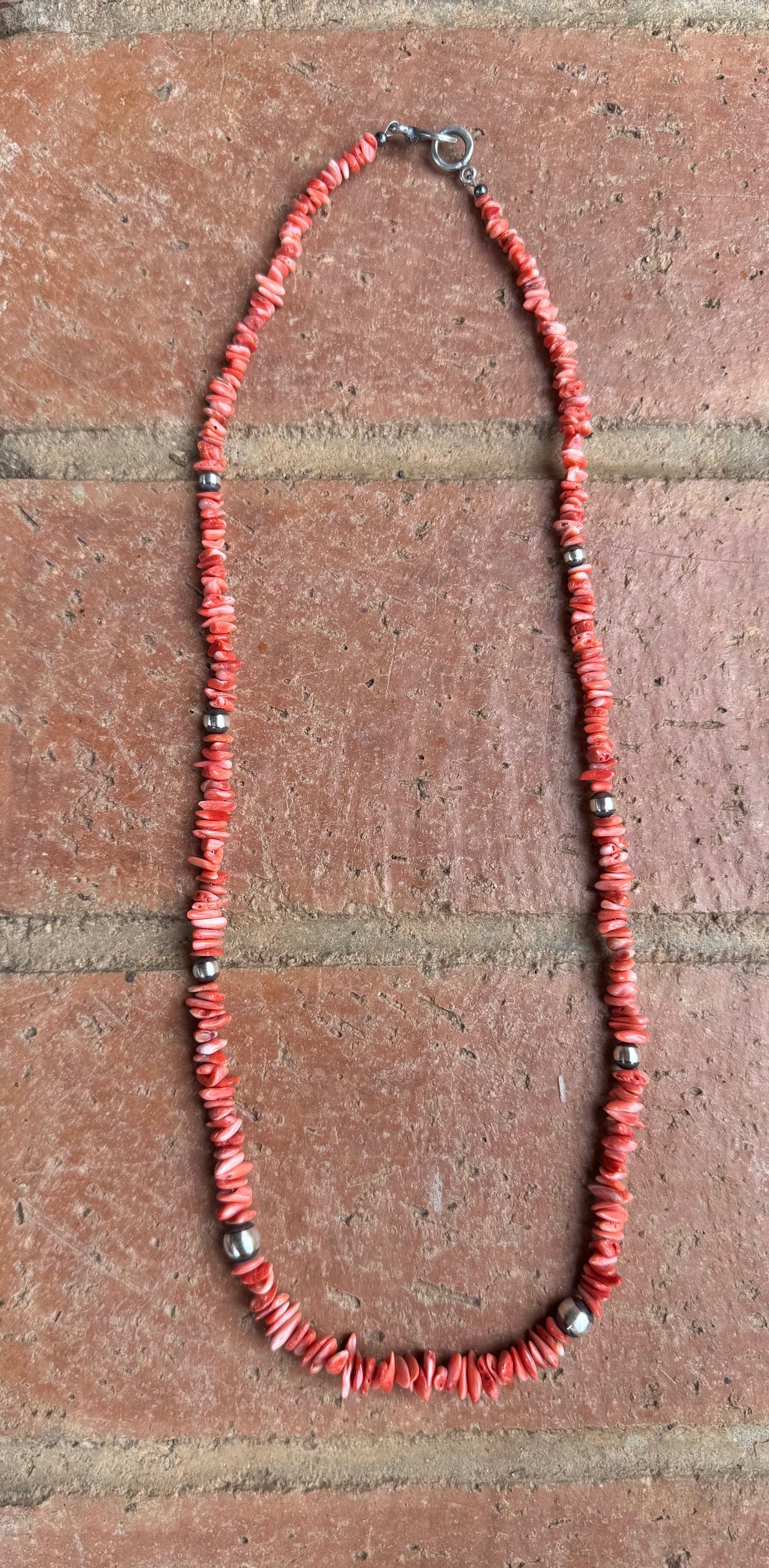 Handcrafted Coral and Sterling Silver Pearl 5-8mm Beaded Necklace 26"