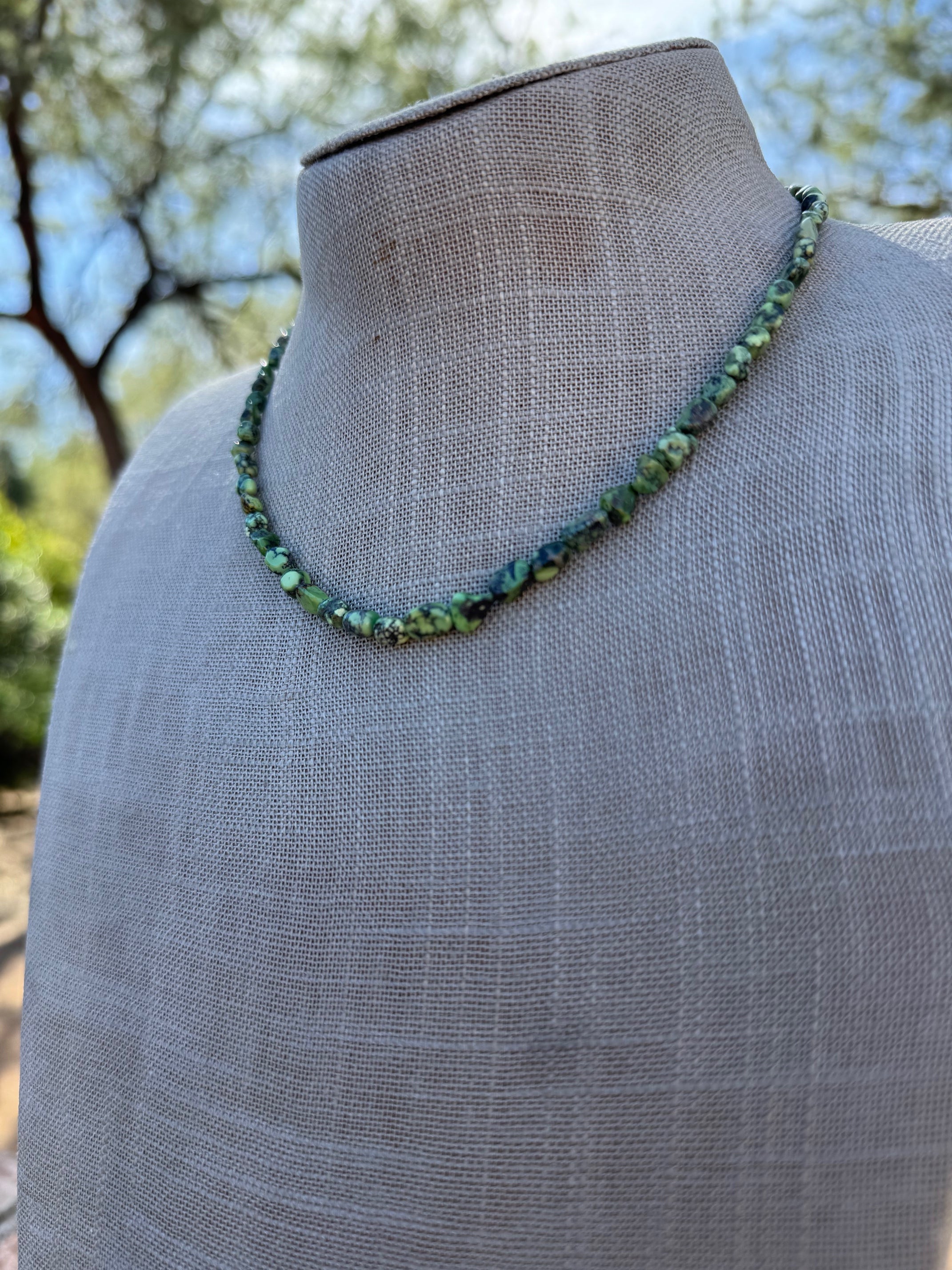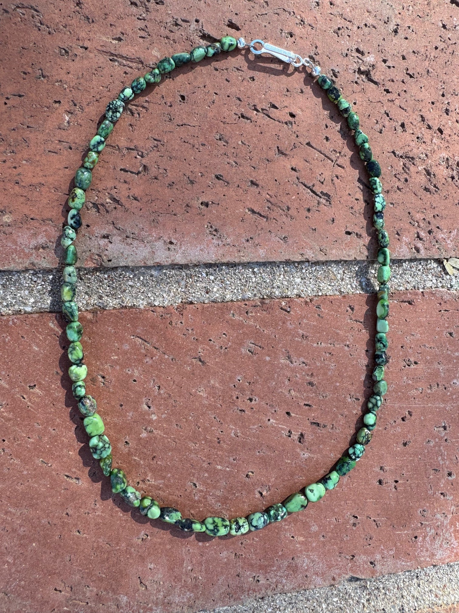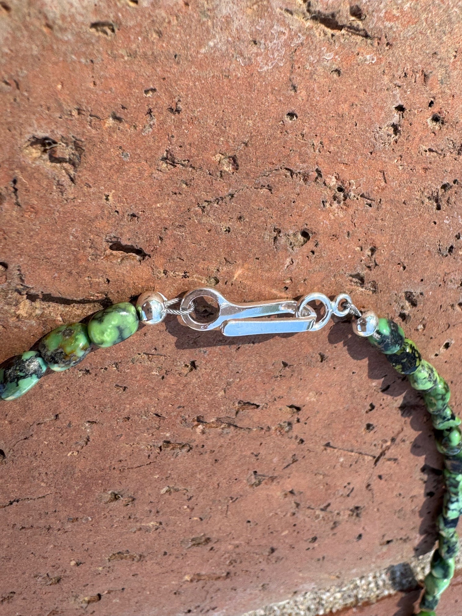 Handcrafted Hubei Turquoise & Sterling Silver Beaded Necklace 16"