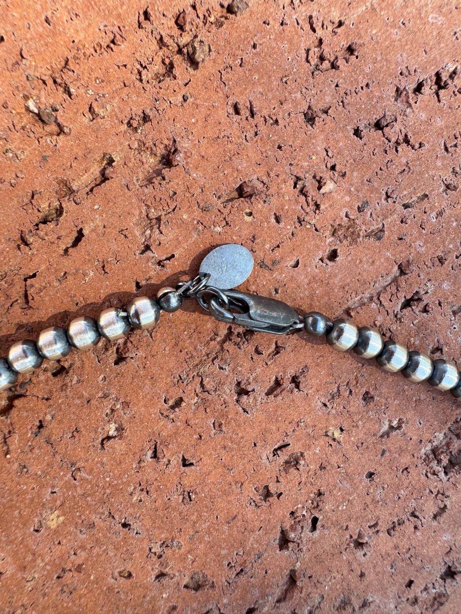 Handcrafted Kingman Turquoise & Sterling Silver 4-6mm Beaded Necklace 20"