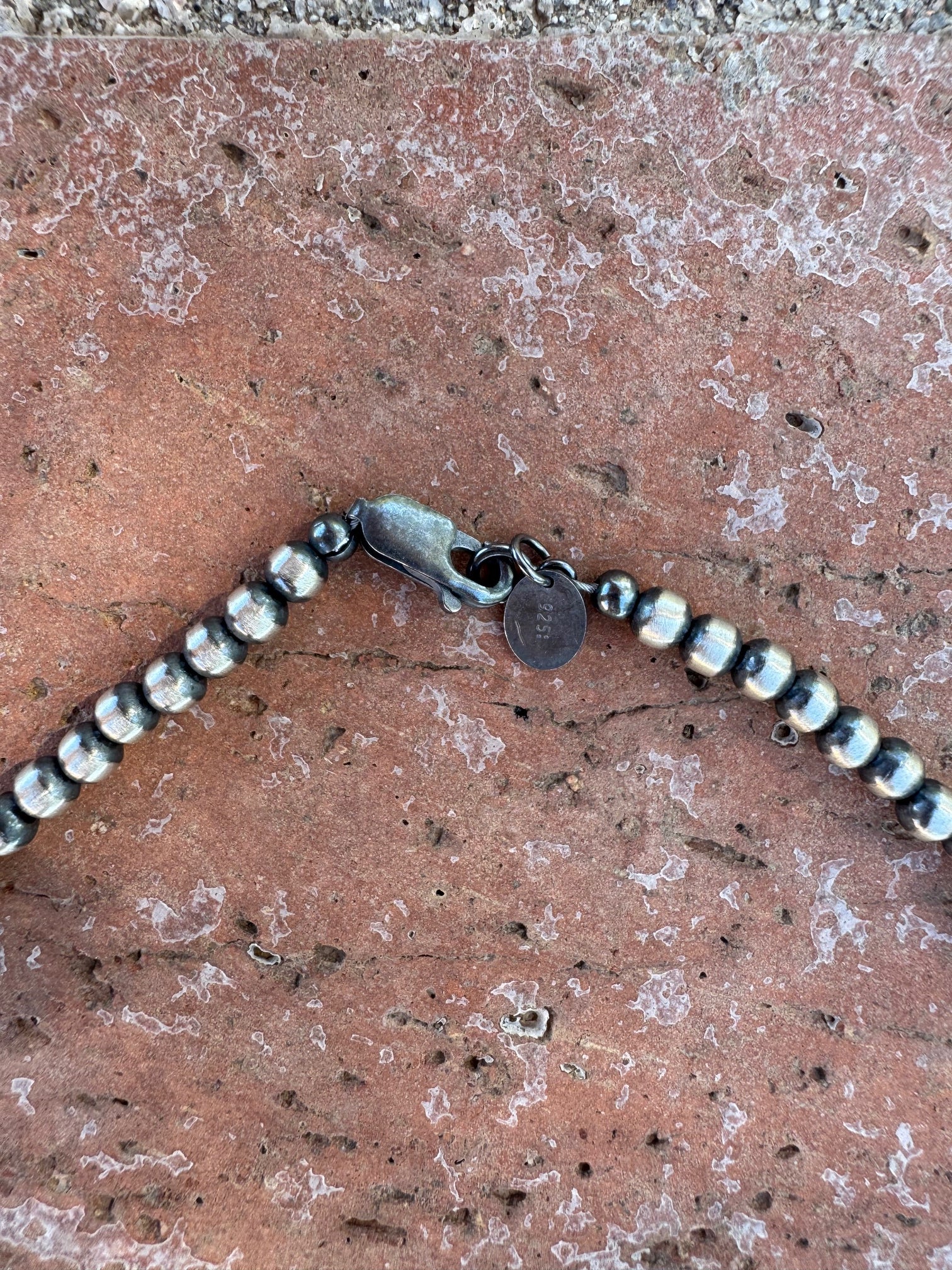 Handcrafted Kingman Turquoise & Sterling Silver 4-6mm Beaded Necklace 24"