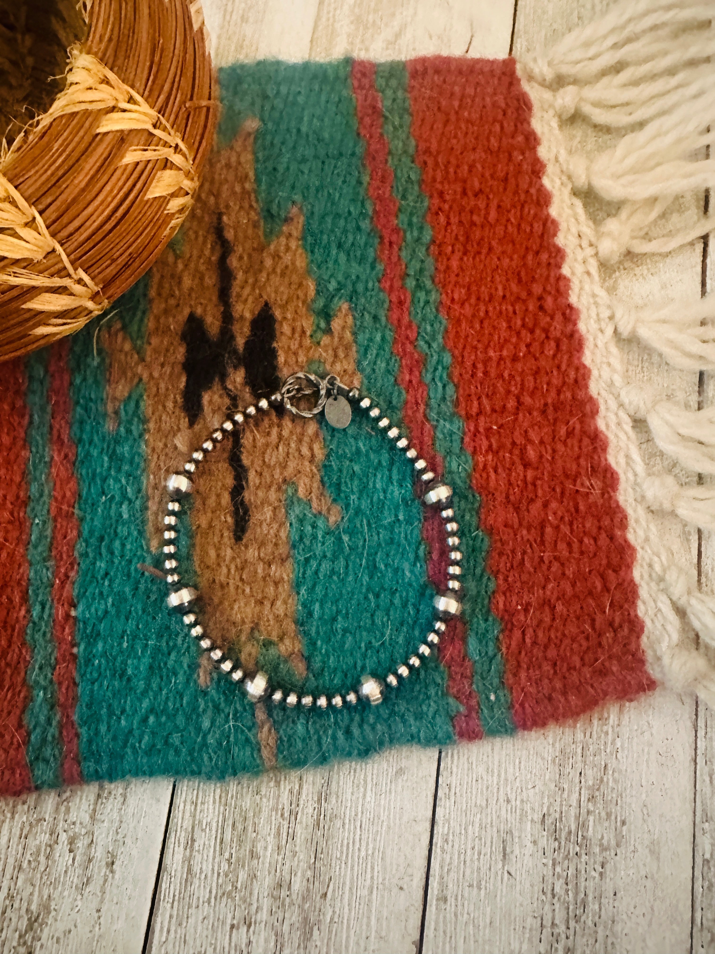 Beautiful Handcrafted Sterling Silver Pearl Beaded Bracelet. Bracelet measures 7 1/2 inches long.