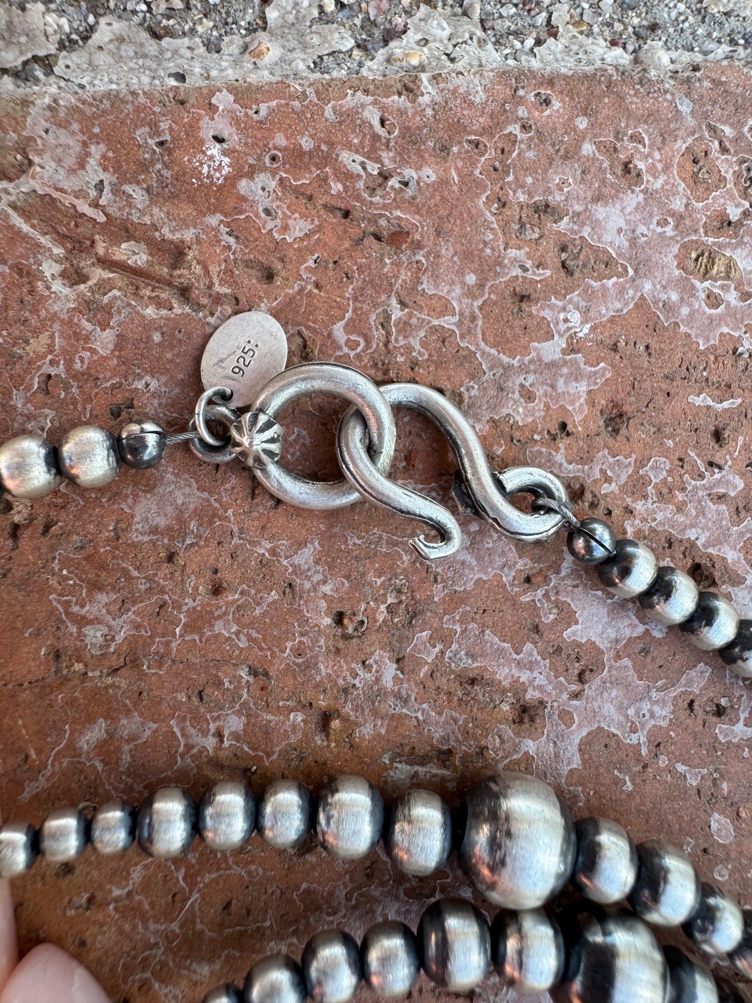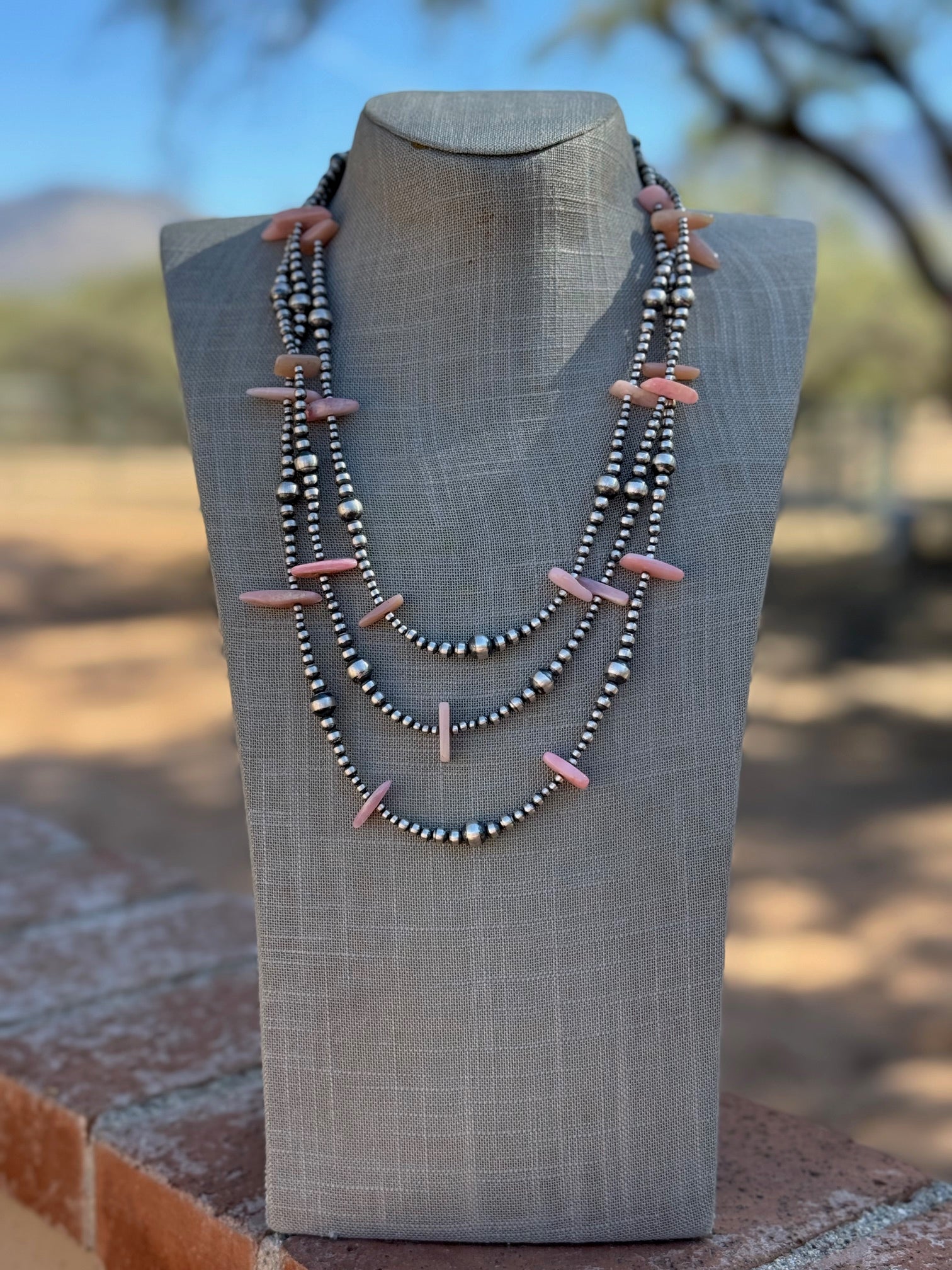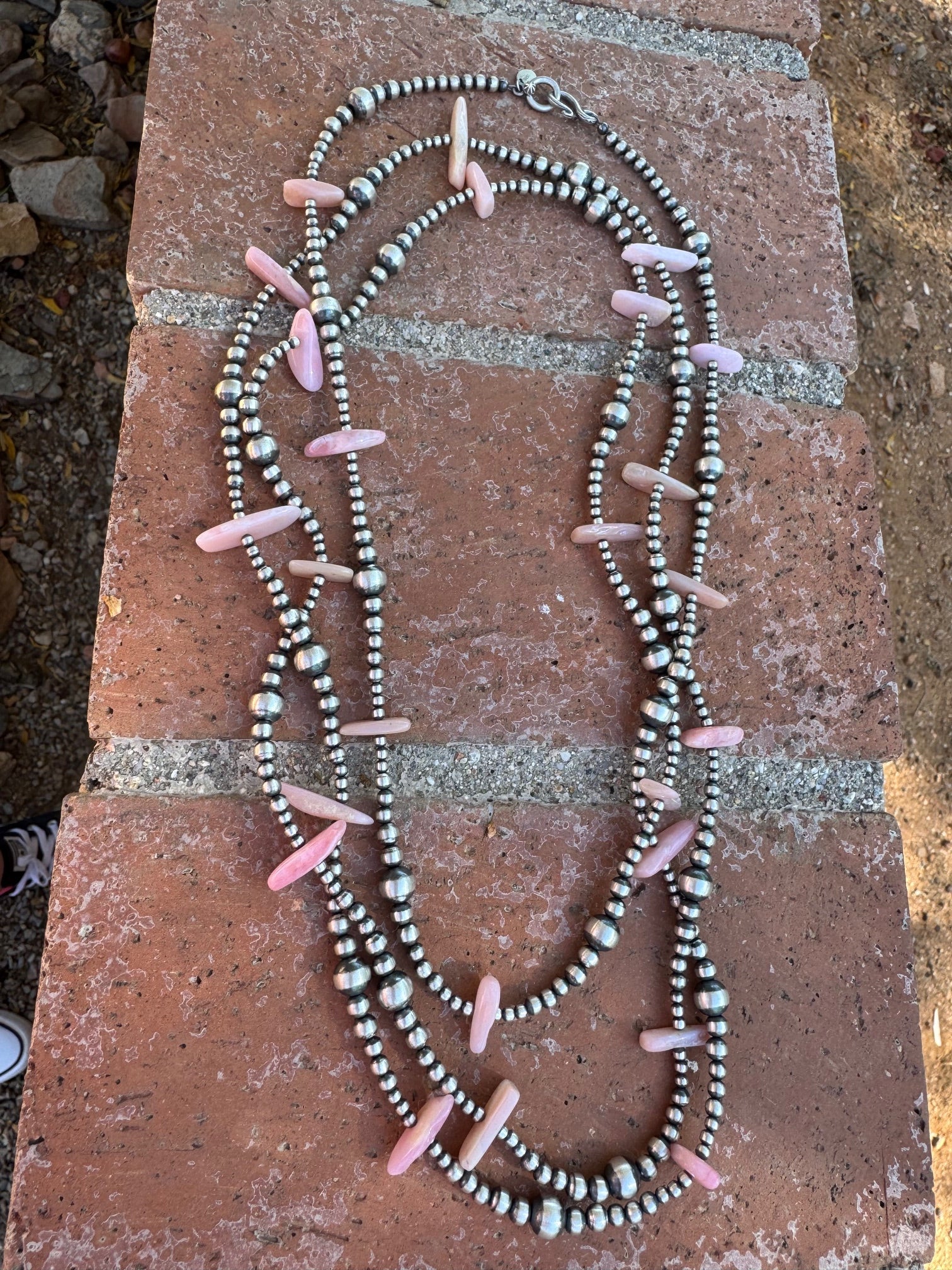 Handcrafted Sterling Silver & Pink Conch 3-8mm beaded Necklace 72"