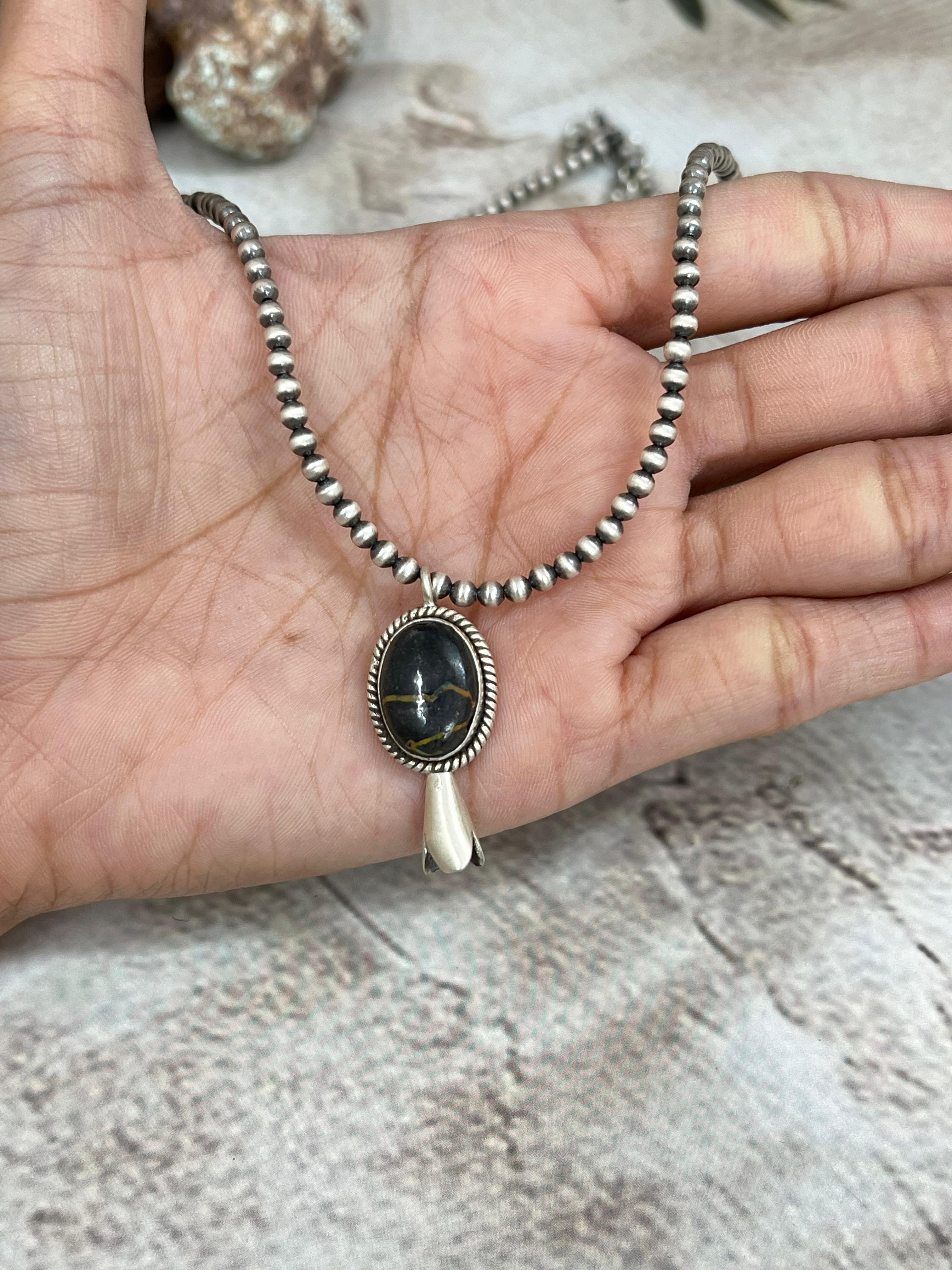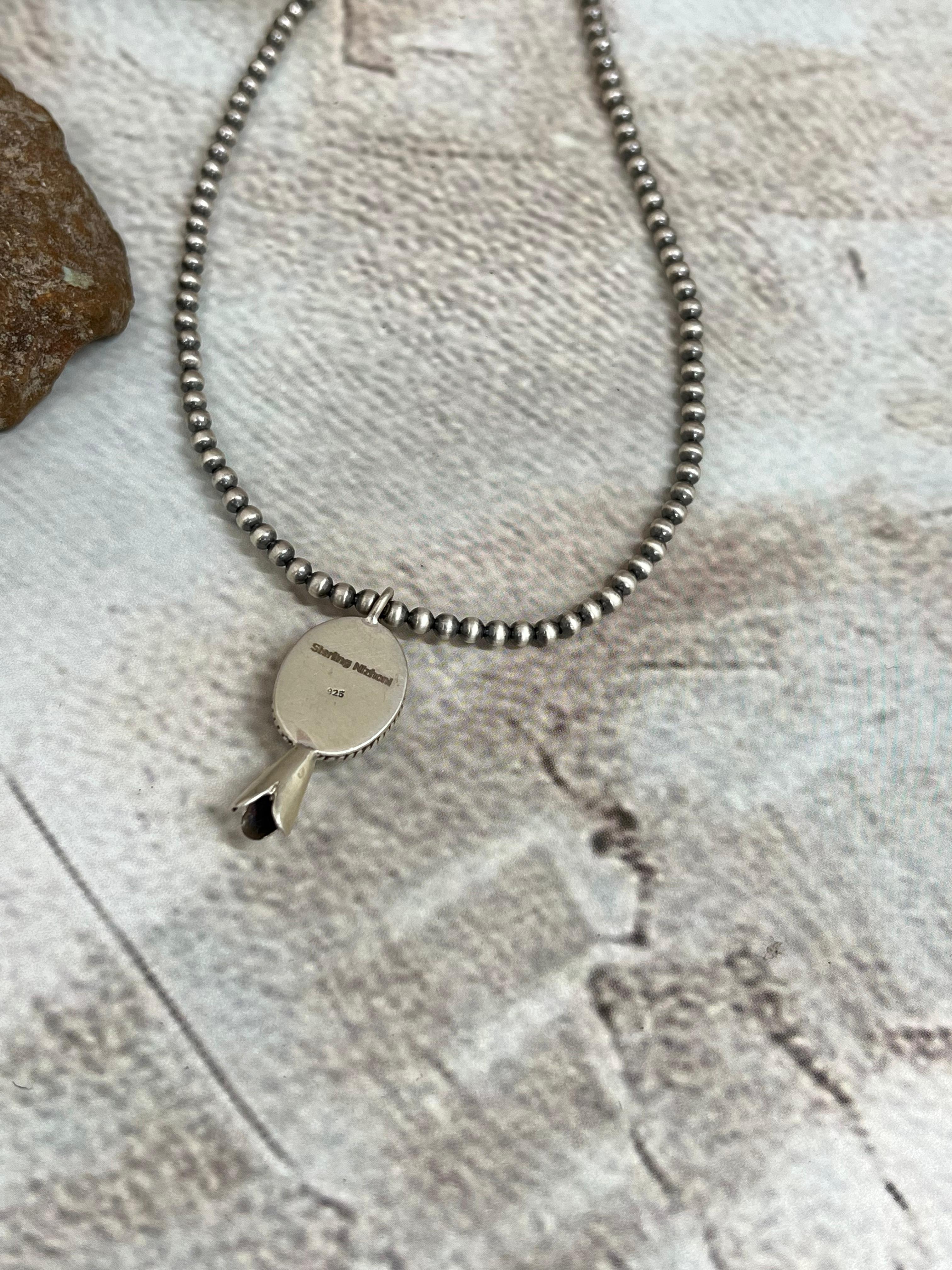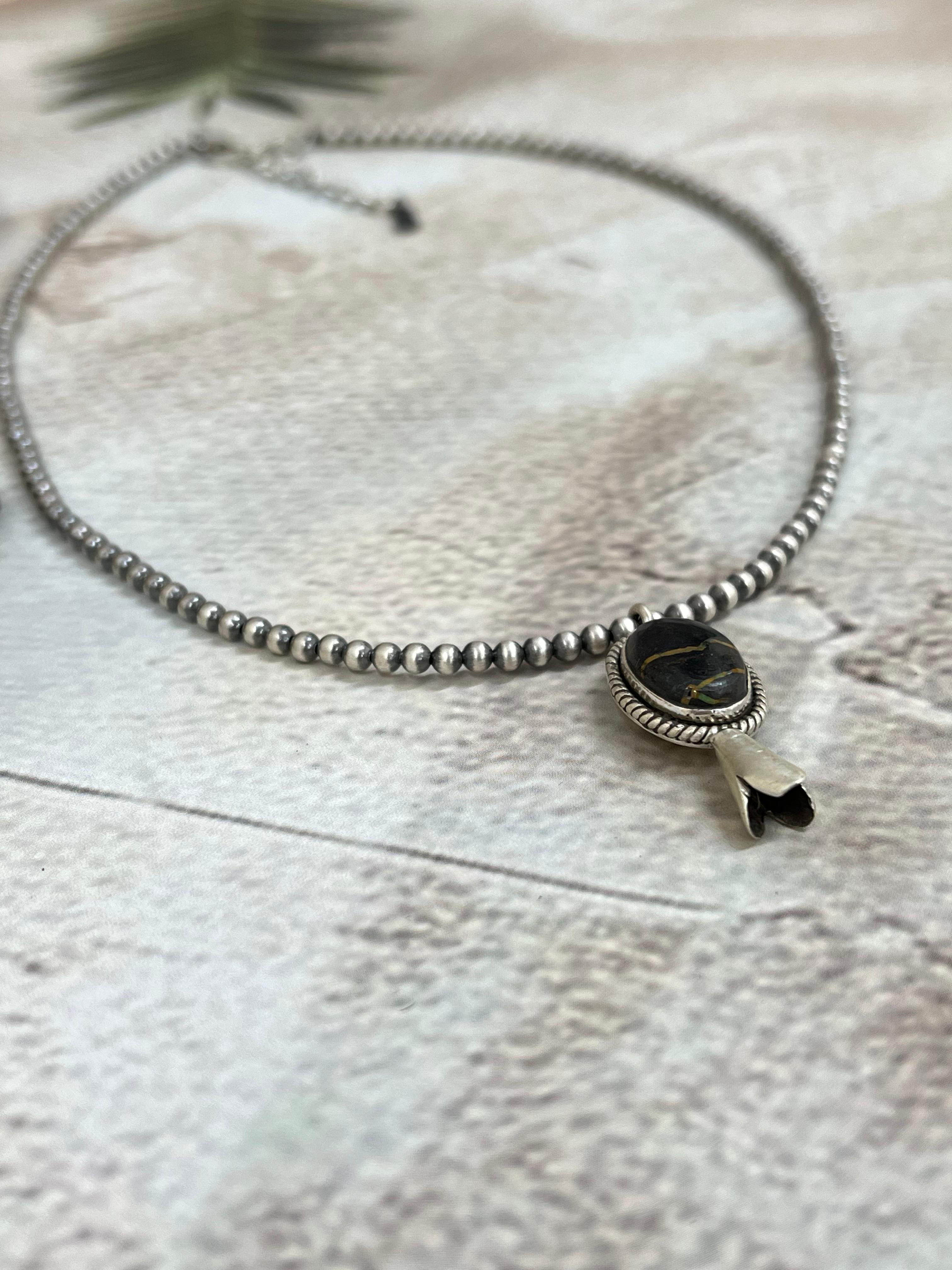 Handmade Sterling Silver Beaded Blackjack Turquoise Blossom Necklace Signed Nizhoni