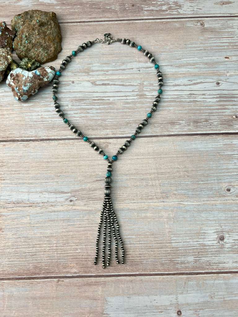 Handmade Sterling Silver Beaded Kingman Turquoise Necklace "Signed Nizhoni"