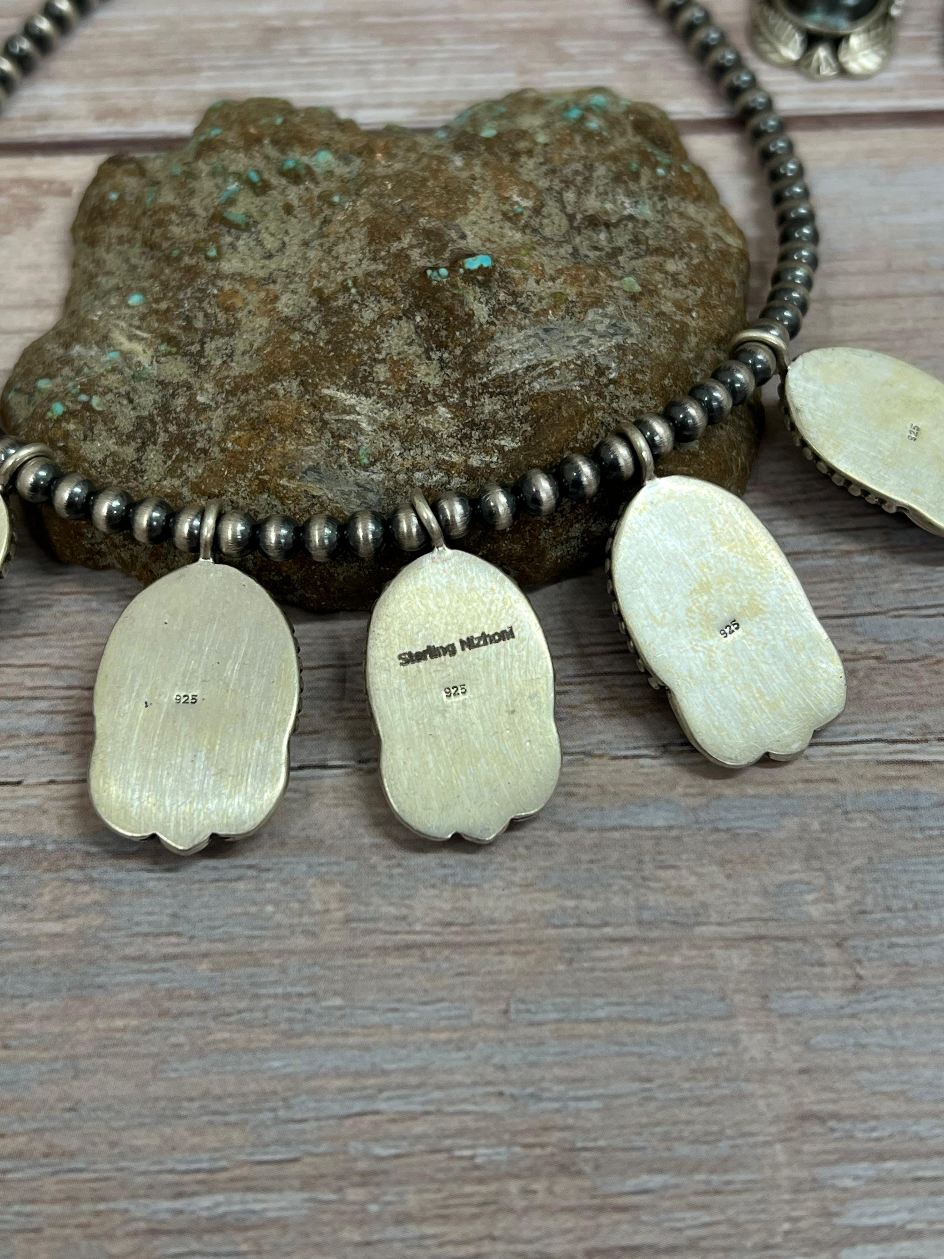 Handmade Sterling Silver Blackjack Turquoise Beaded Necklace with Signed Nizhoni