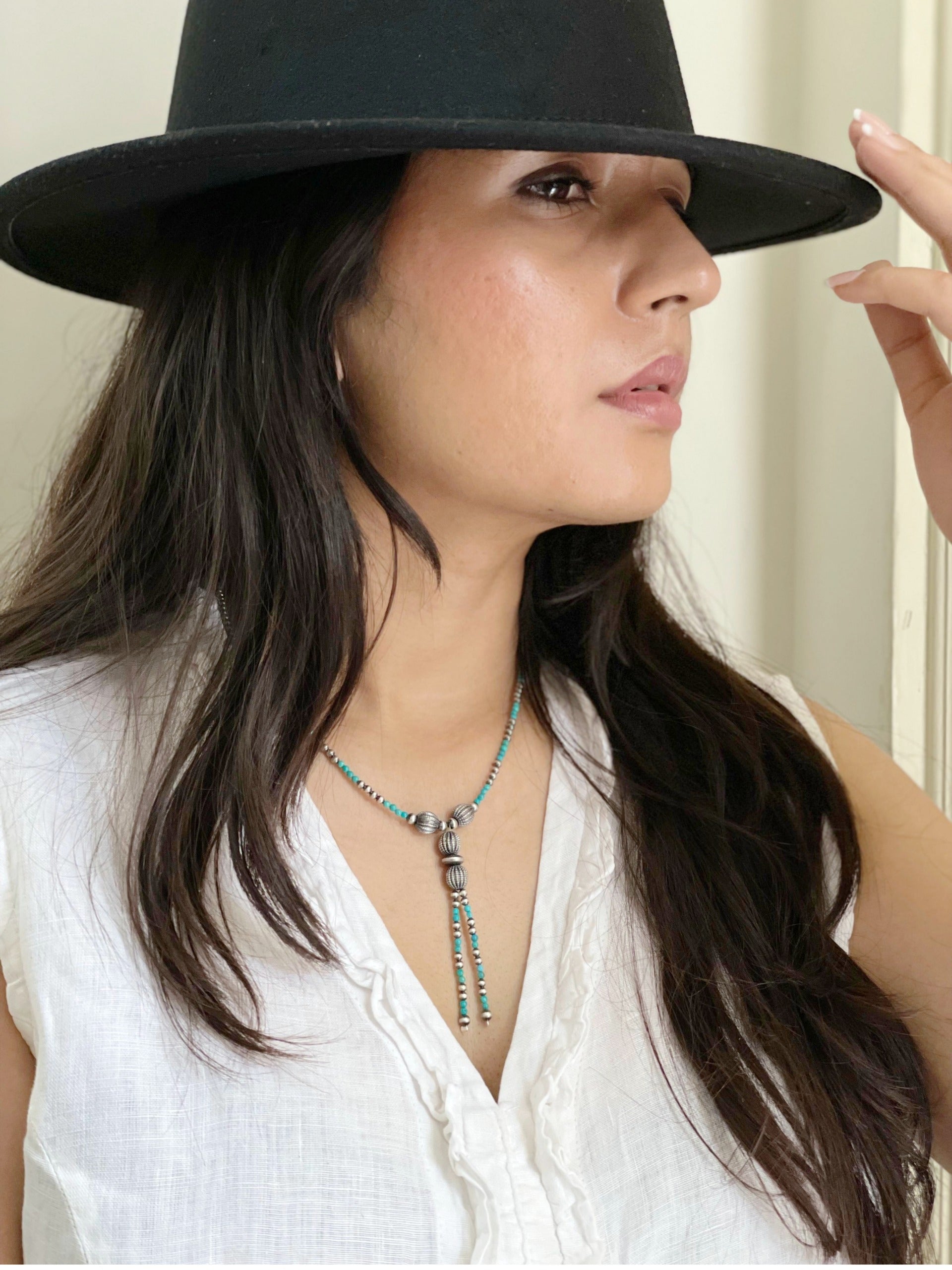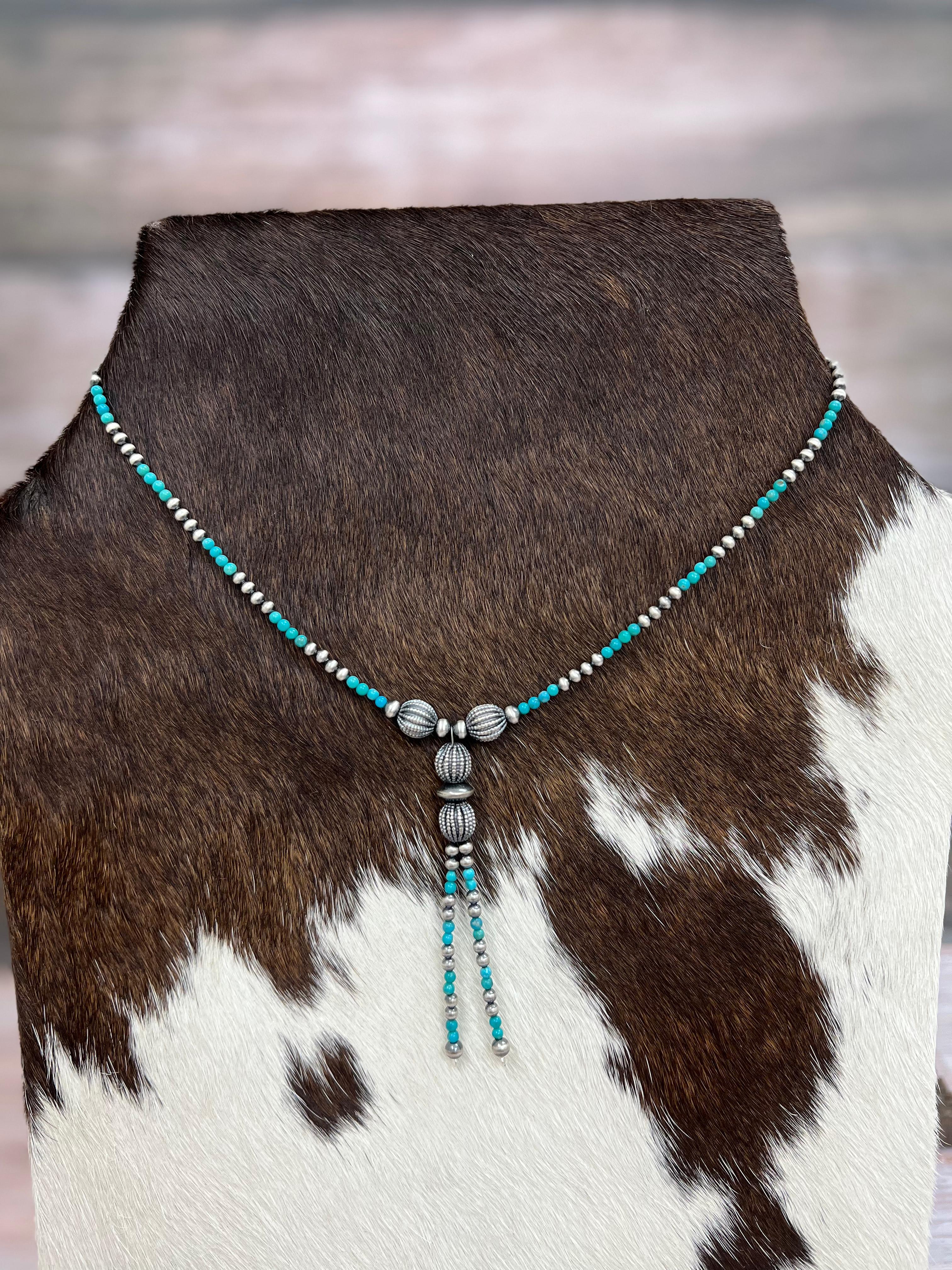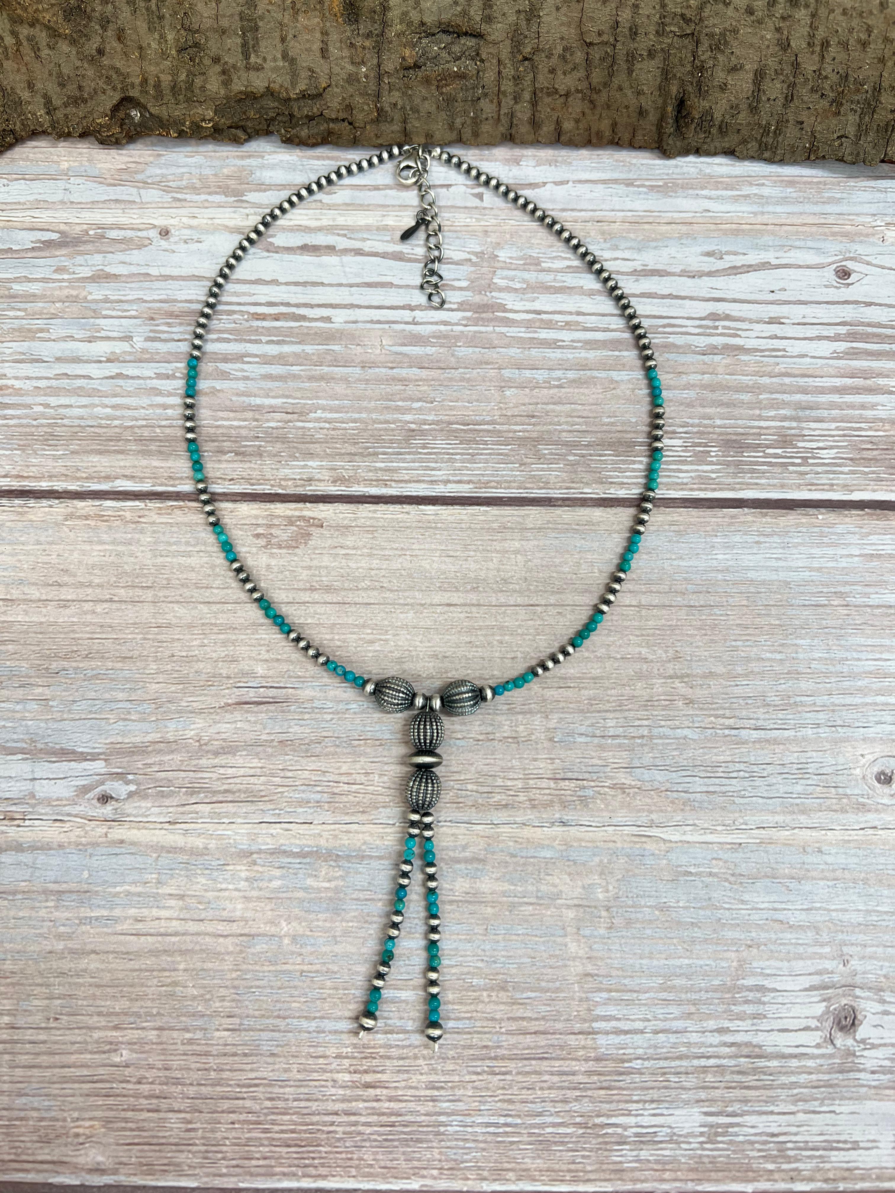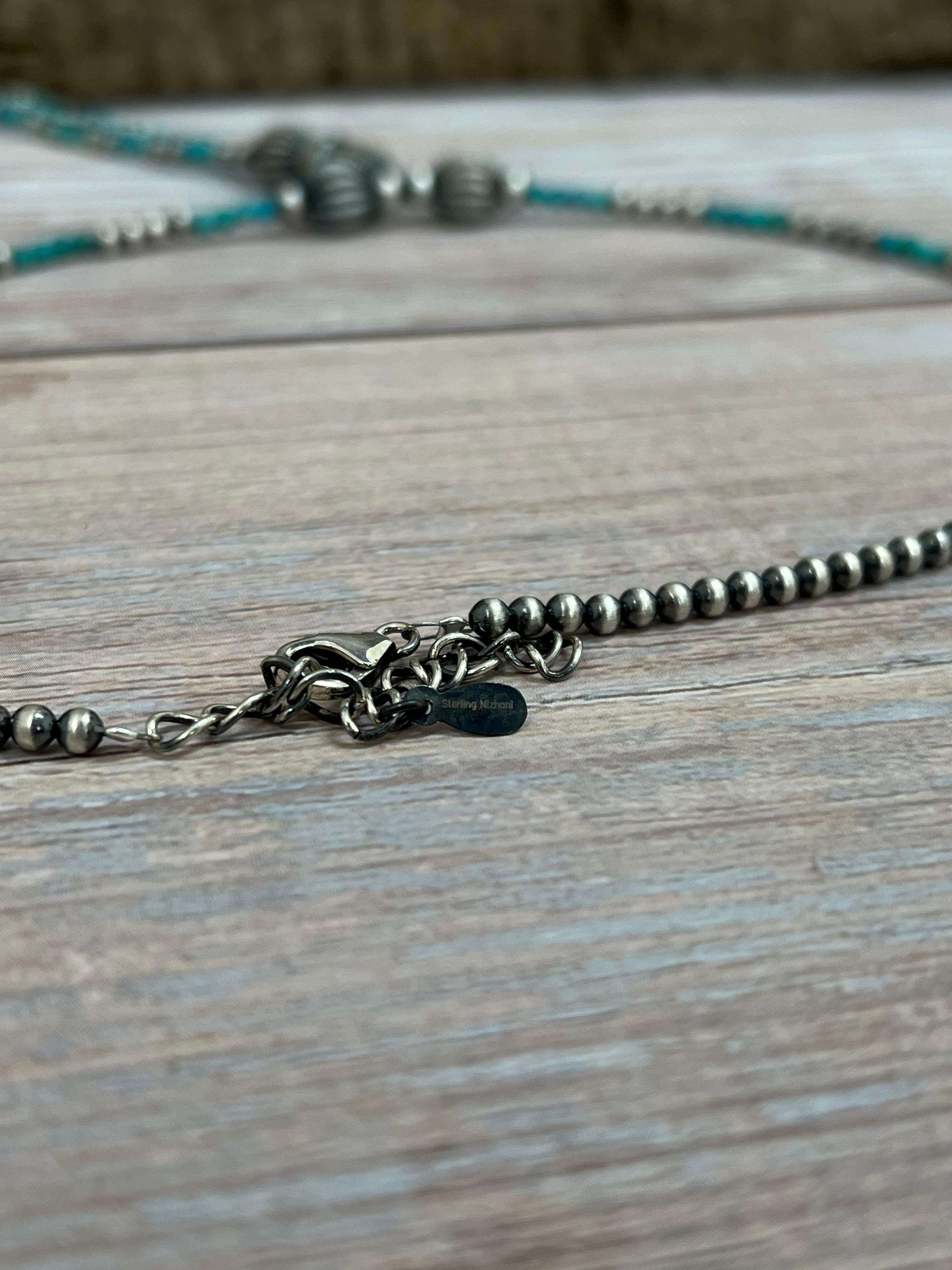 Handmade Sterling Silver Kingman Turquoise Beaded Necklace with Signed Nizhoni