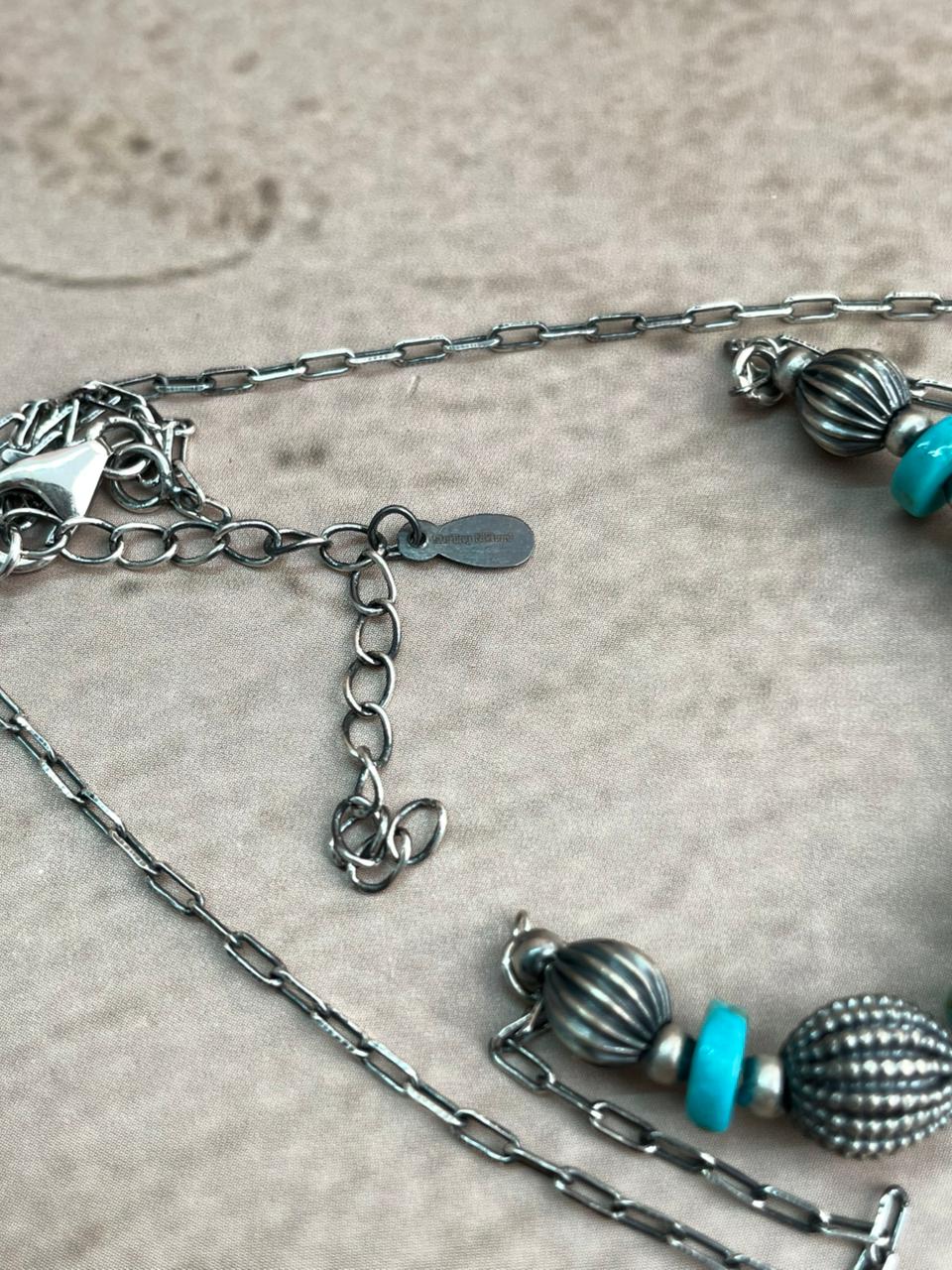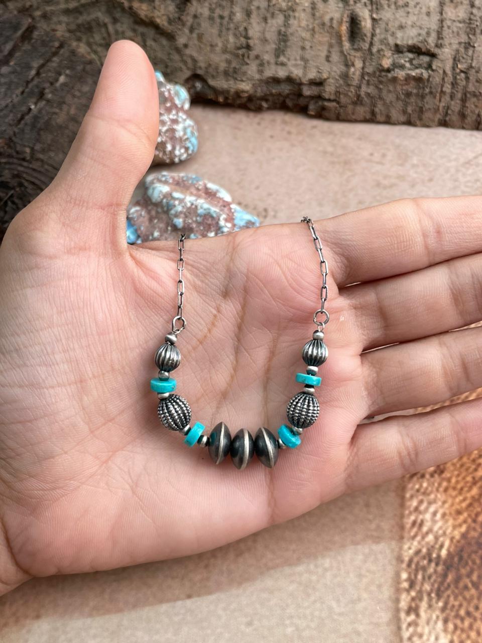 Handmade Sterling Silver Kingman Turquoise Beaded Necklace t ok with Signed Nizhoni
