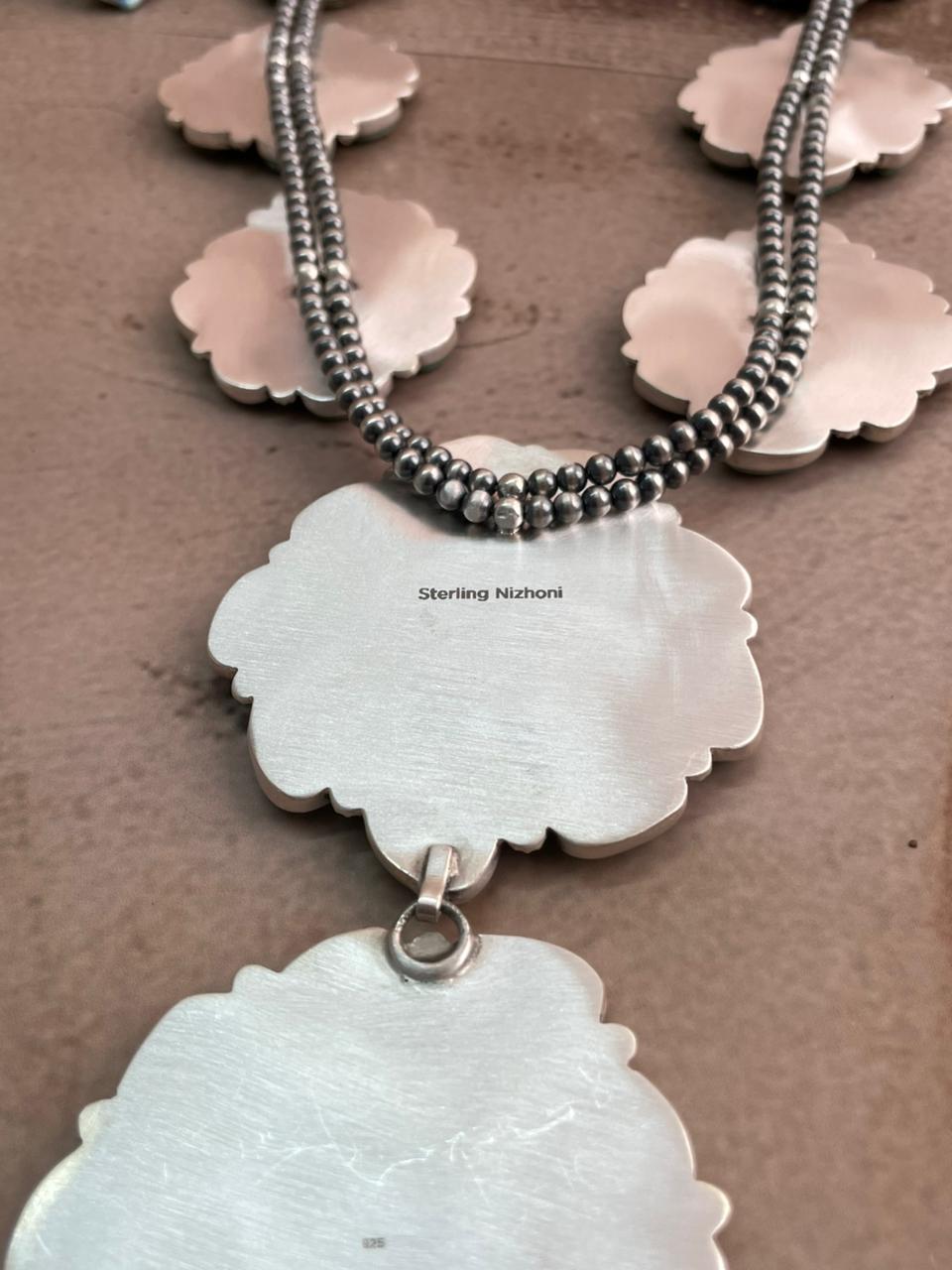 Handmade Sterling Silver Mantis Turquoise Beaded Necklace with Signed Nizhoni