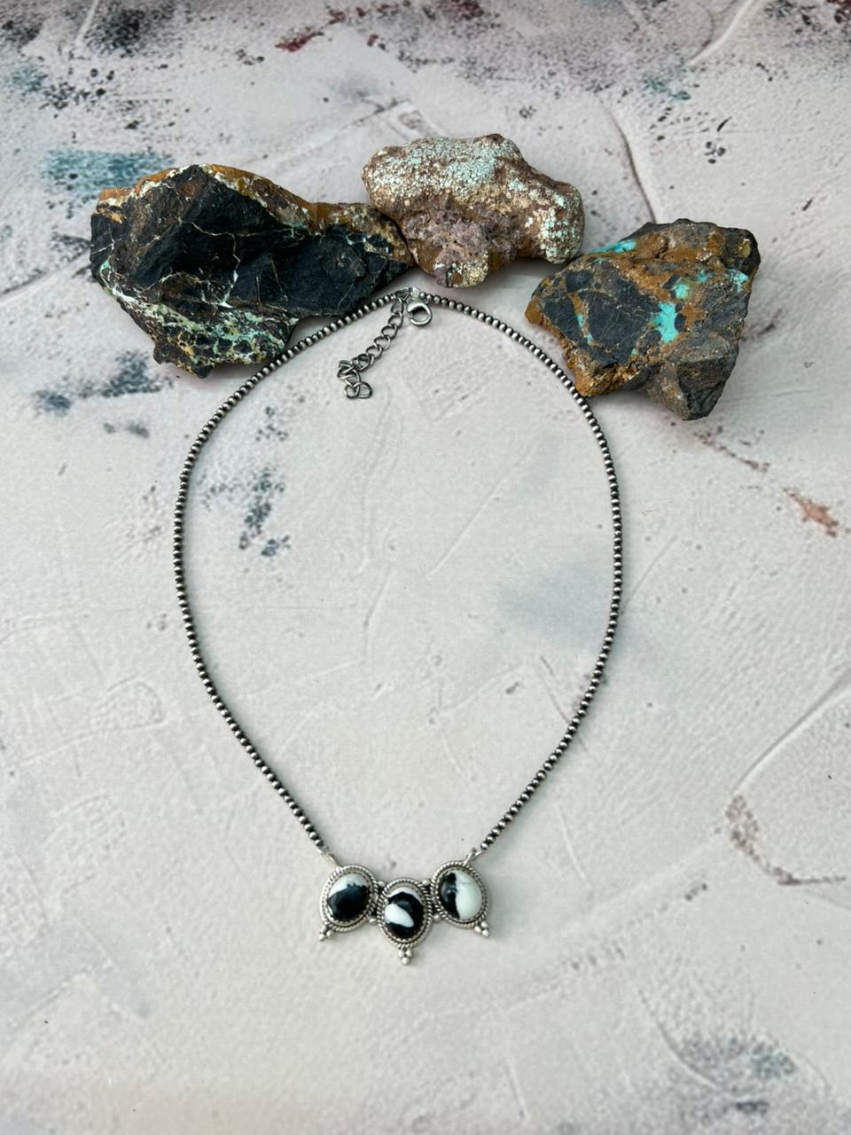 Such gorgeous craftsmanship! Sterling Silver White Buffalo Beaded Necklace Measures Length 16+2" Extension, Width 1 6/8" and the Bead measures 2mm.