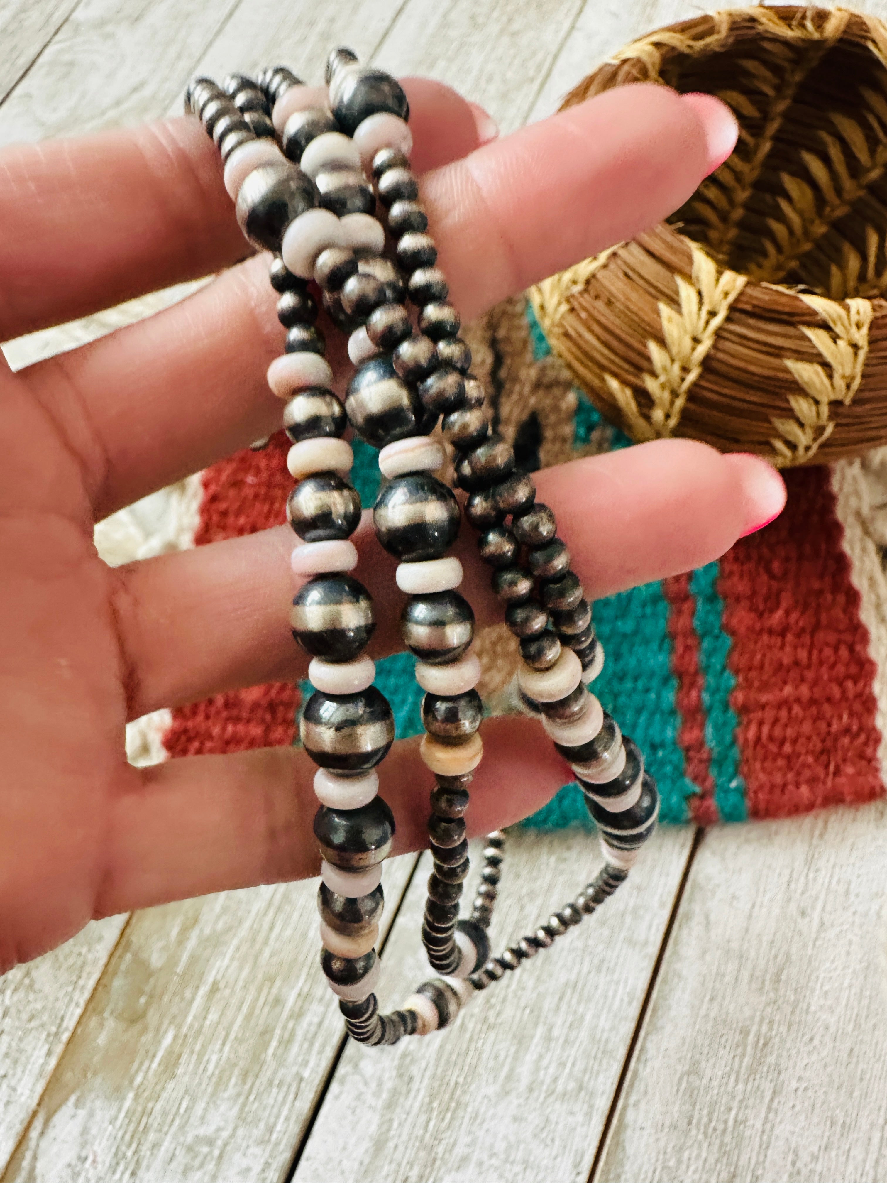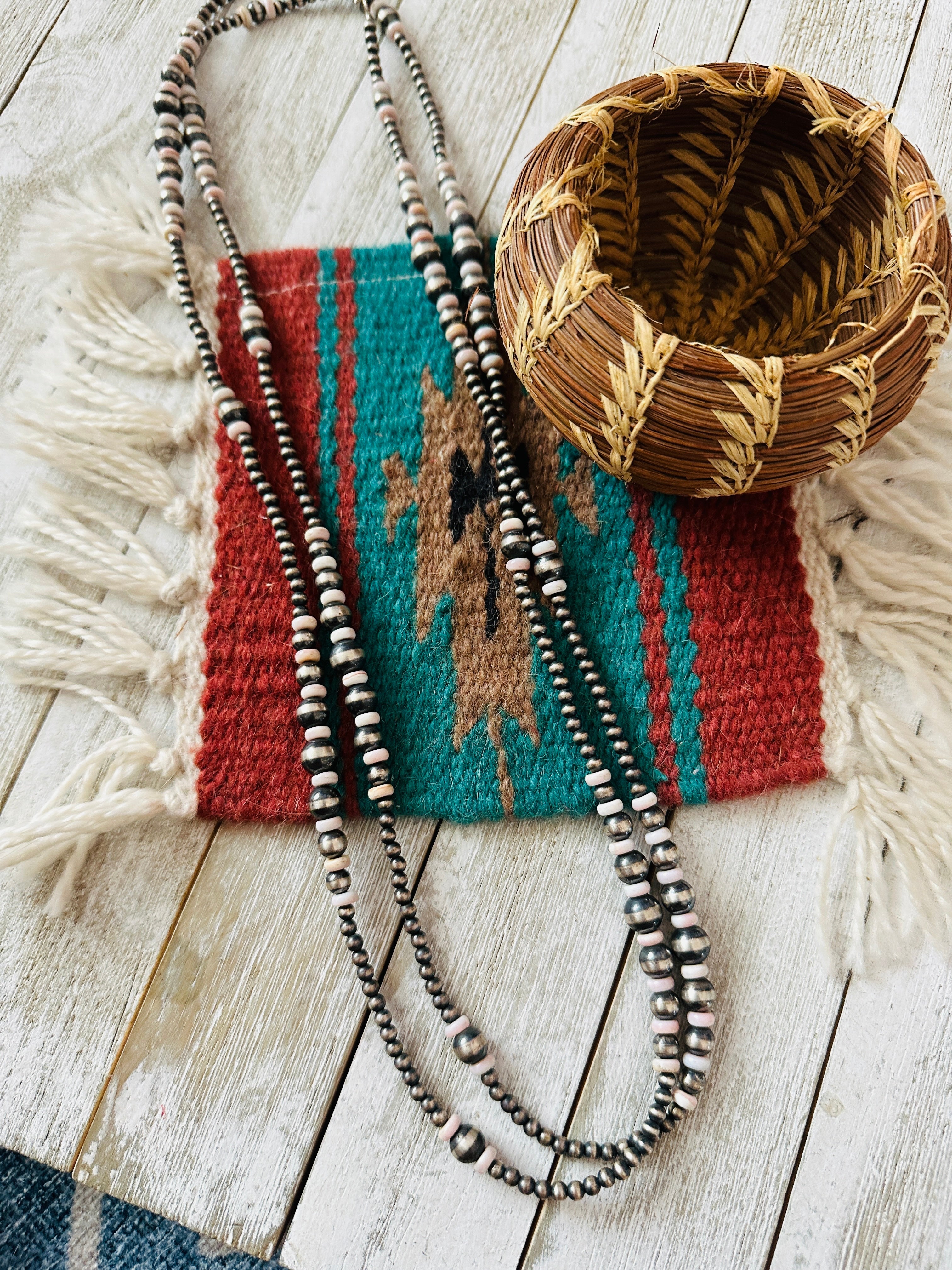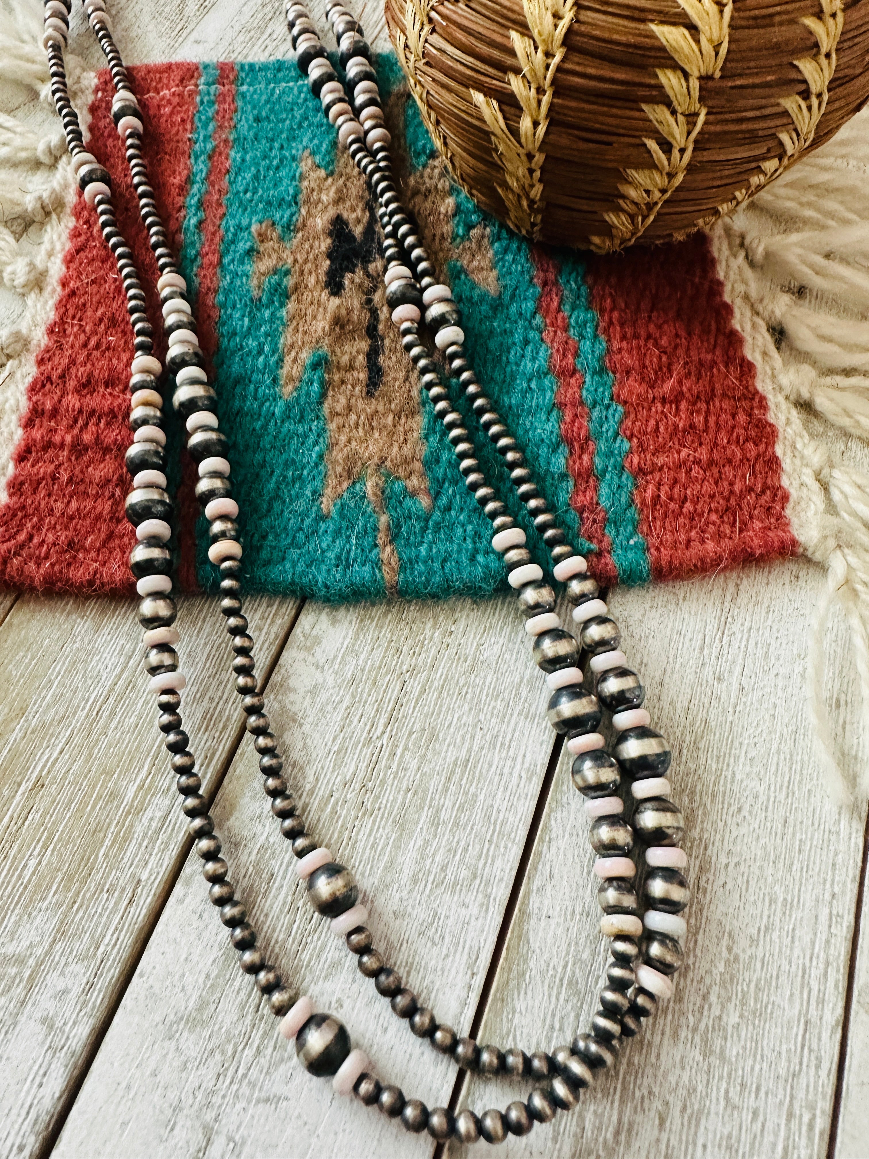 Navajo Sterling Silver Pearl & Queen Pink Conch 60” Beaded Necklace