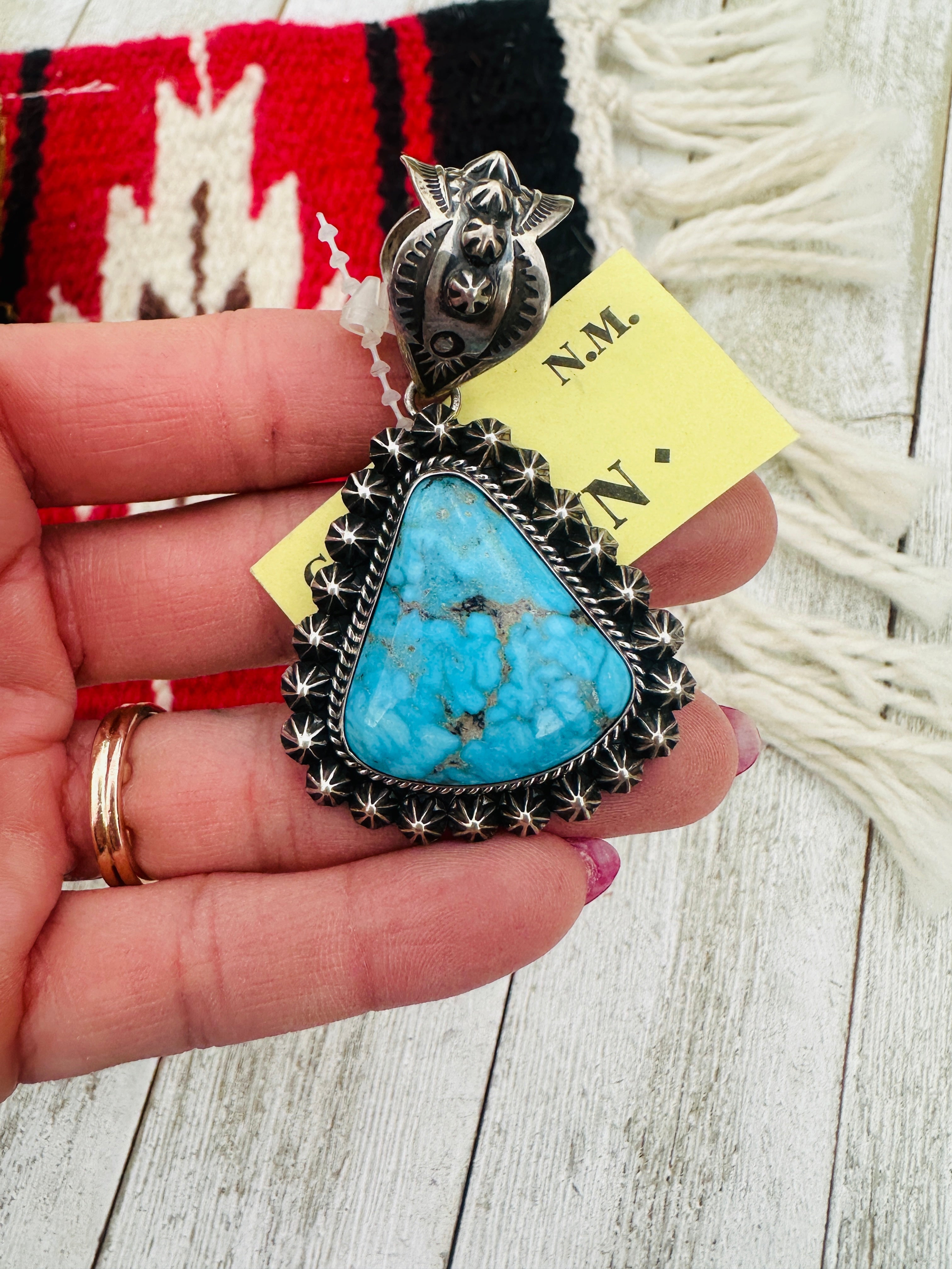 Old Pawn Handcrafted Sterling Silver and Kingman Turquoise Pendant by Happy Piasso