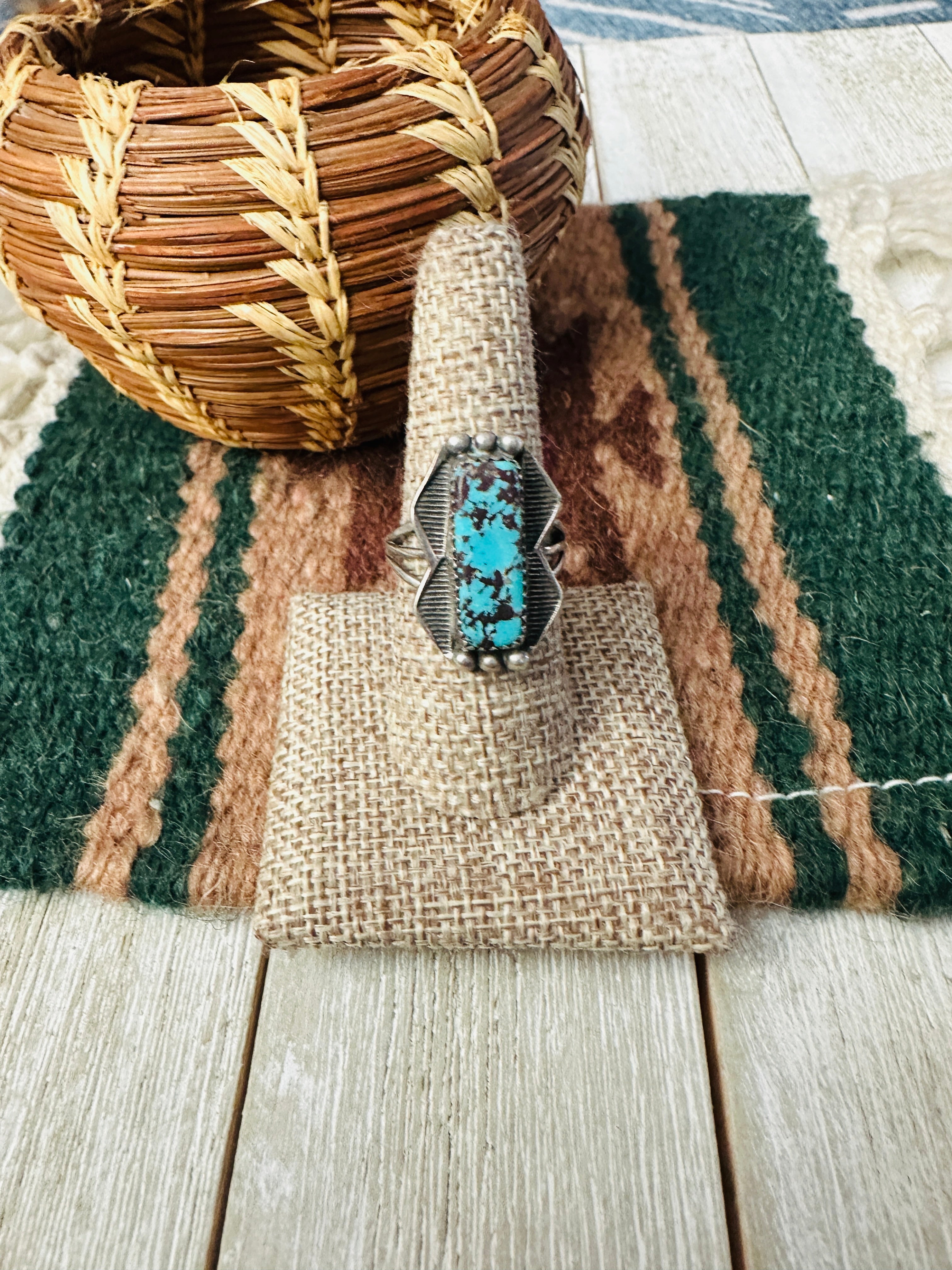Old Pawn Handcrafted Turquoise & Sterling Silver Ring Size 9