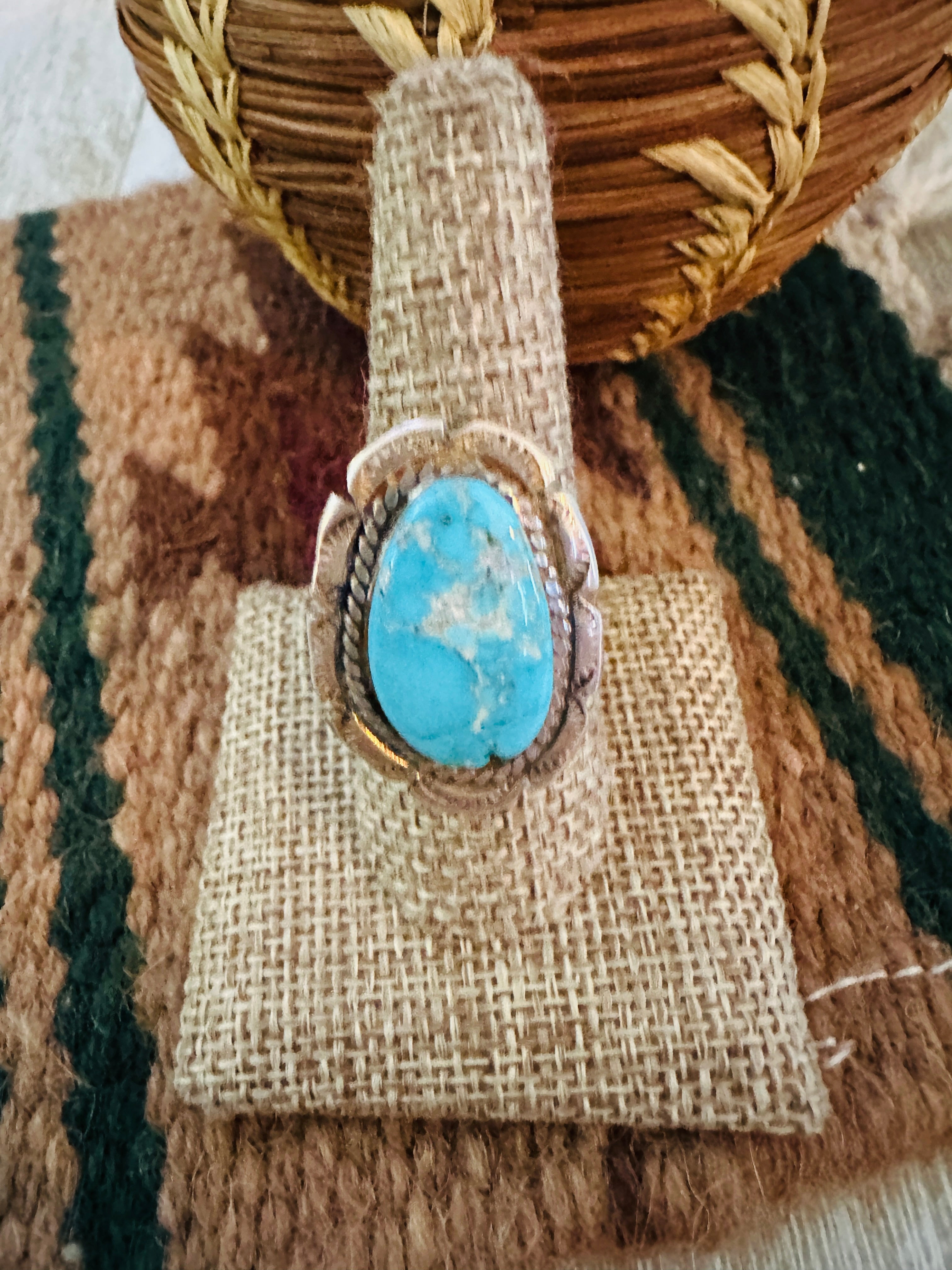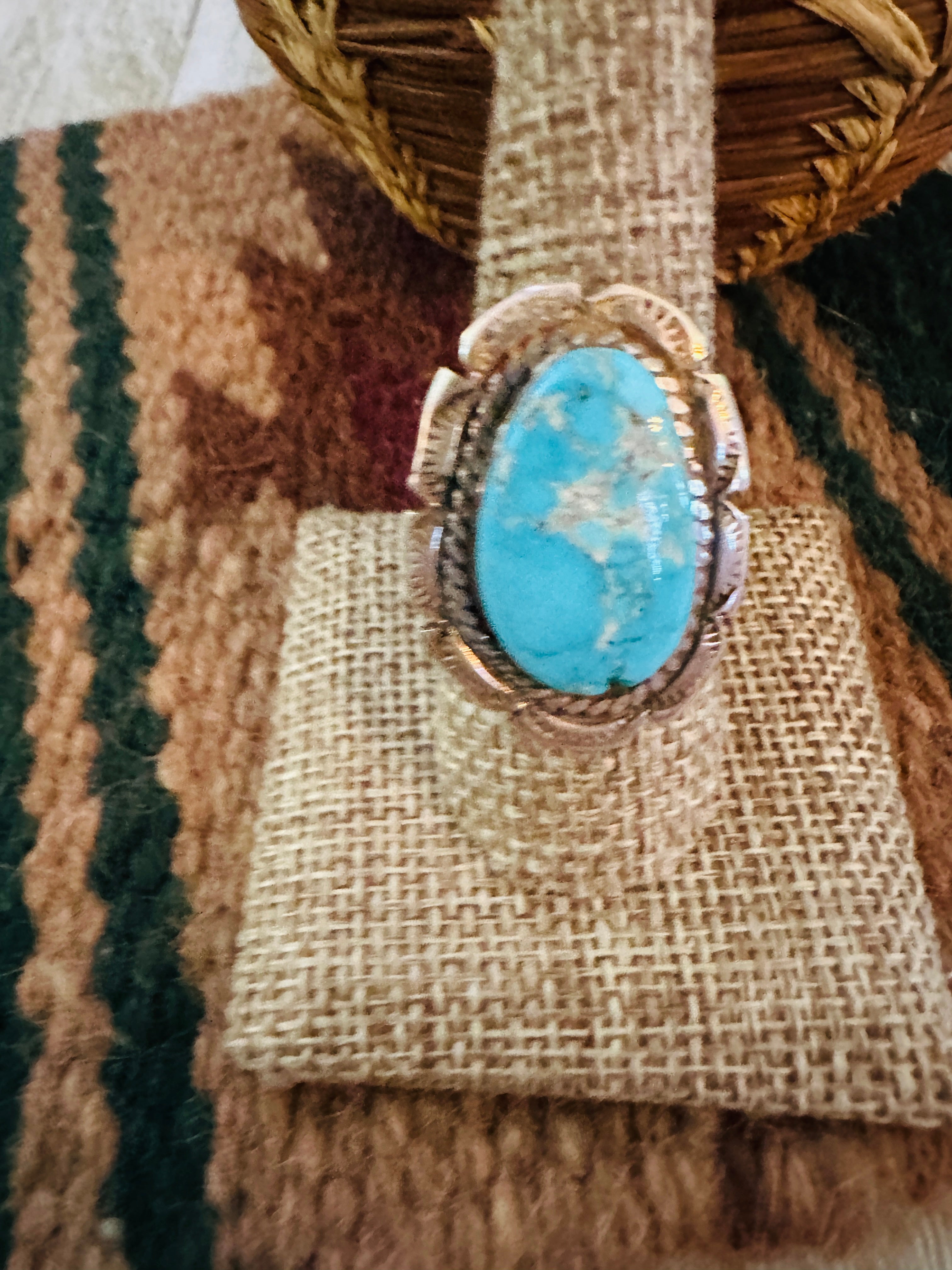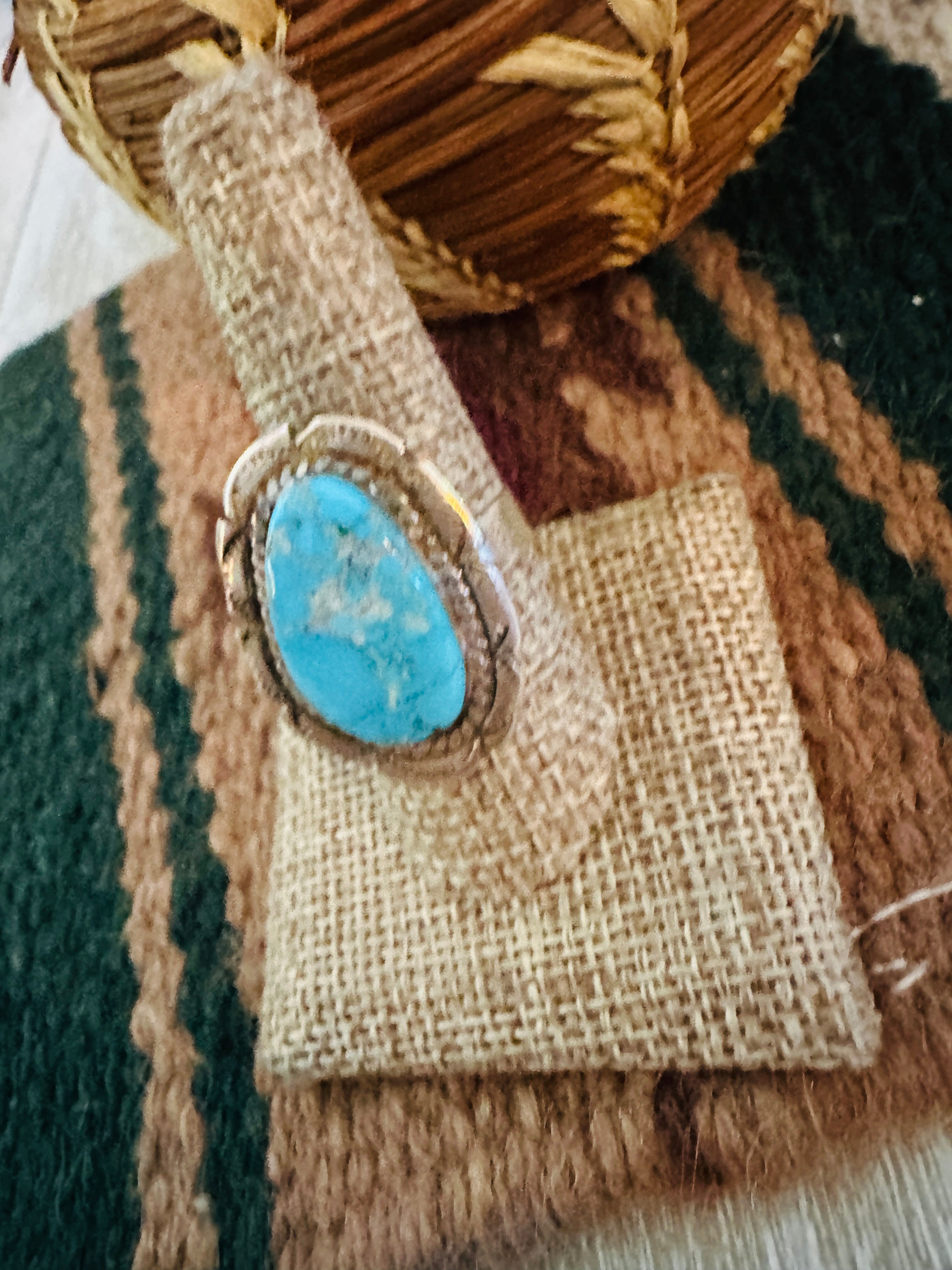 Old Pawn Handcrafted Turquoise & Sterling Silver Ring Size 9.75