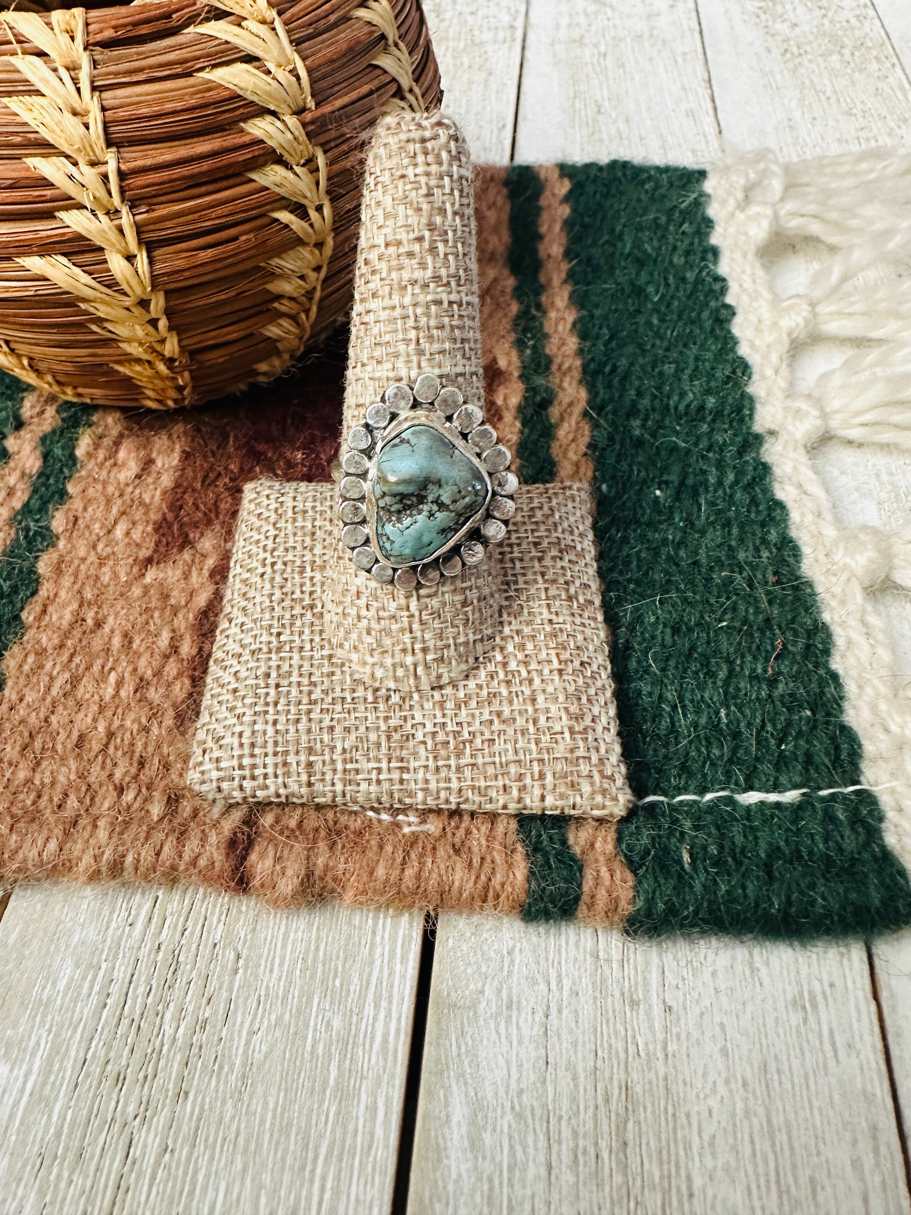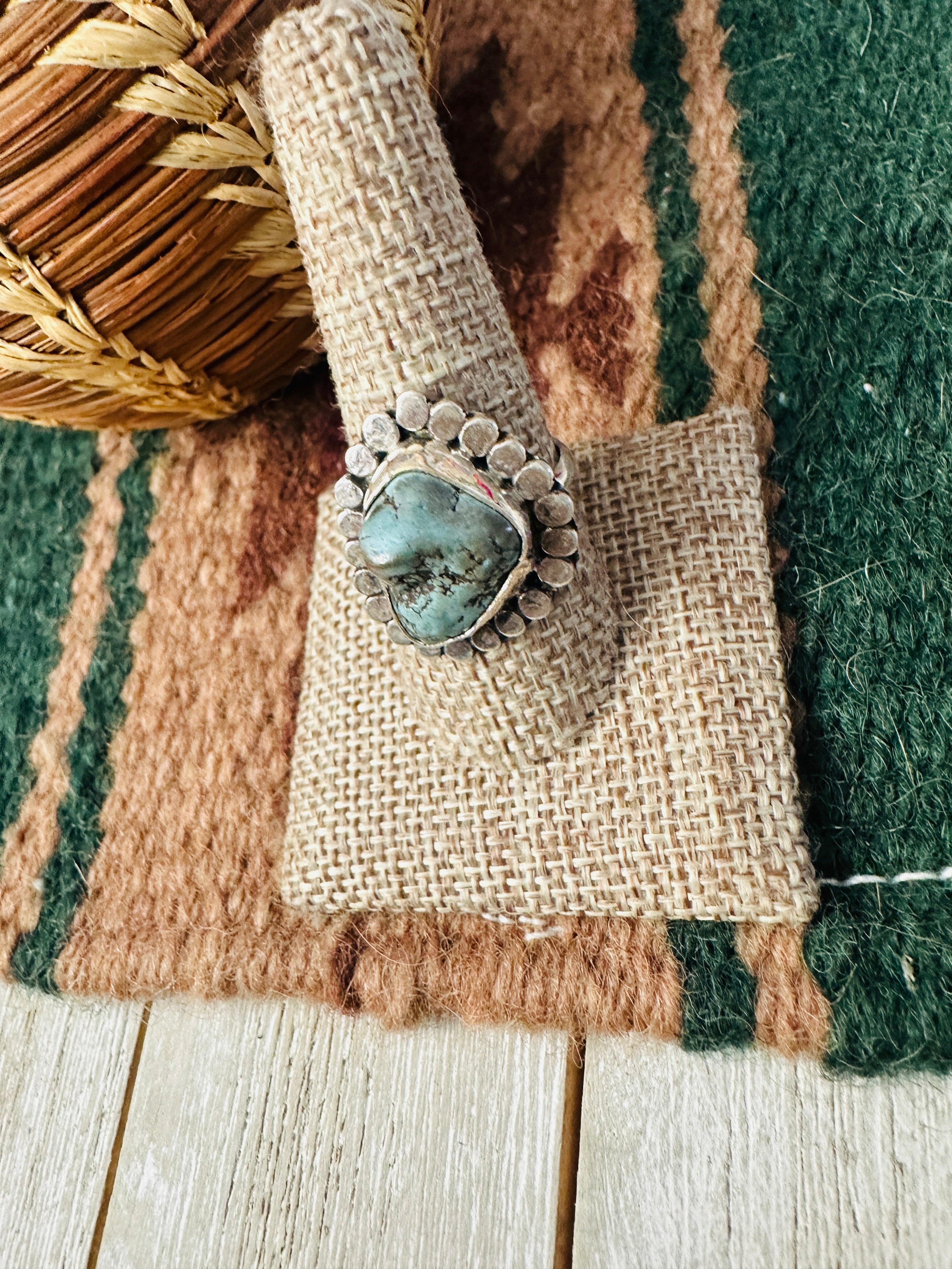 Old Pawn Handcrafted Turquoise & Sterling Silver Ring Size 9 by Gilbert Nez
