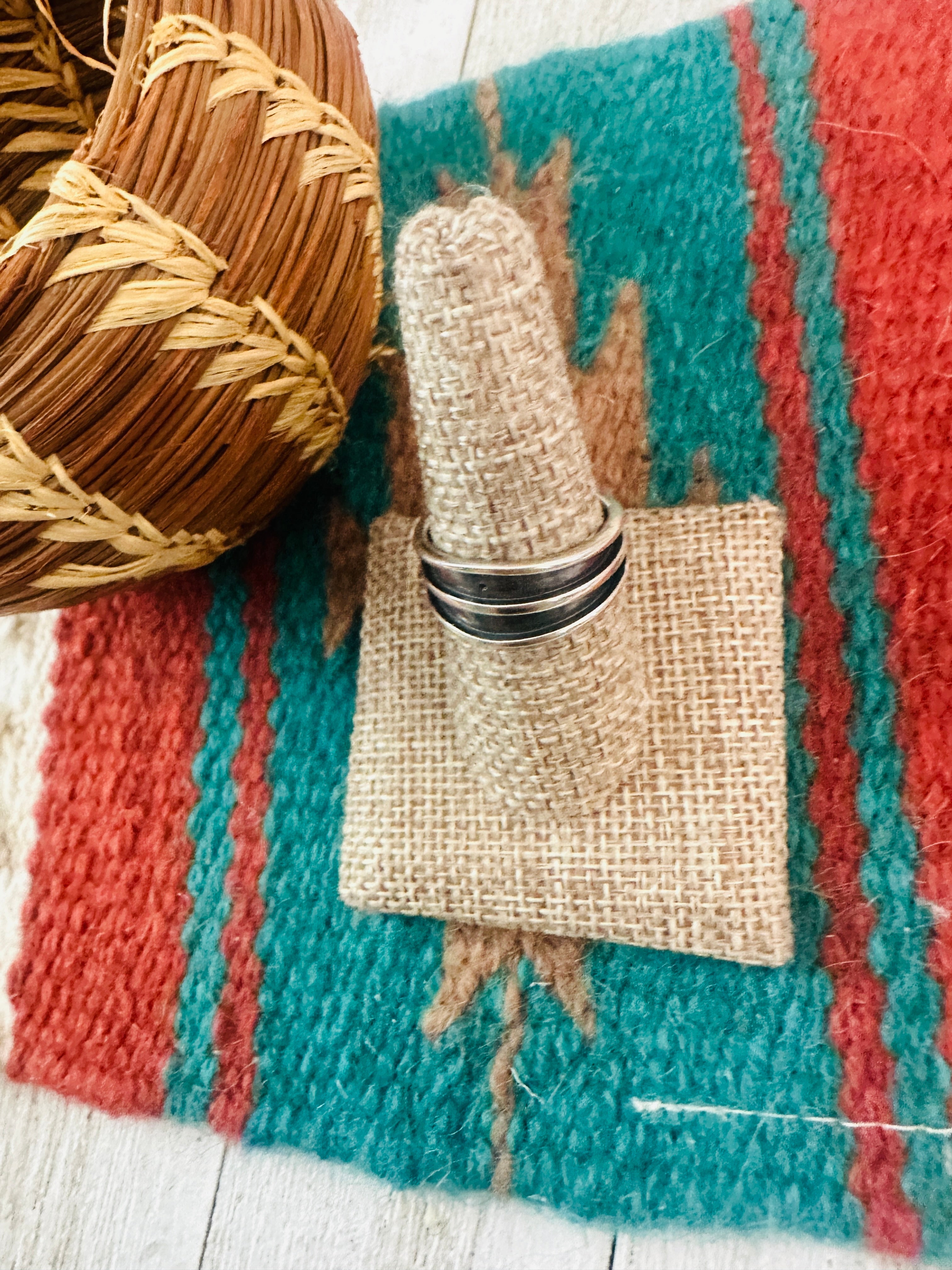 Beautiful Old Pawn Sterling Silver Band Ring. Excellent vintage condition! Measures 3/8 of an inch wide. Signed by the artist and stamped Sterling. Great ring!