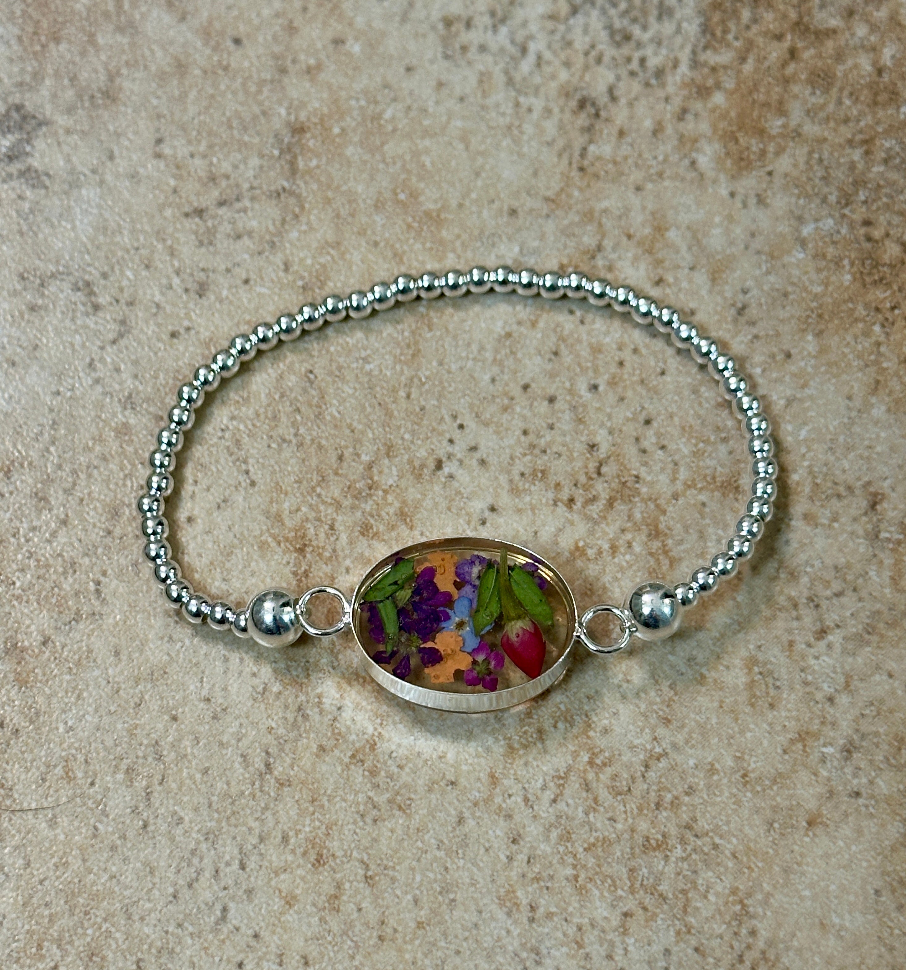 A beautiful addition to our Primavera line! This bracelet is easy to wear, and looks beautiful stacked with other silver or colorful beaded bracelets!