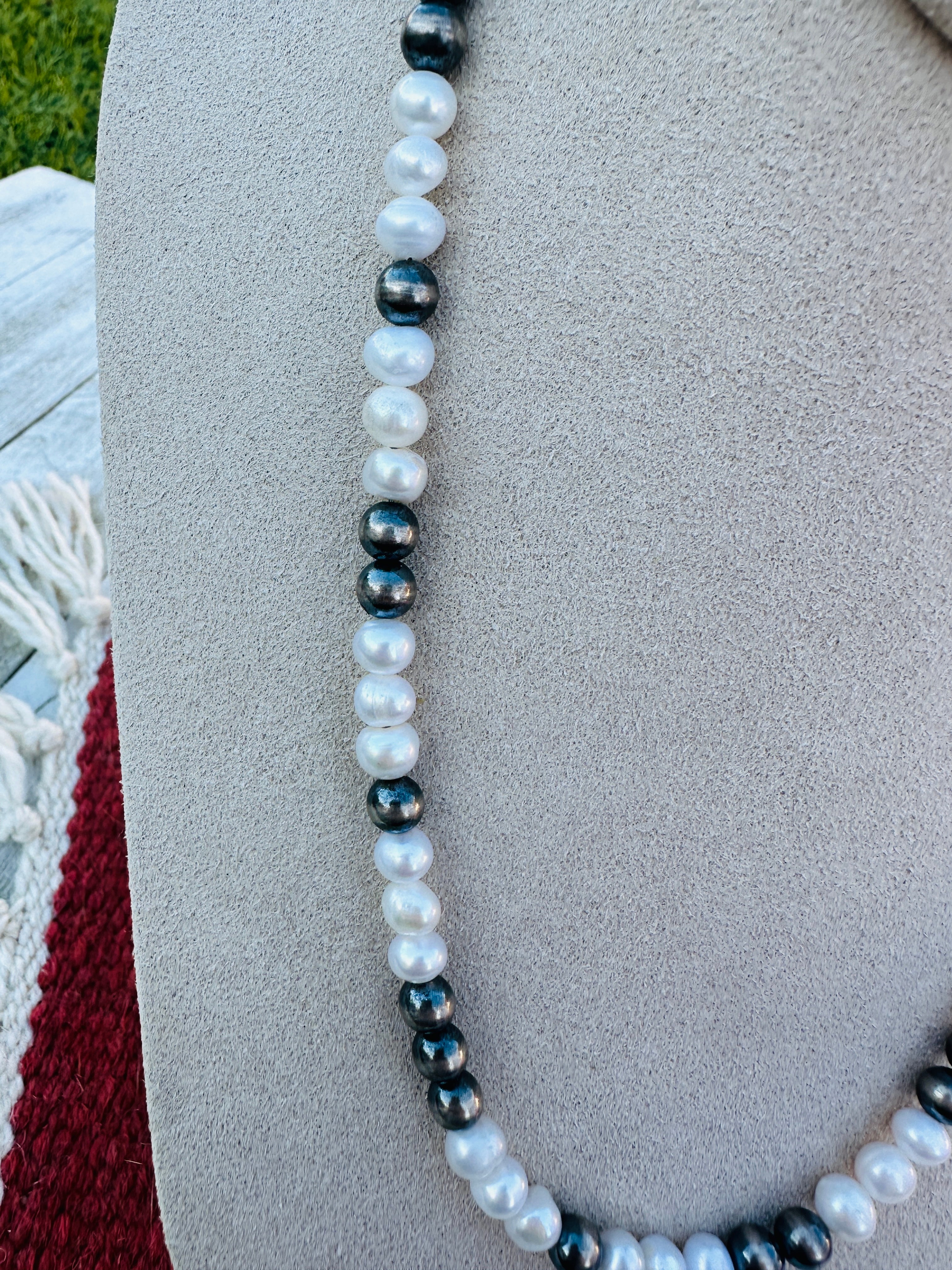 Sterling Silver Pearl & Freshwater Pearl 18” Beaded Necklace
