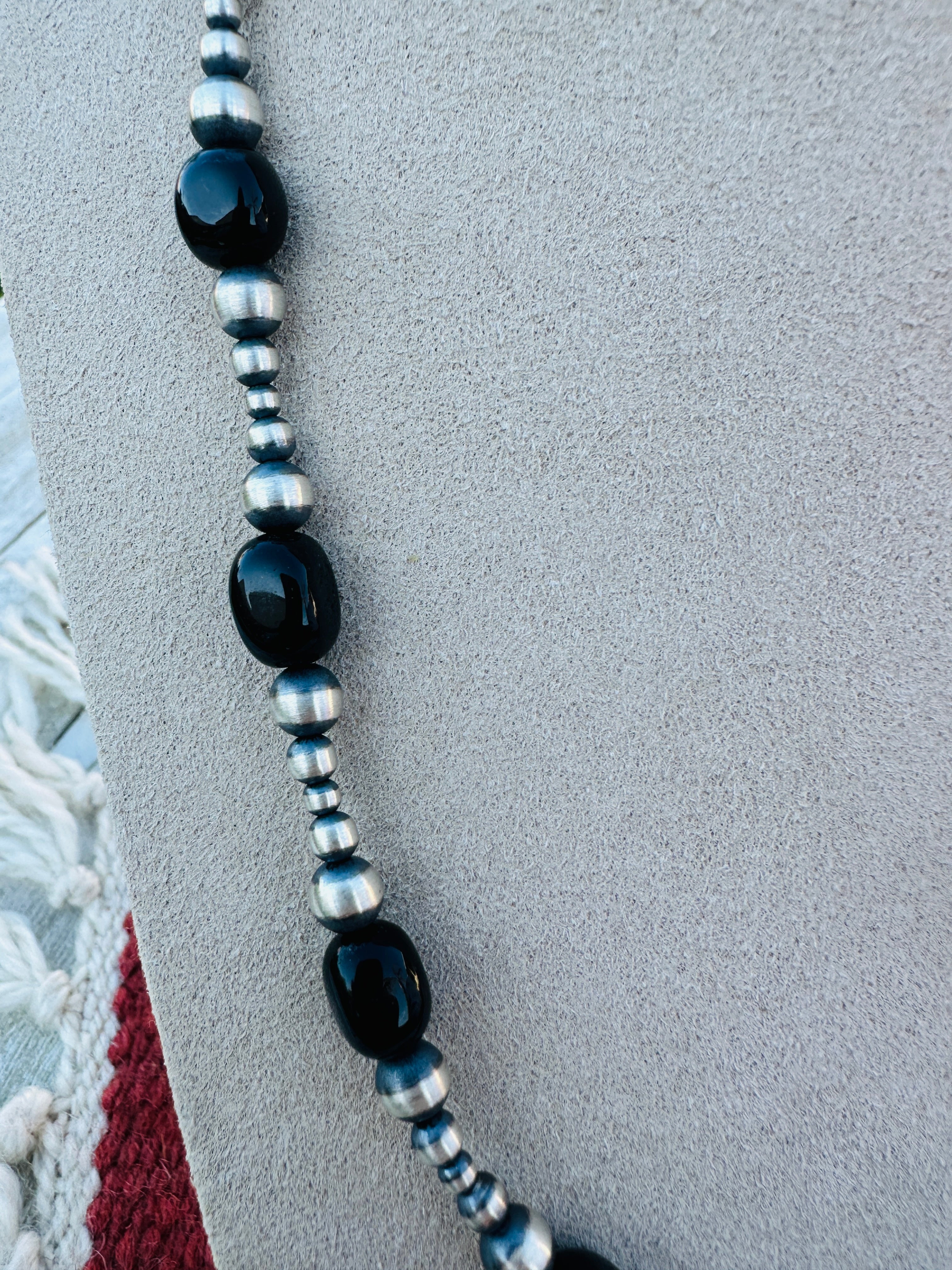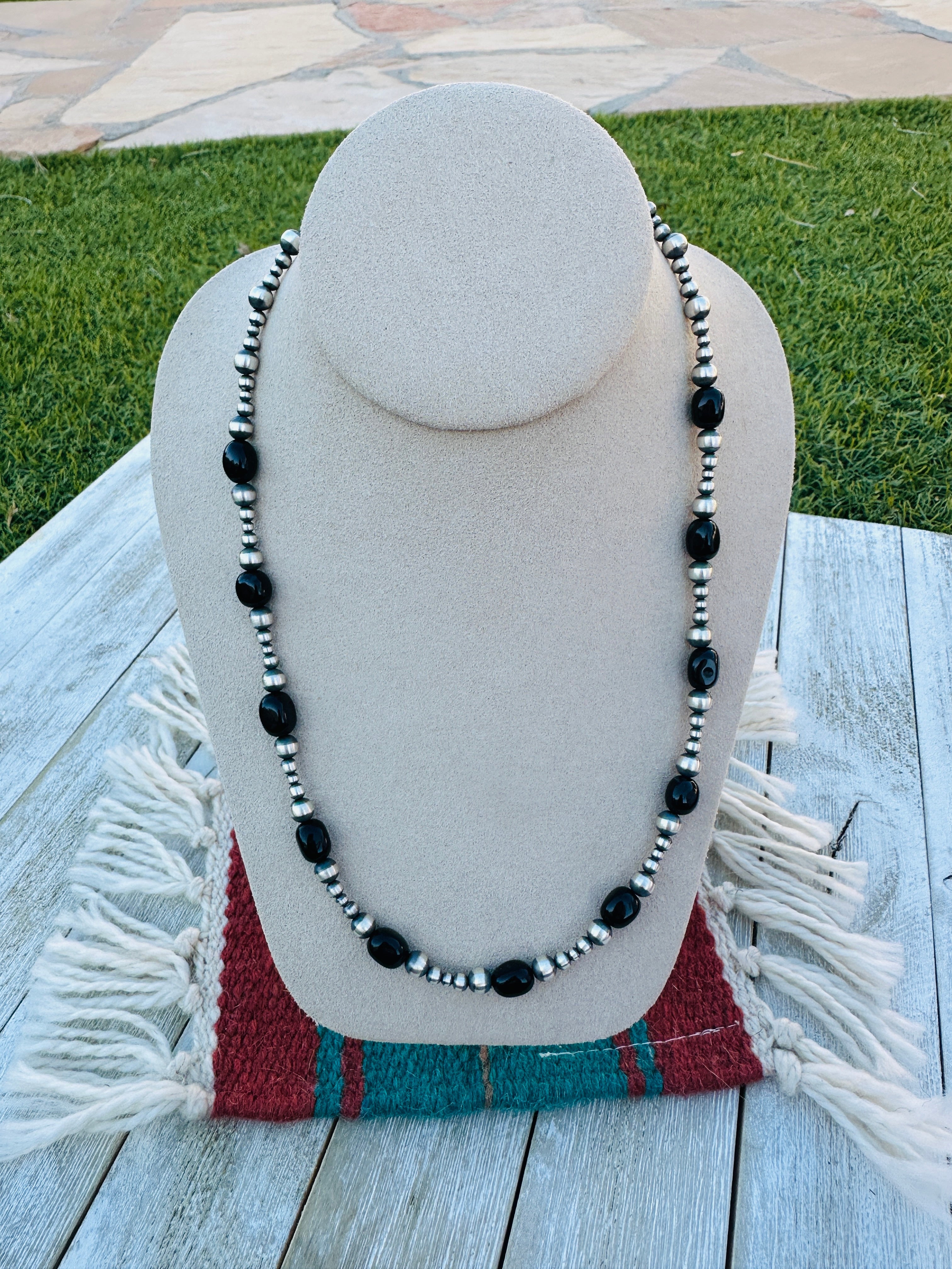 Sterling Silver Pearl & Onyx Beaded 20” Necklace